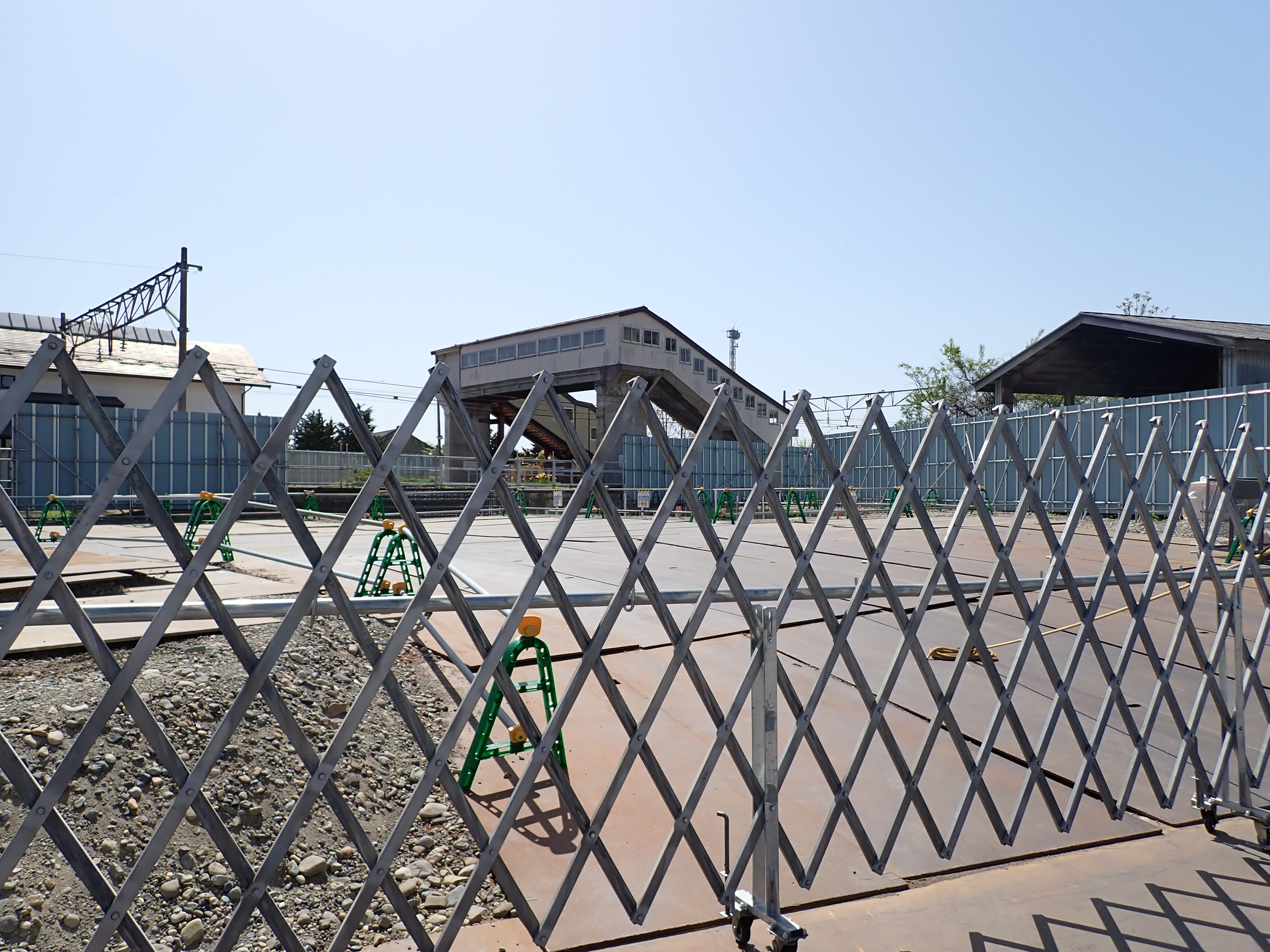 跨線橋の1番線側。工事のために駅舎側が封鎖されています。