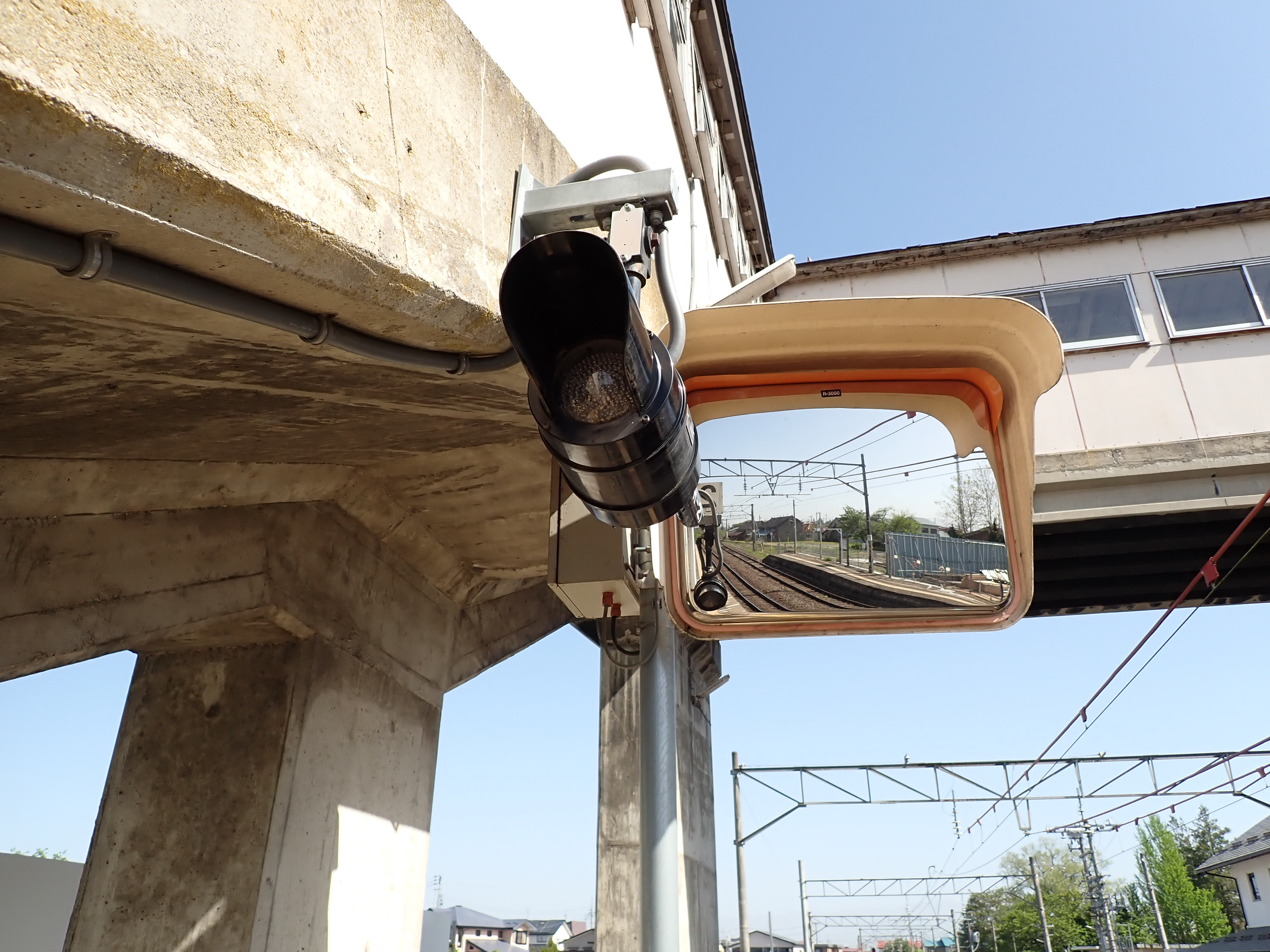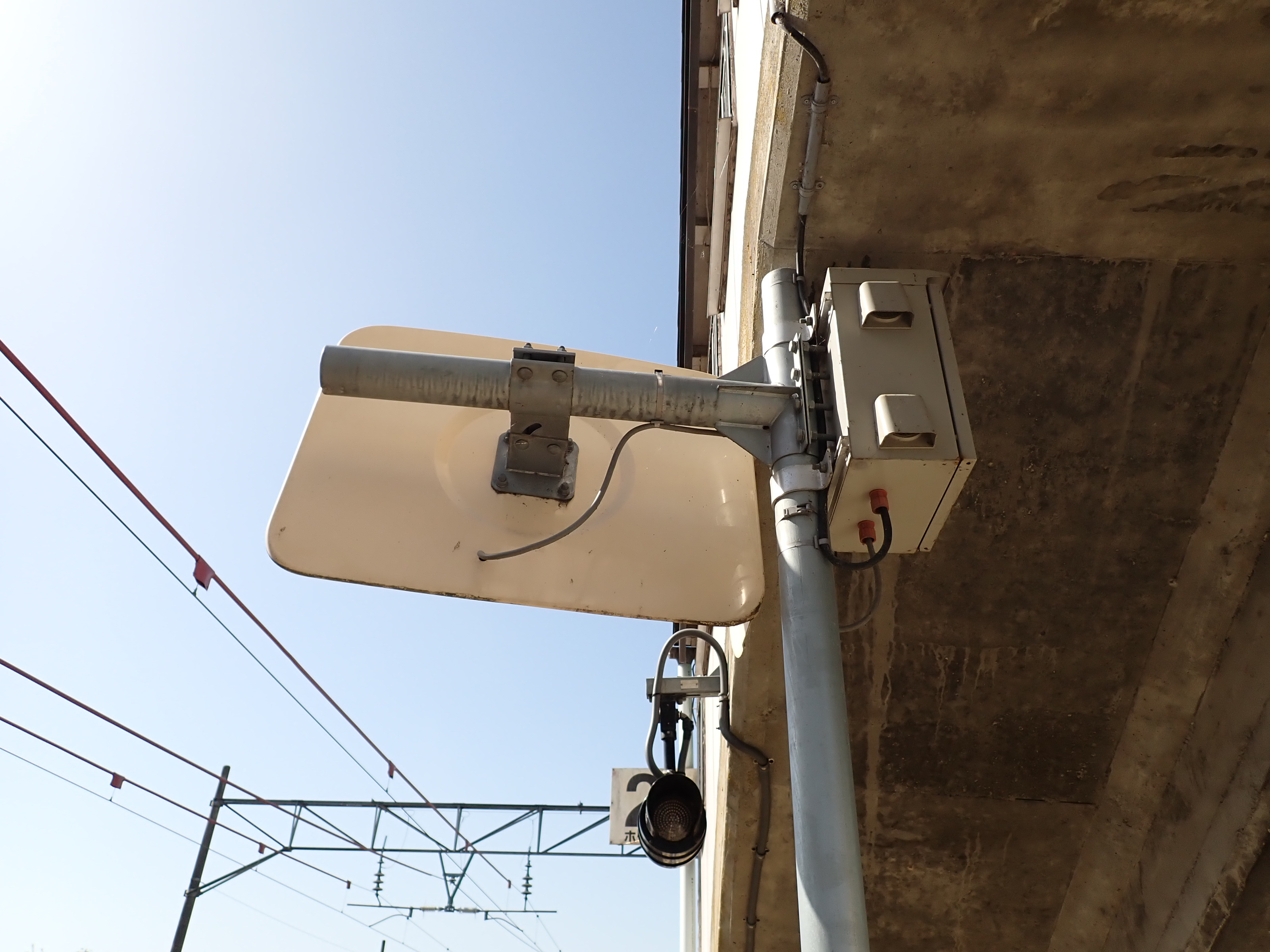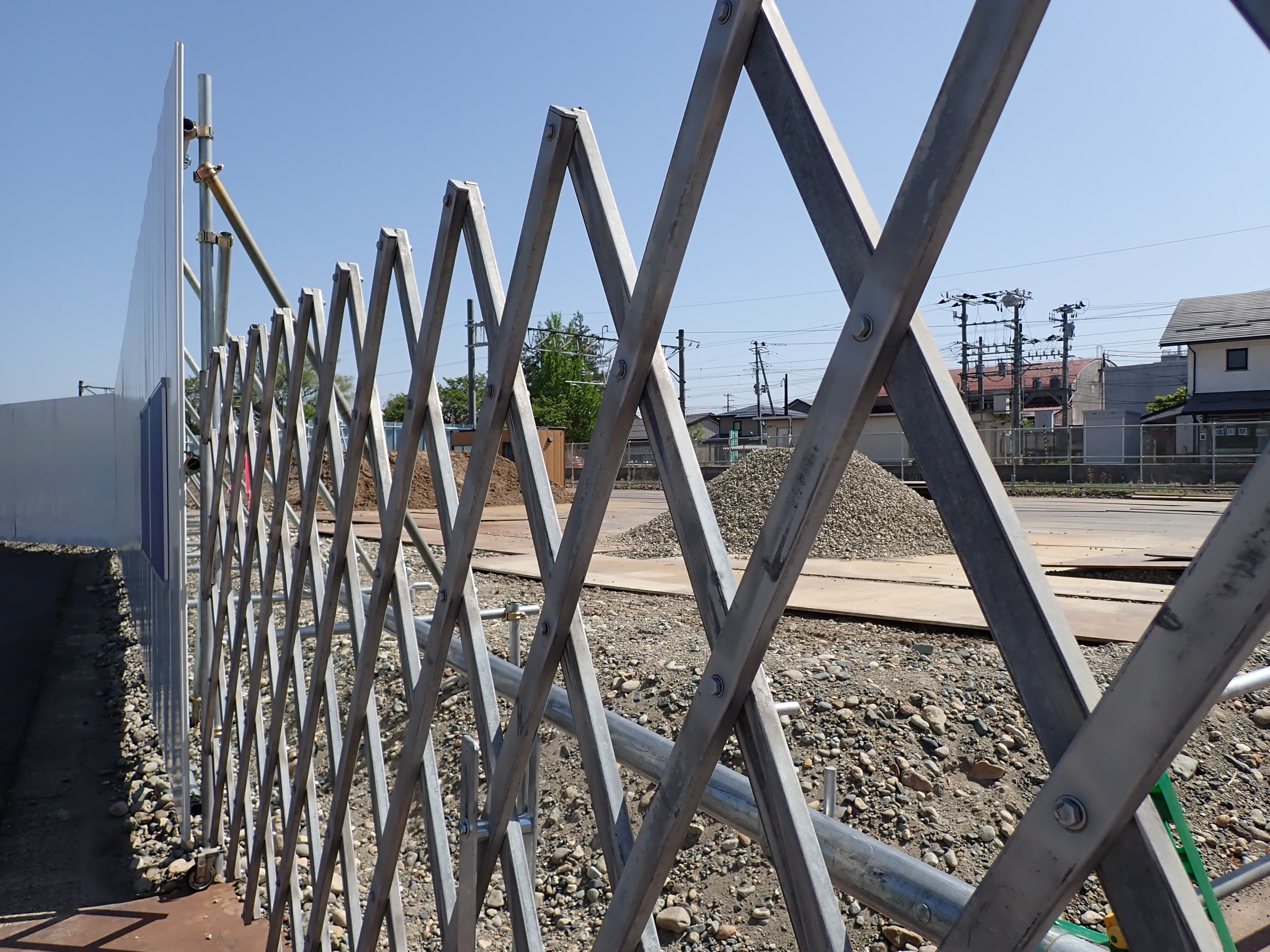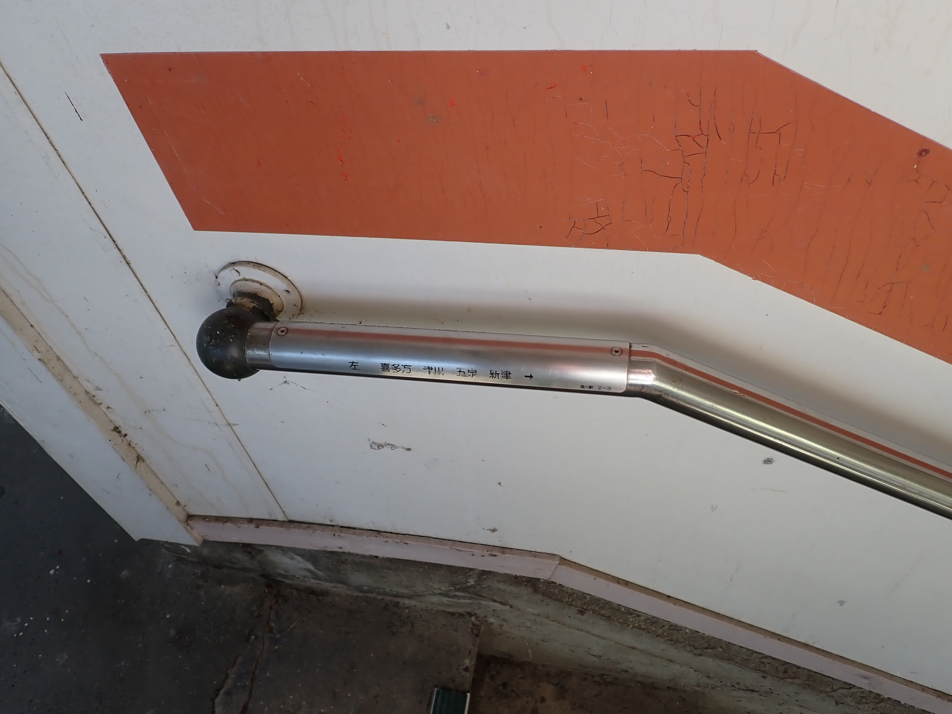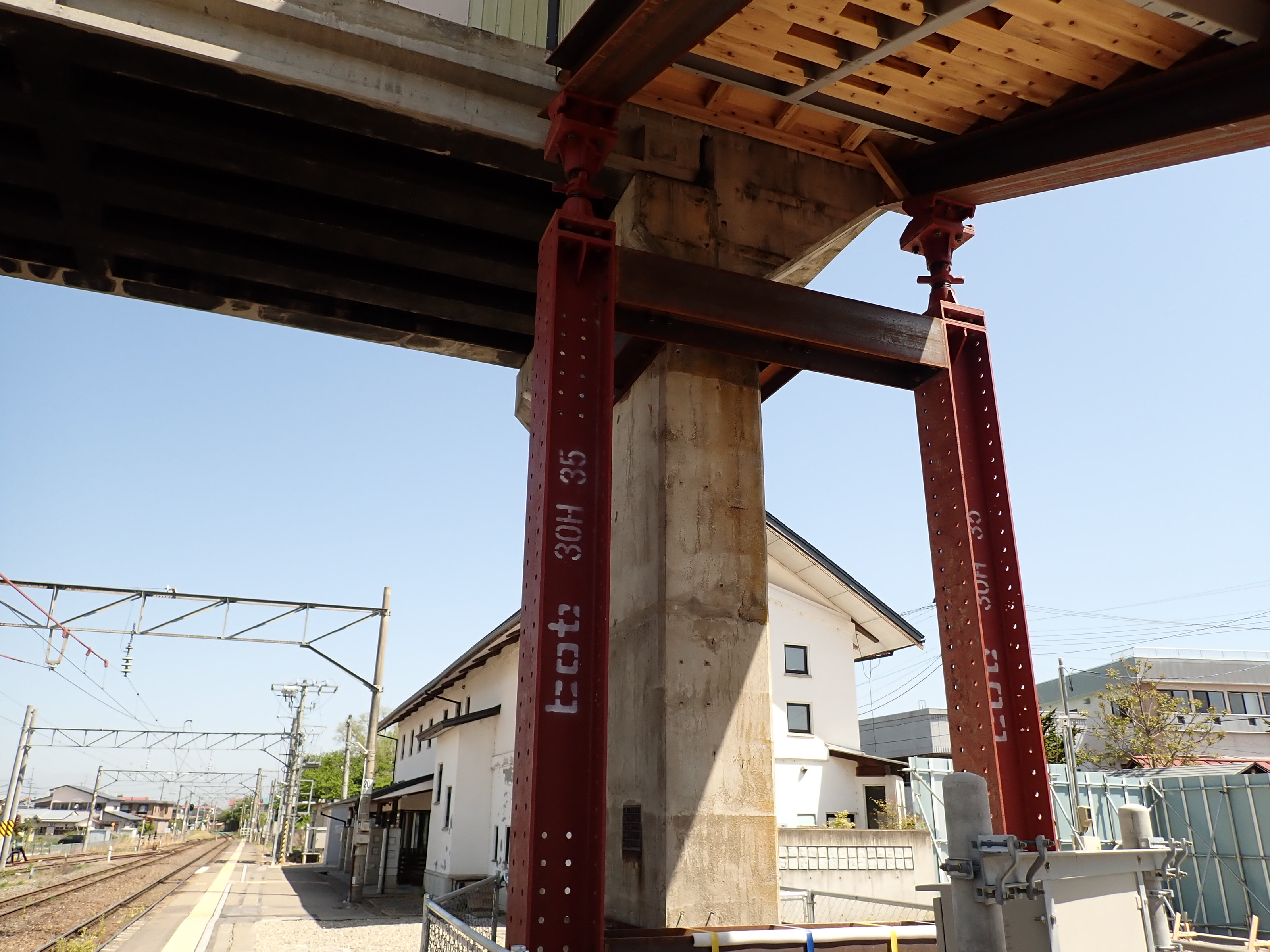 跨線橋階段の1番線側。おそらく従来の階段と反対側に作ったようで、仮設の新しいものになっています。