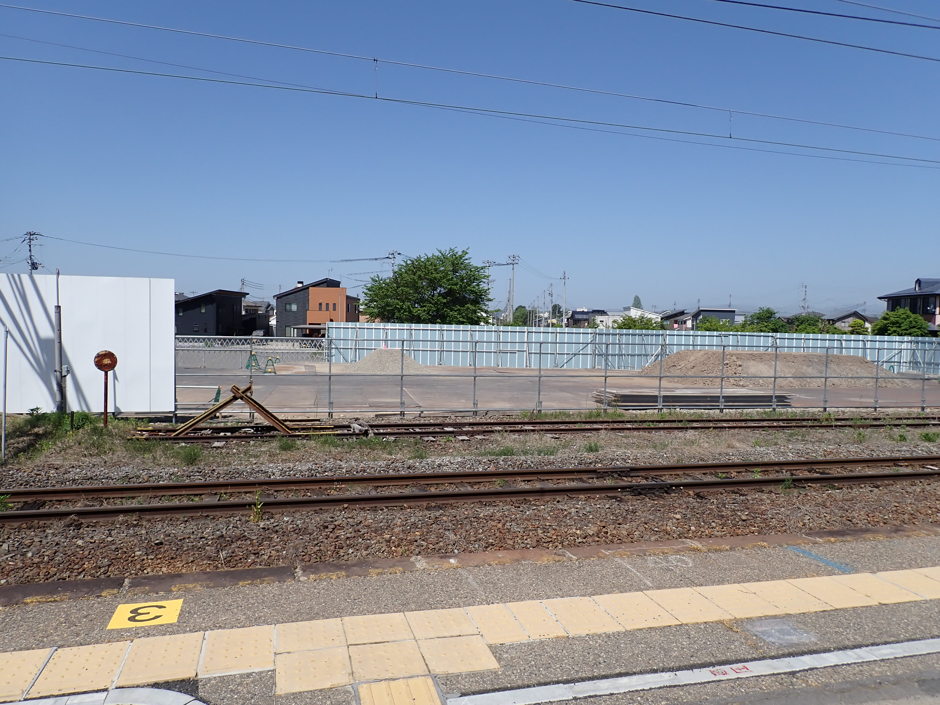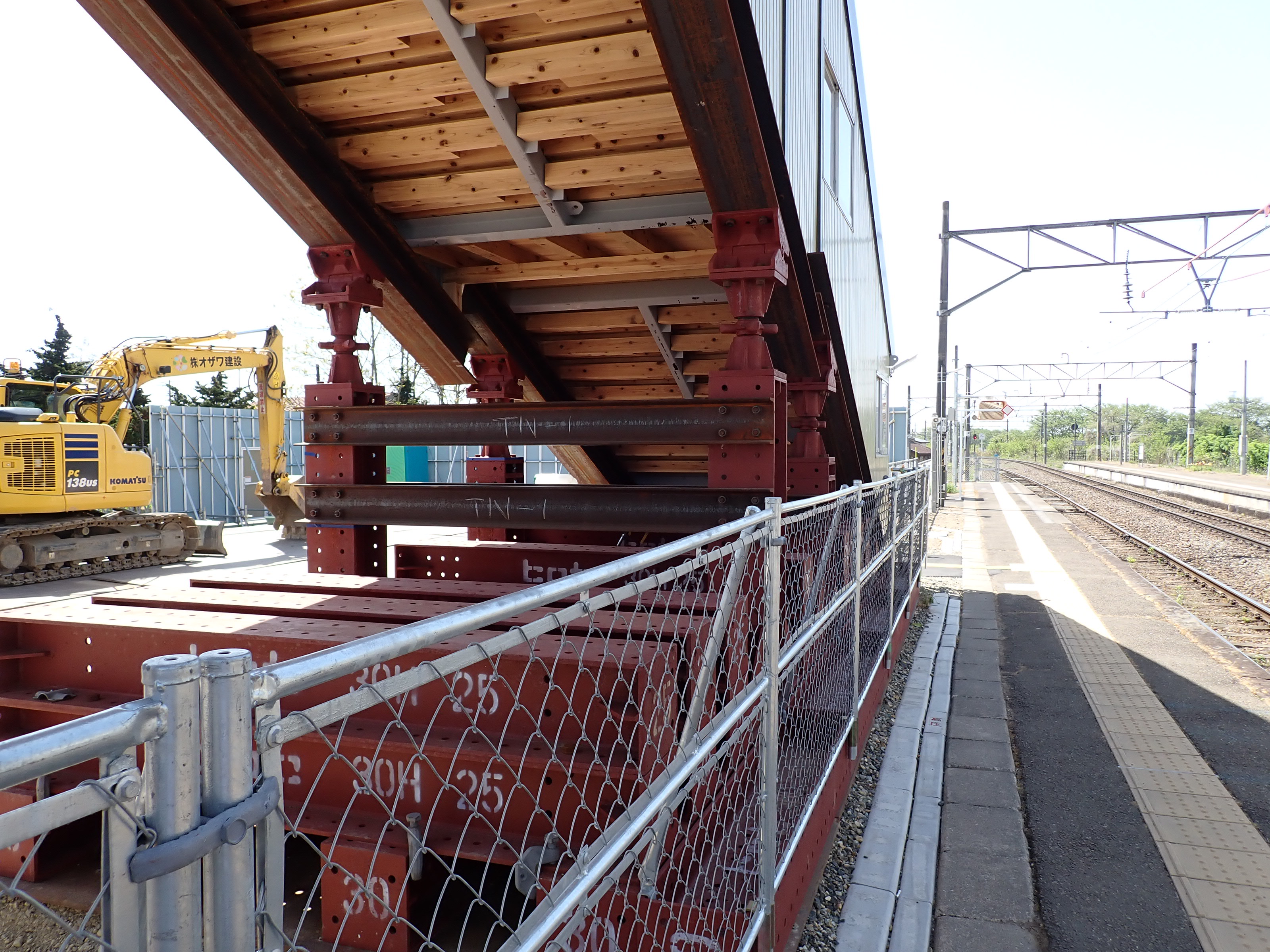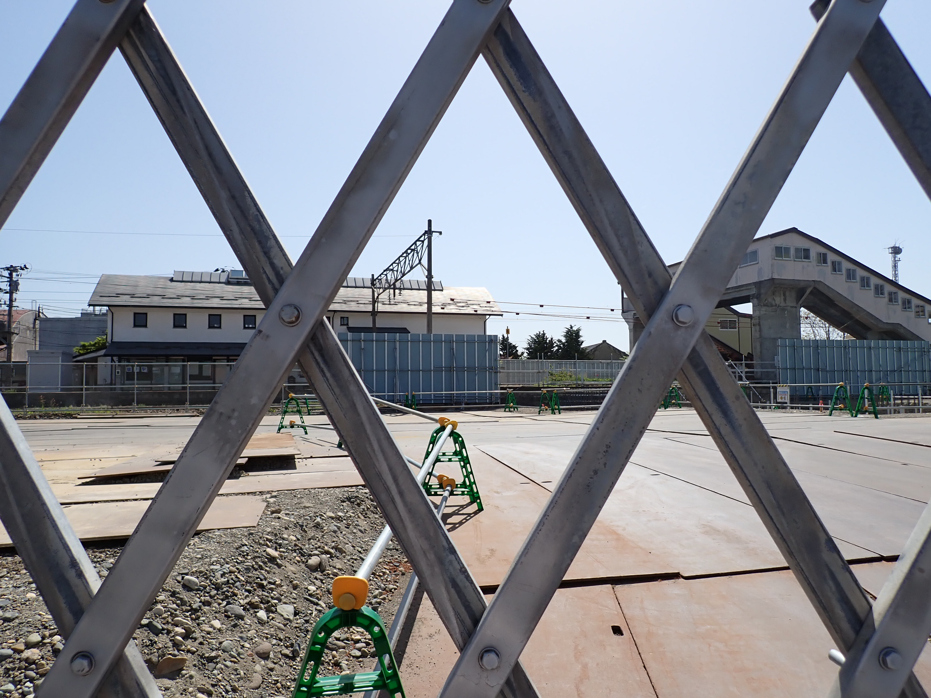 1番線側から見た駅舎横の自由通路建設中の様子。