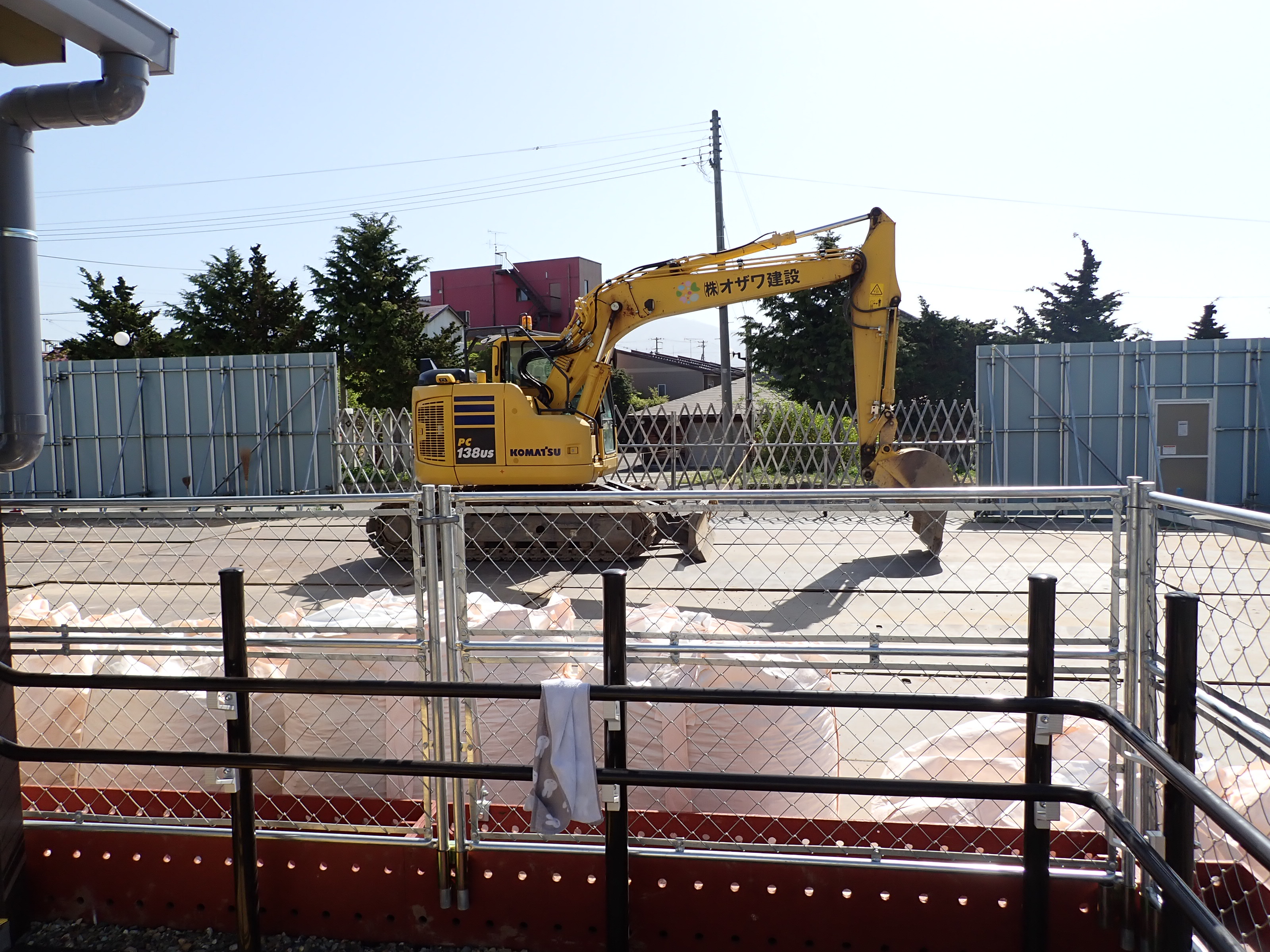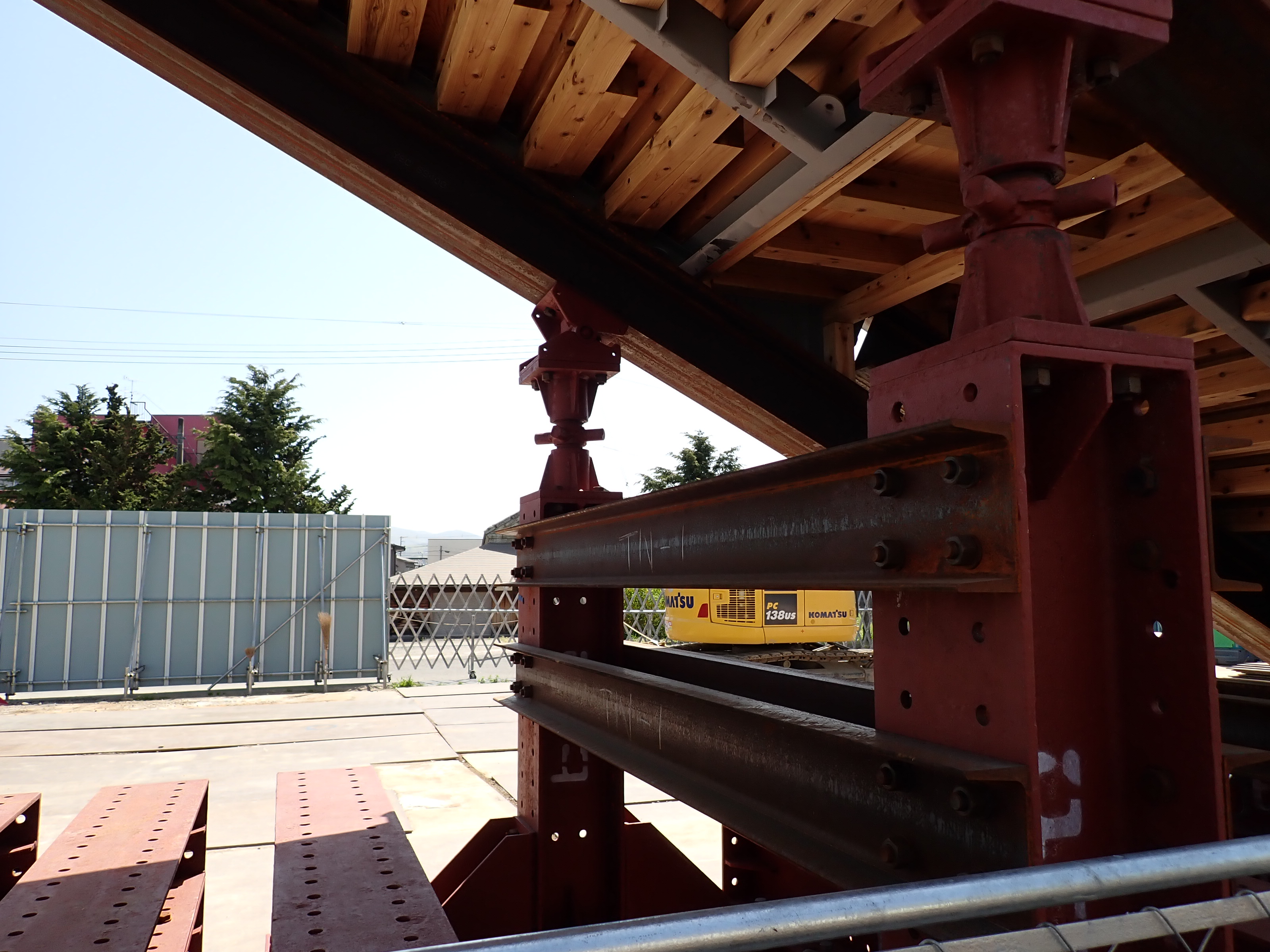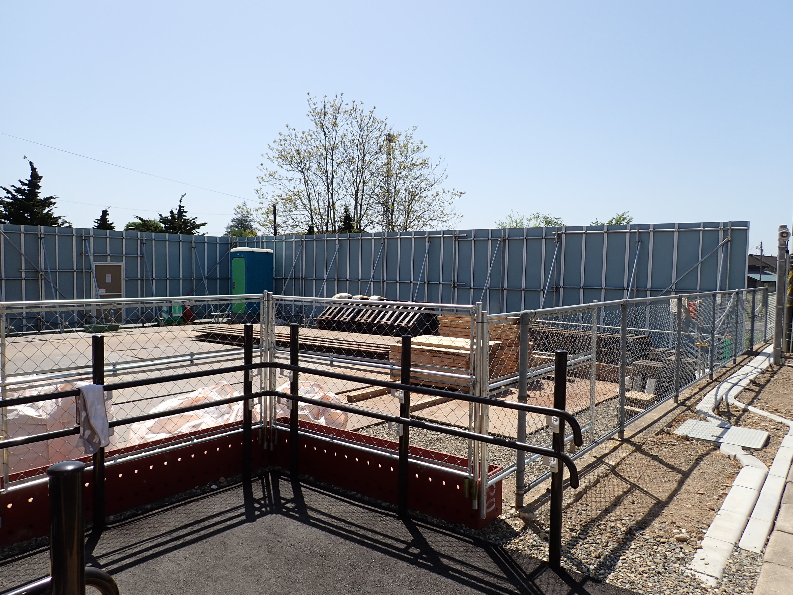 1番線側から見た駅舎横の自由通路建設中の様子。