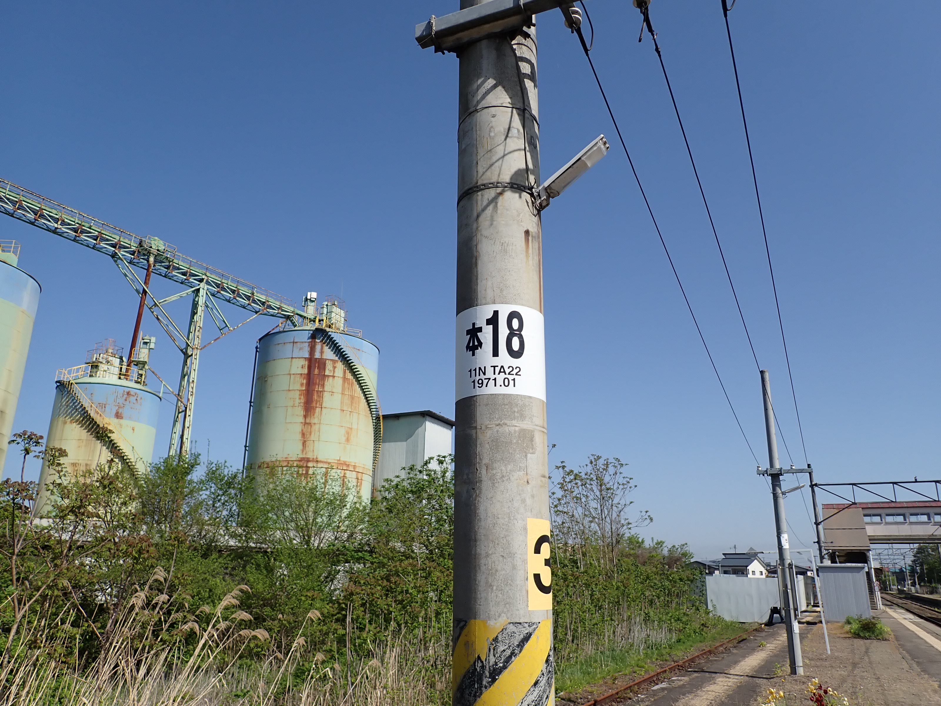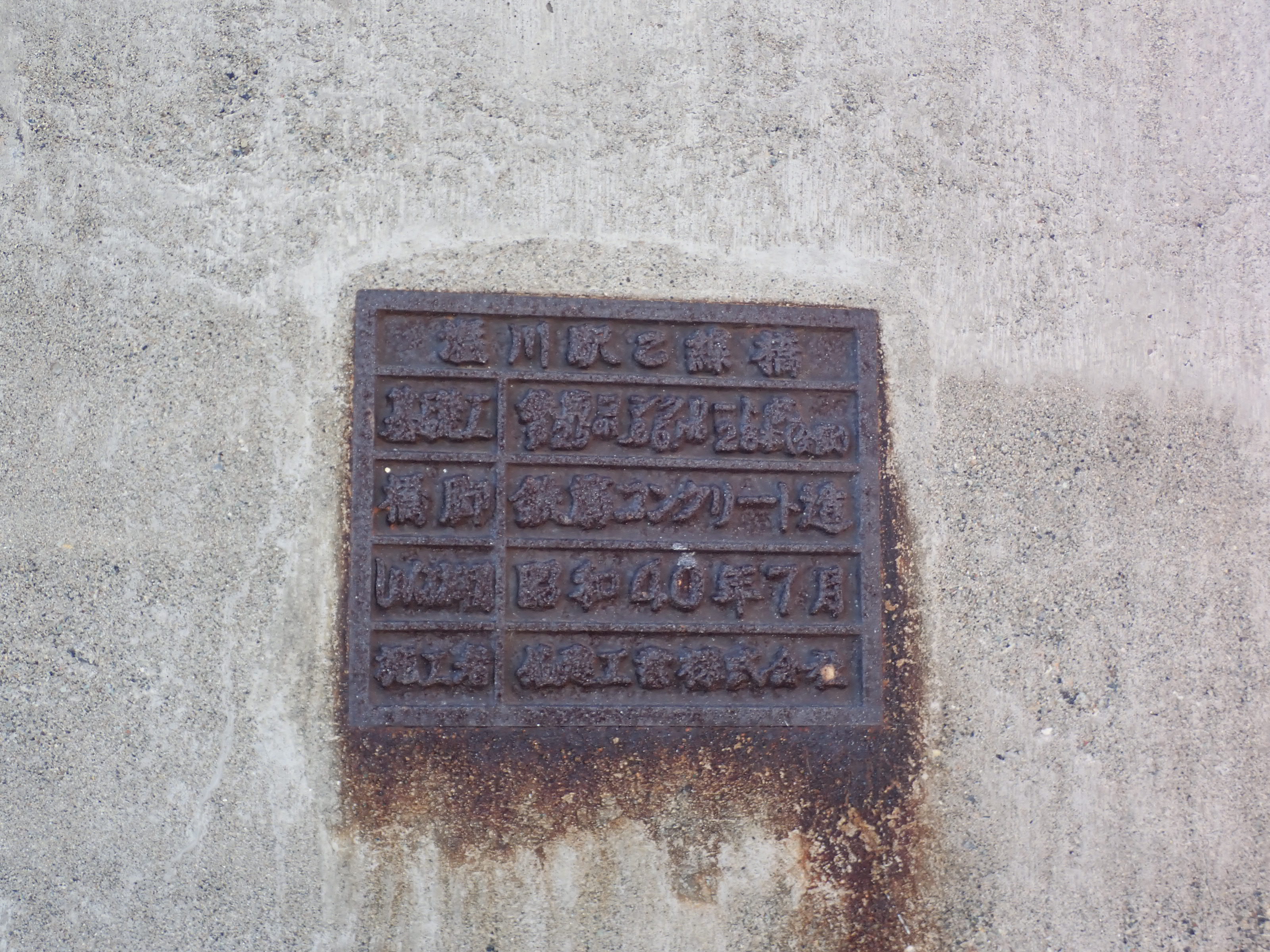 1番線の跨線橋支柱に書かれた駅名標と銘板。