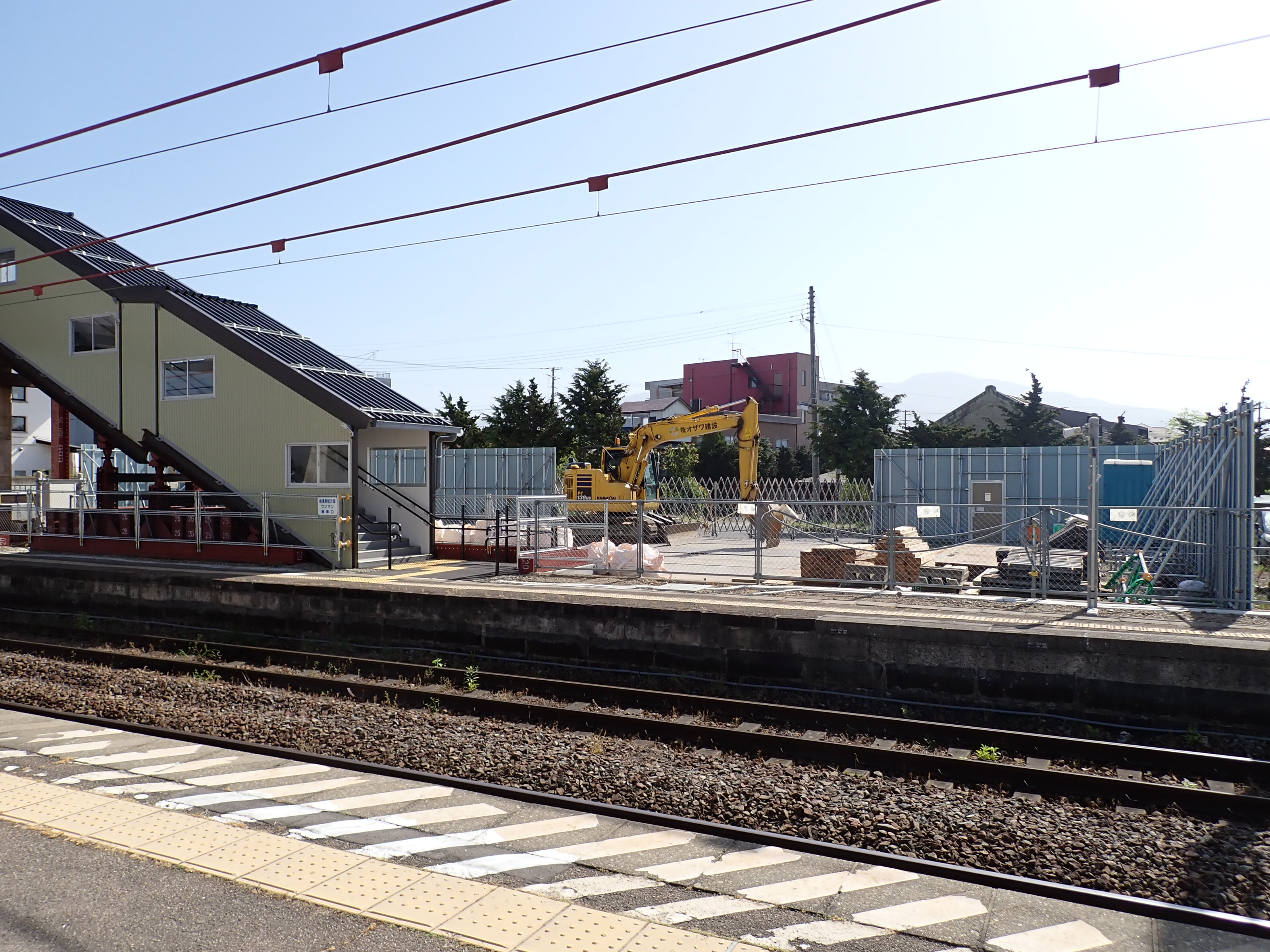 1番線から見た駅舎と反対側の自由通路建設中のところ。