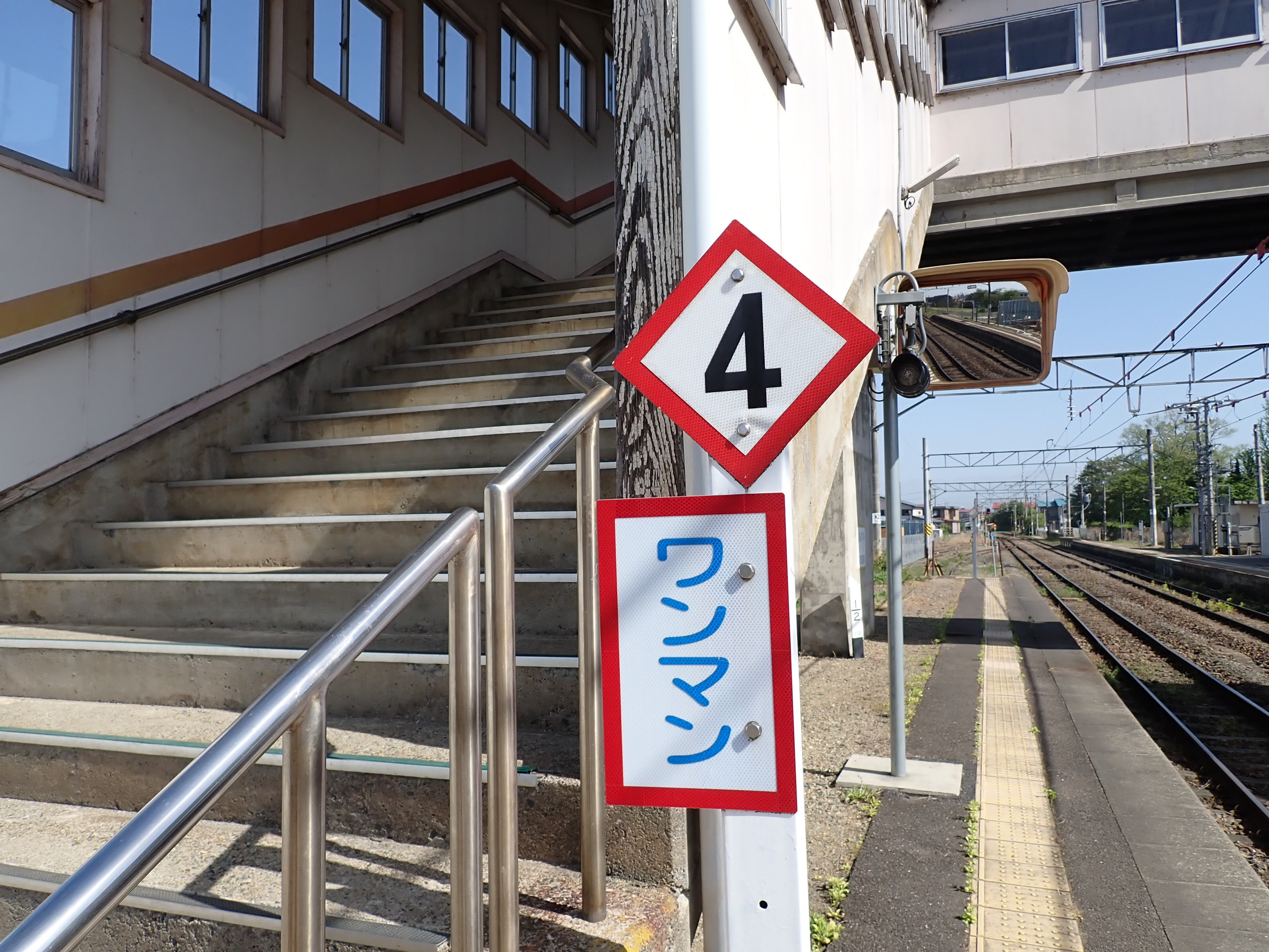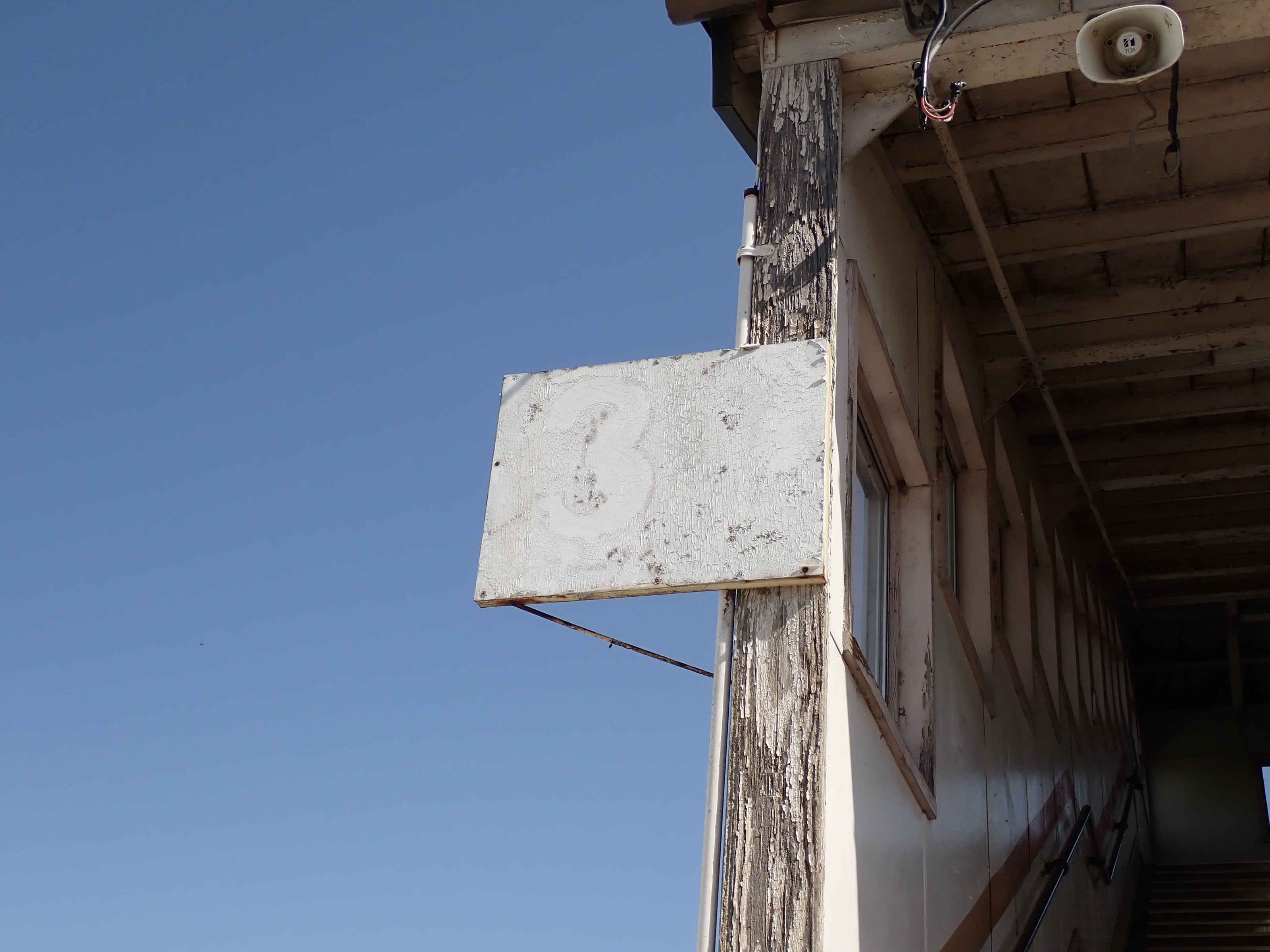 2番線・3番線の跨線橋階段入口に掲げられた番線標。