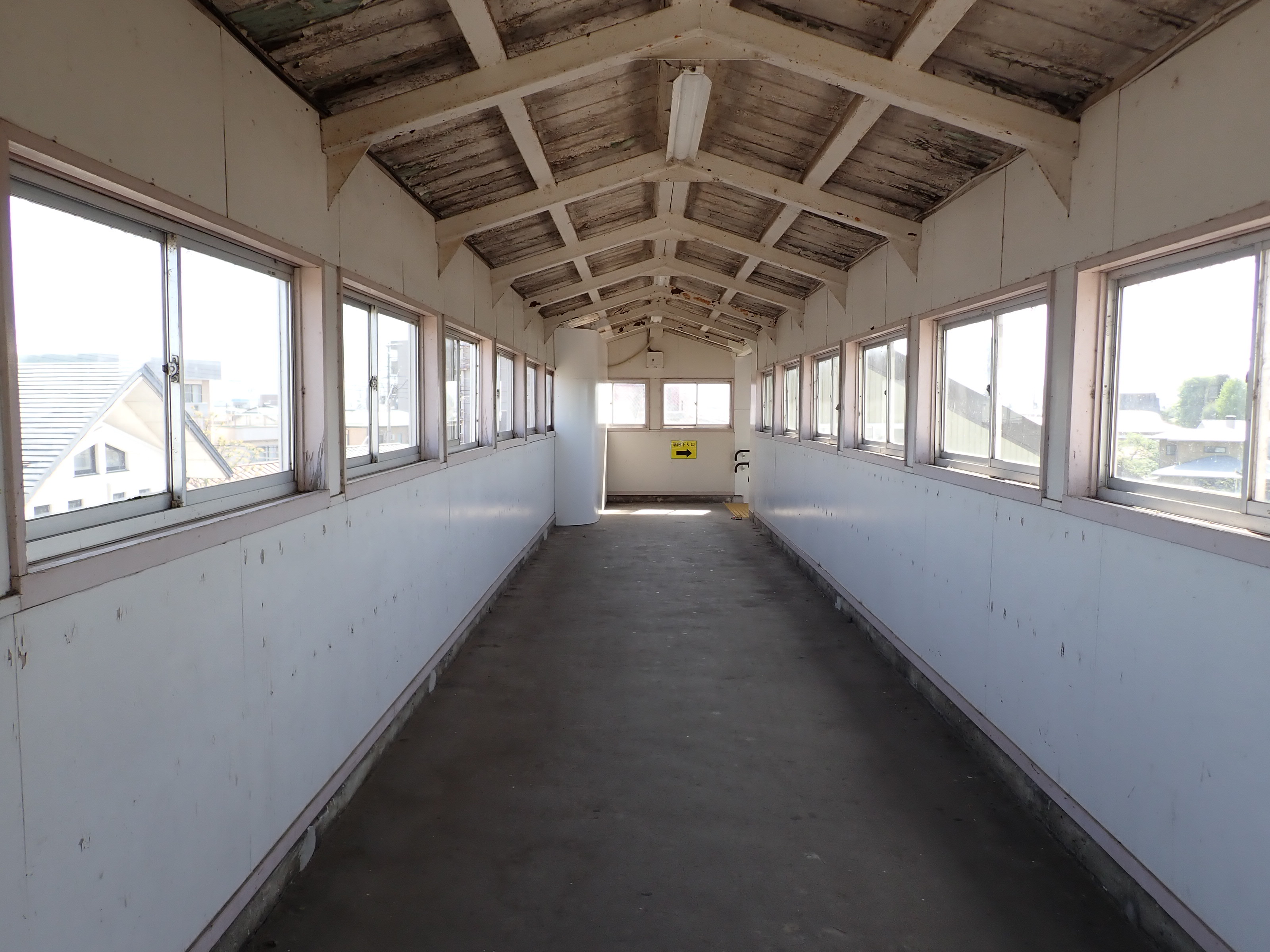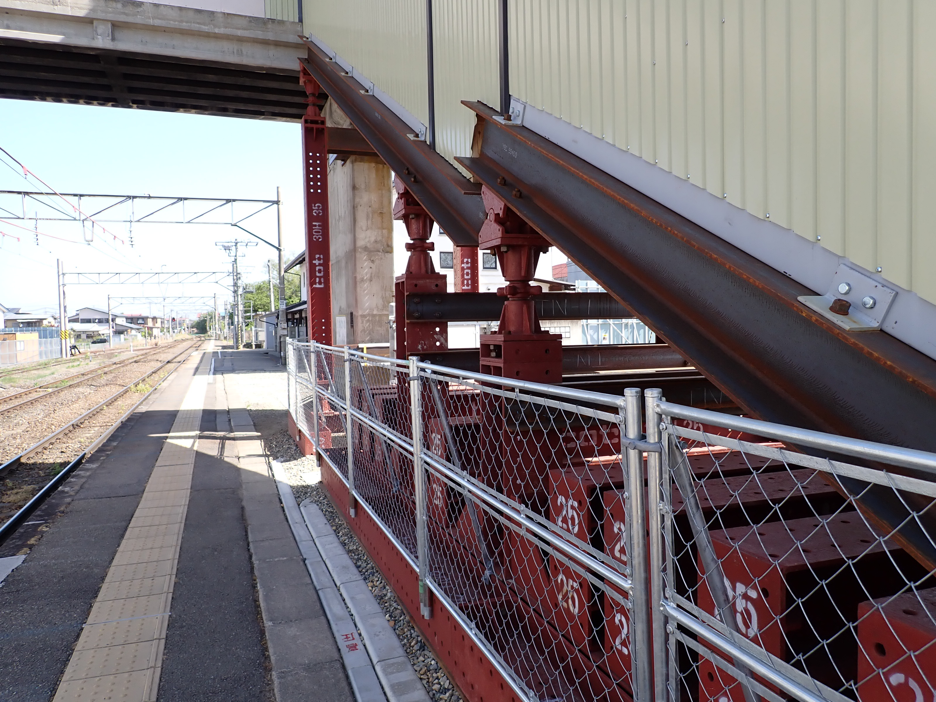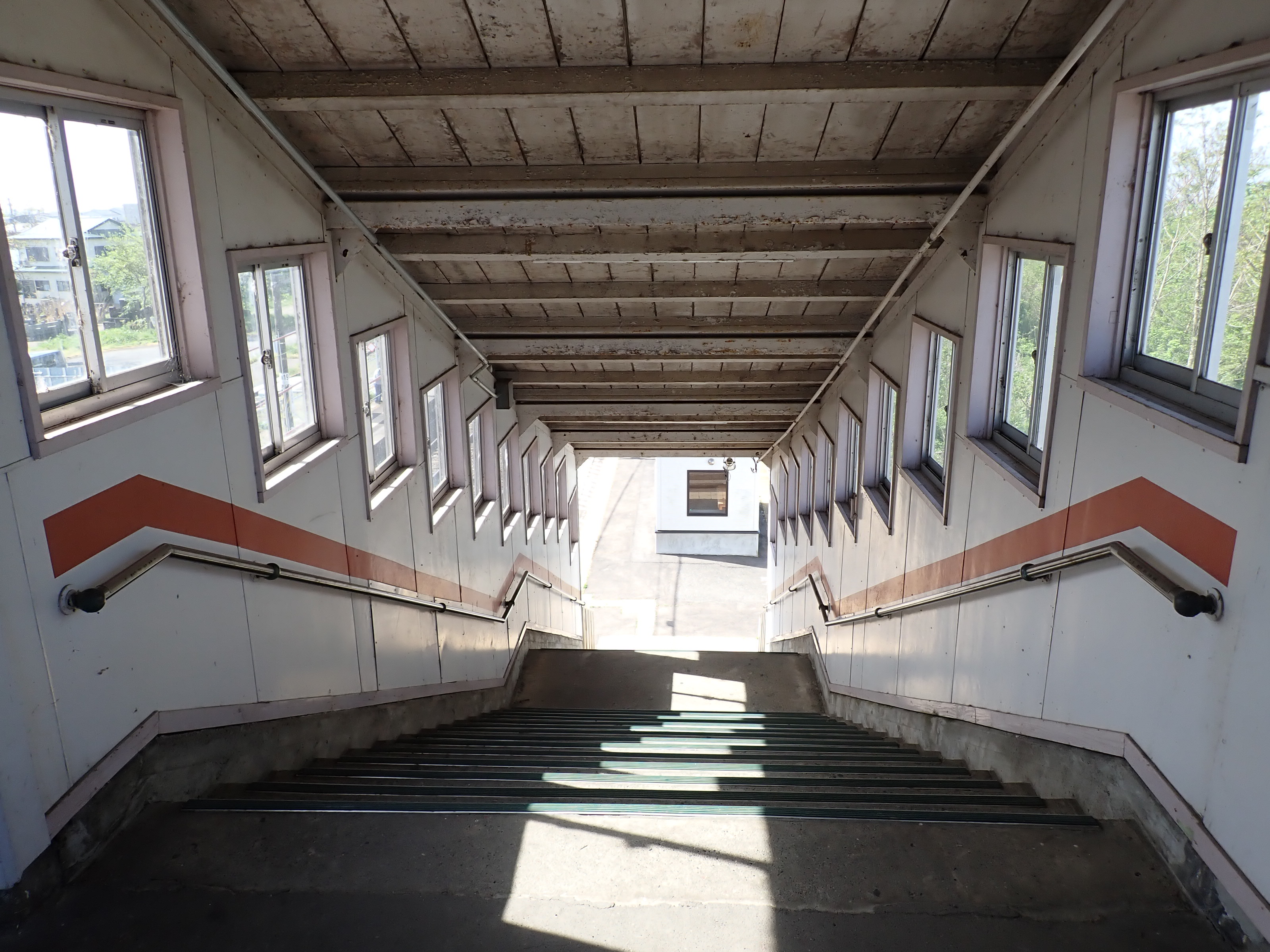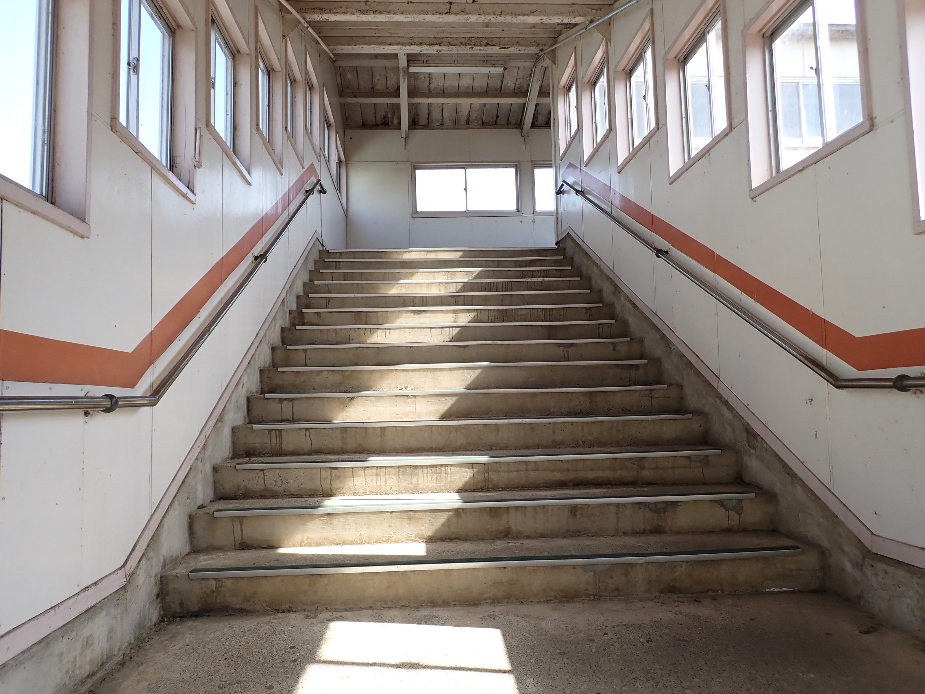 1番線駅舎側から見た跨線橋と、かつて階段があったと思われるところ。