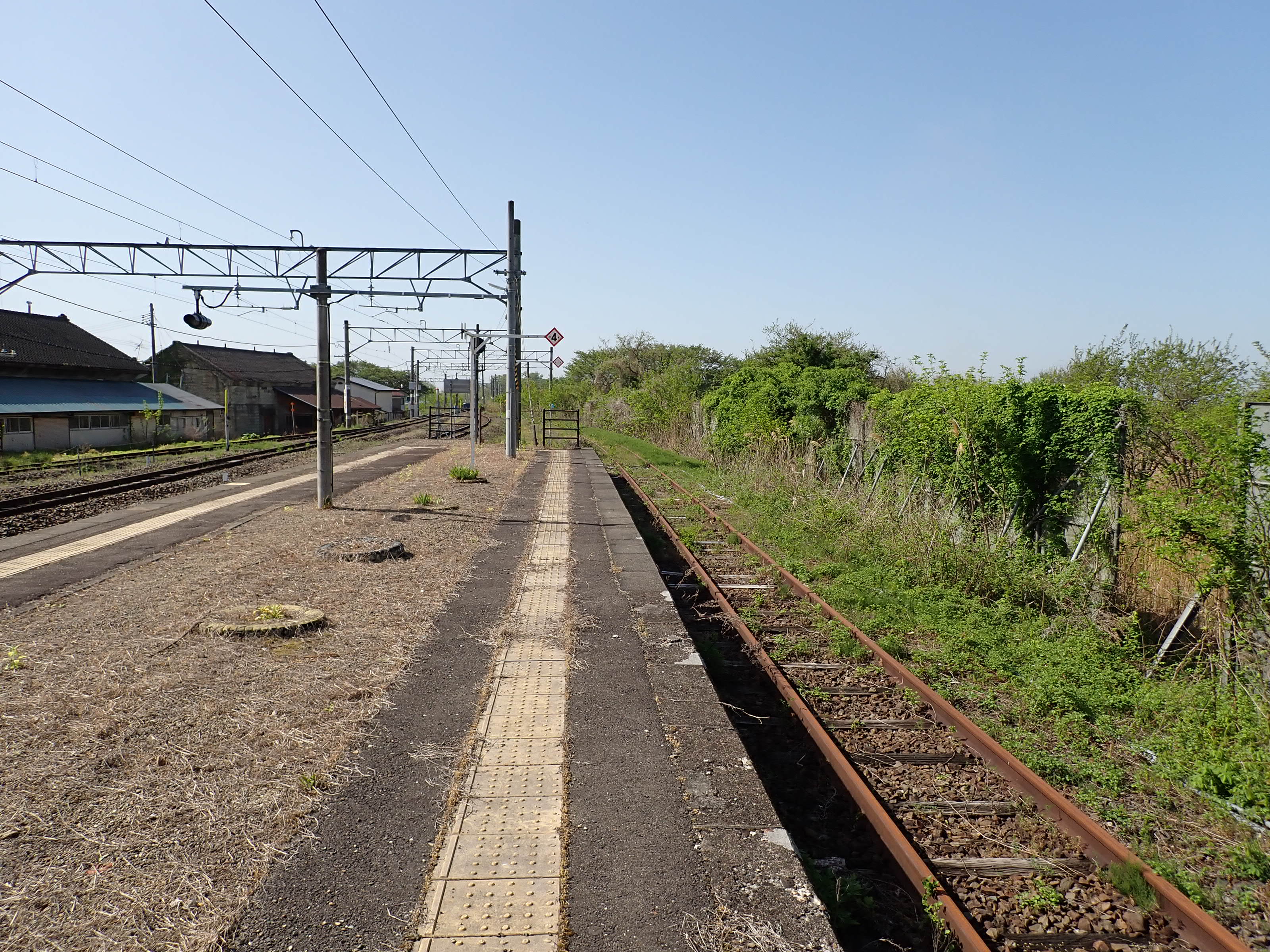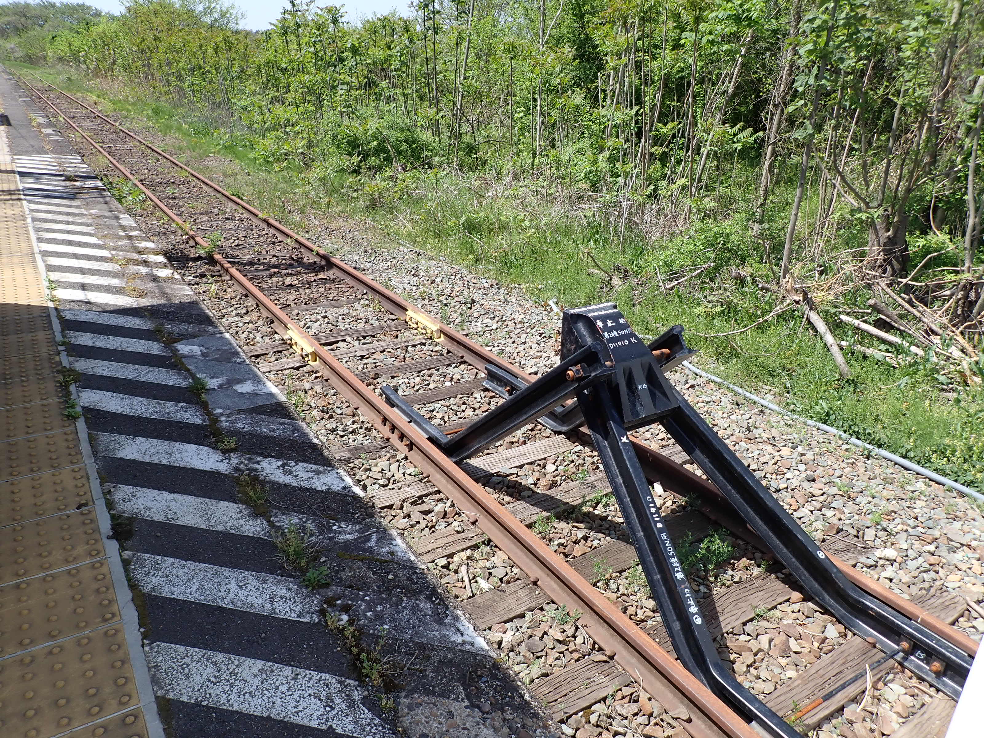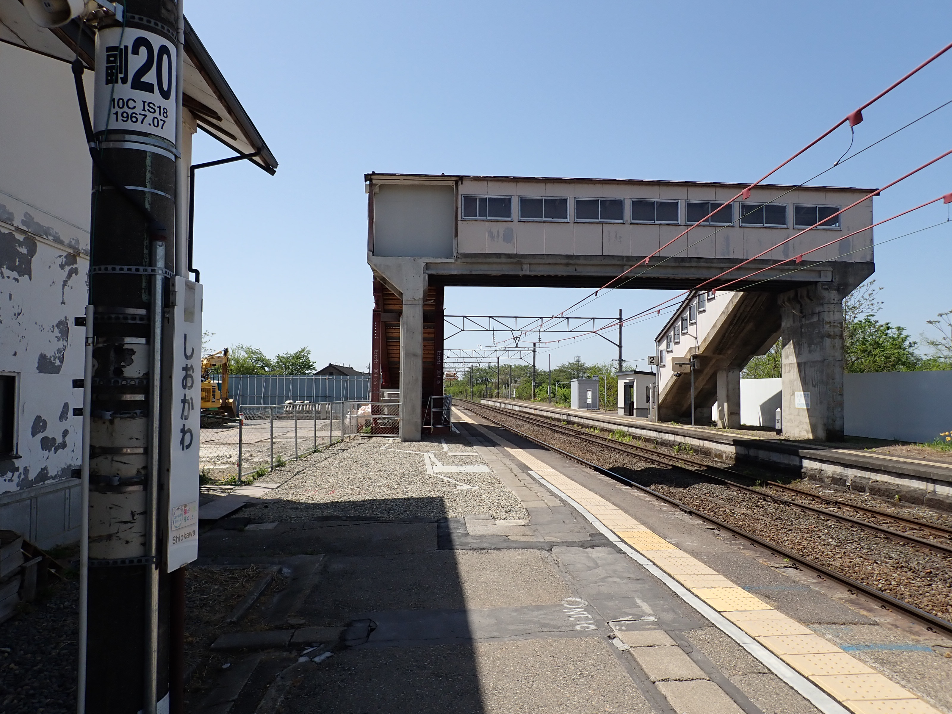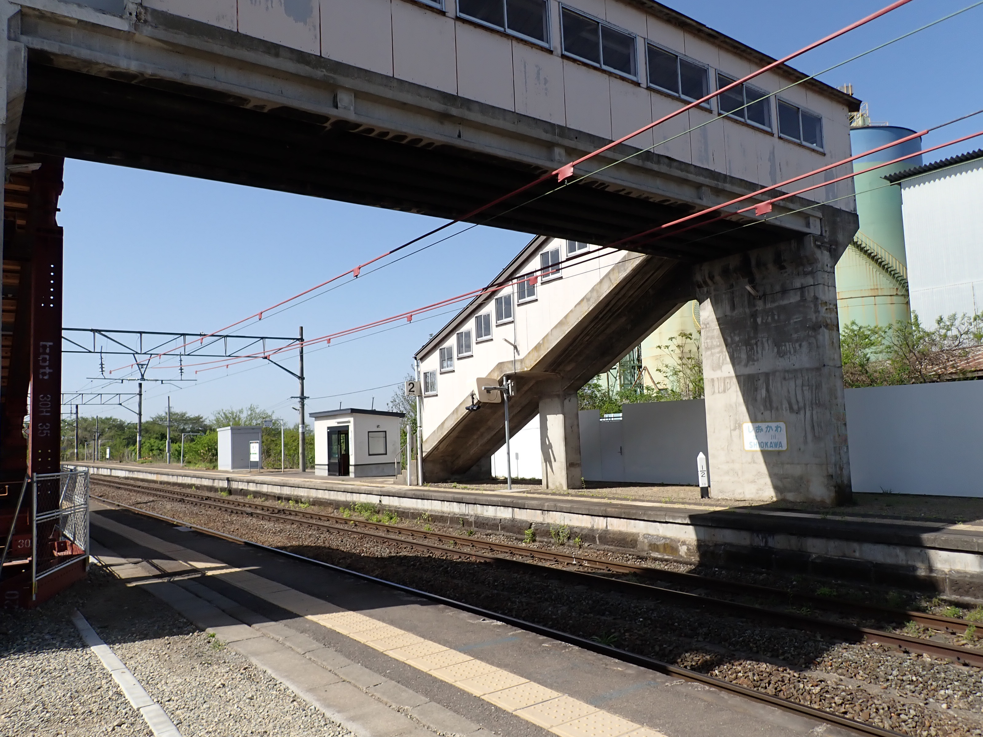 1番線駅舎側から見た跨線橋と、かつて階段があったと思われるところ。