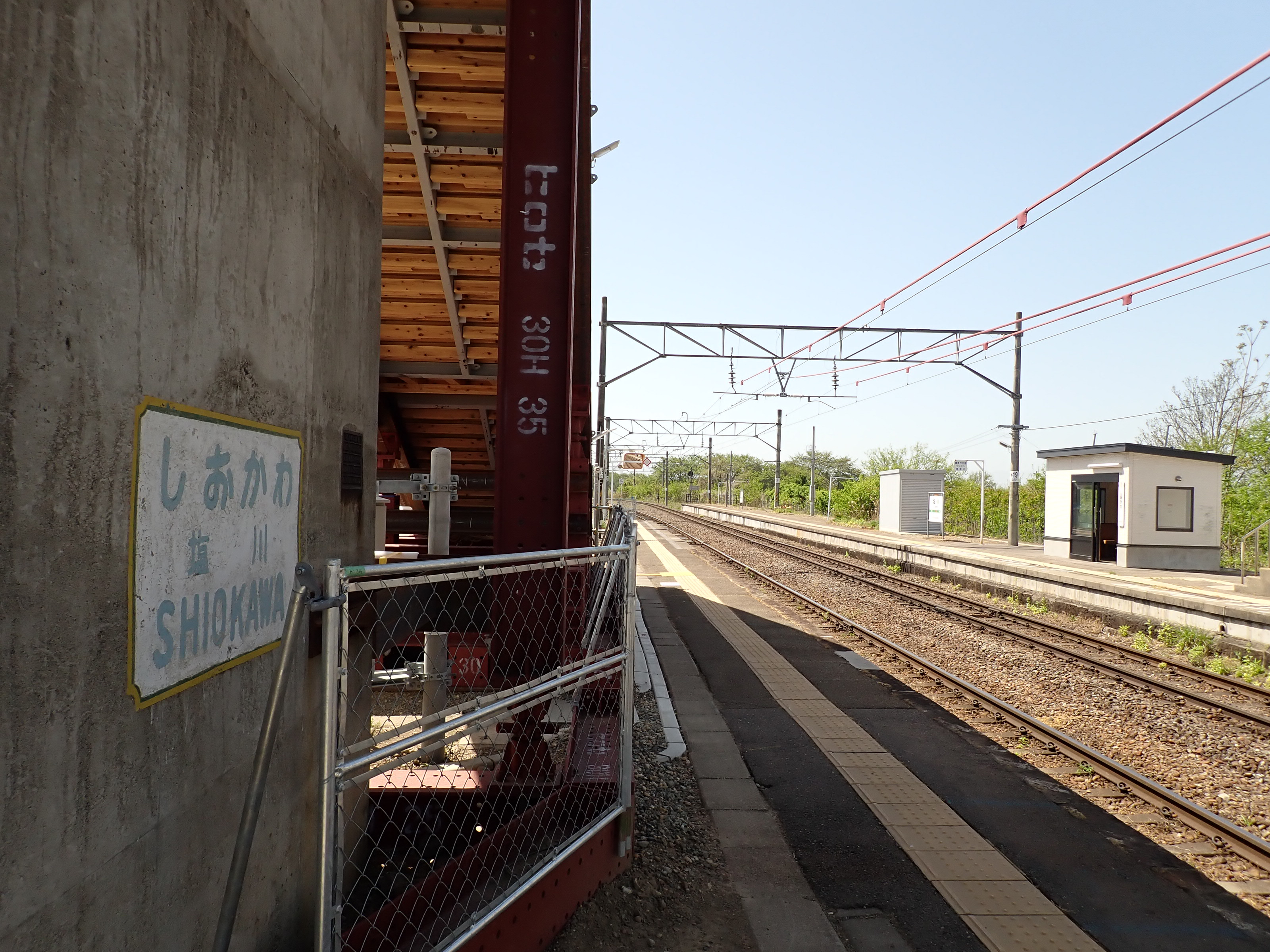 先ほどの道を戻り、塩川駅への道の交差点に戻ってきました。