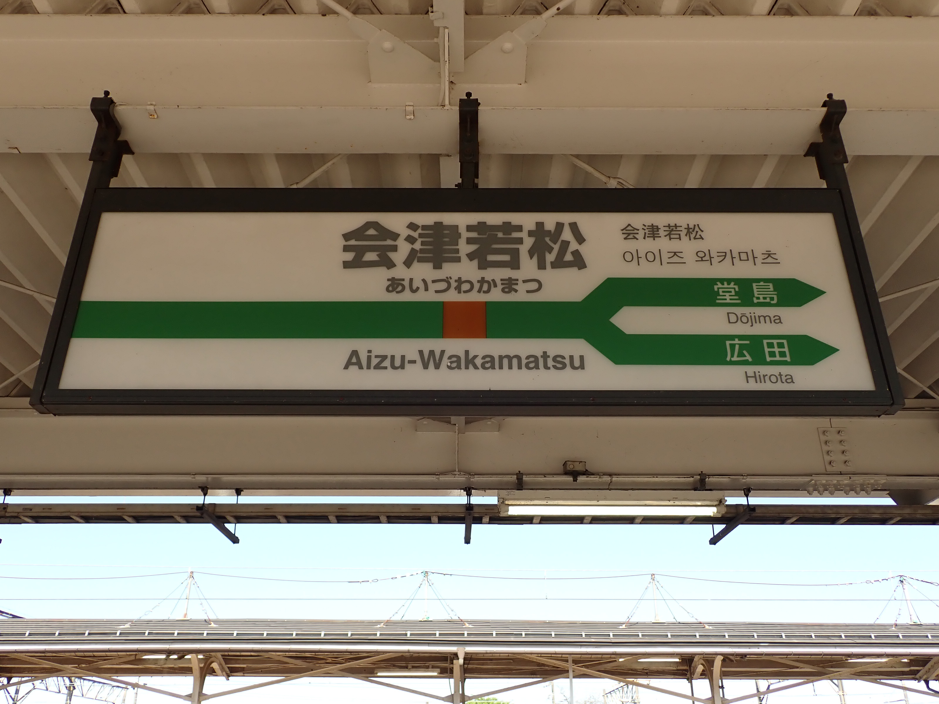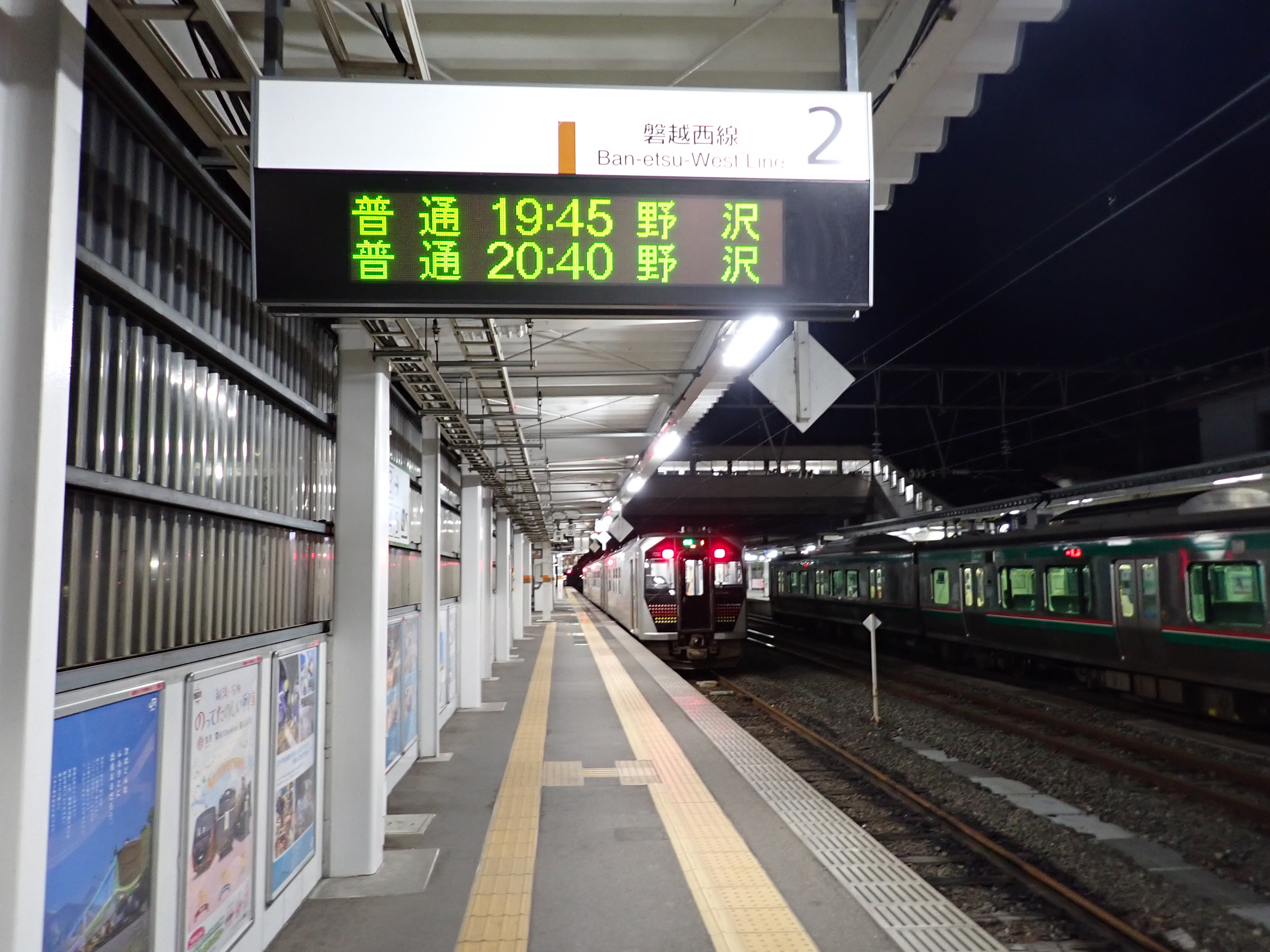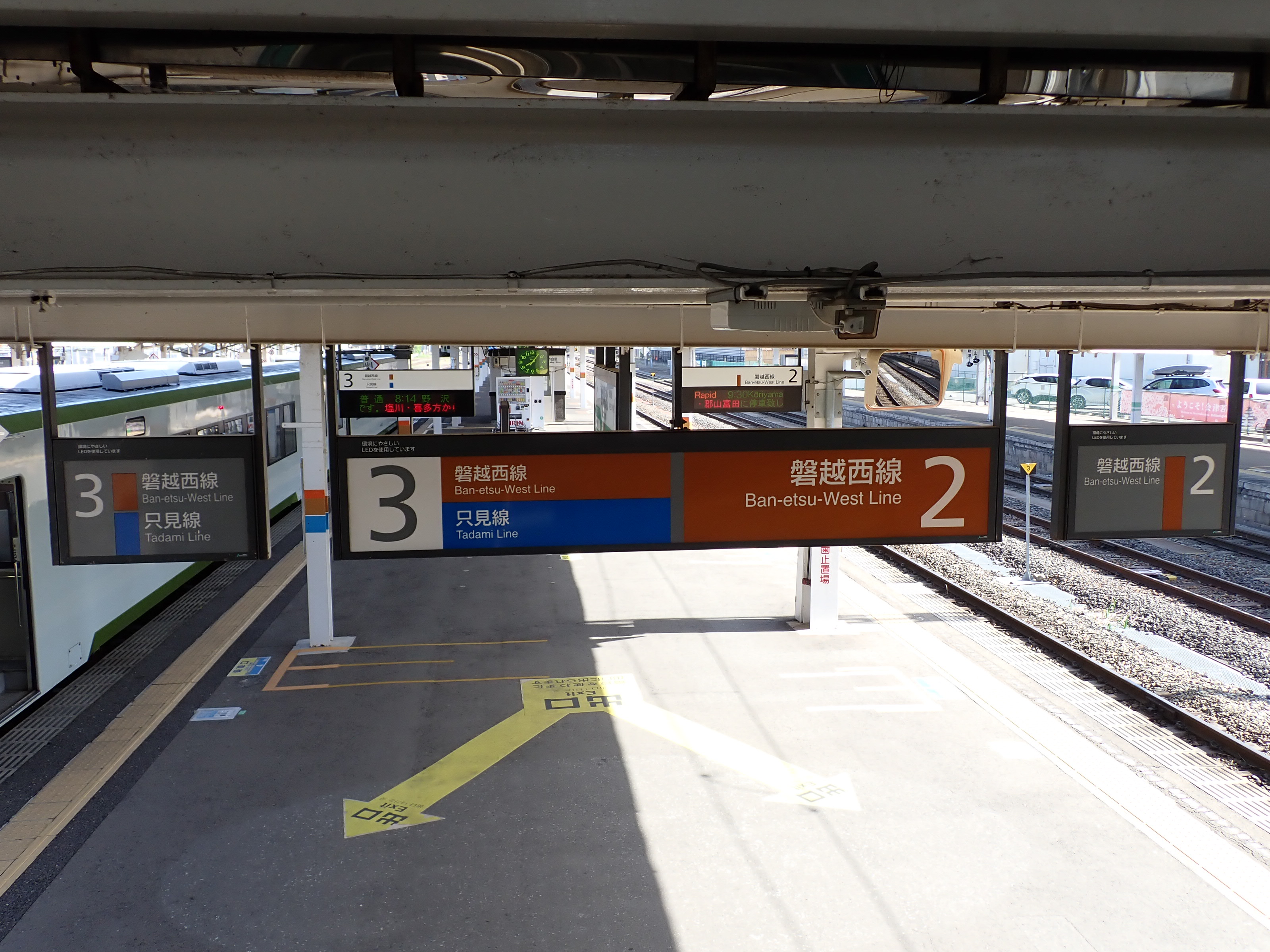 2・3番線から見た1番線のばんえつ物語号用駅名標。