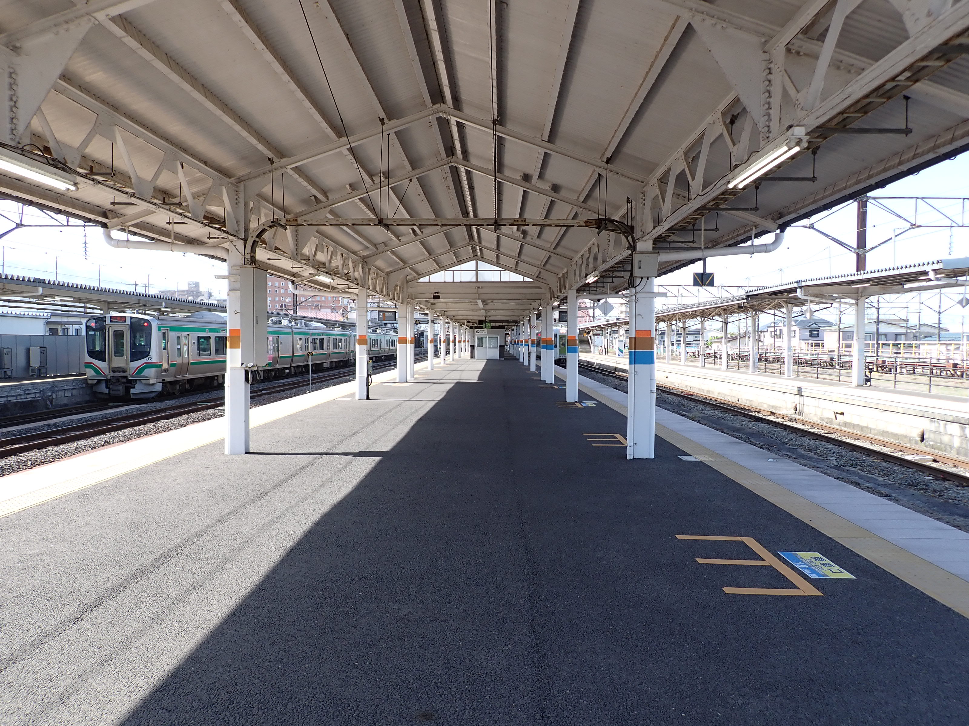 2番線は頭端式、3番線はそのまま七日町方面へ繋がっていますが、2番線の頭端部分へ進みます。