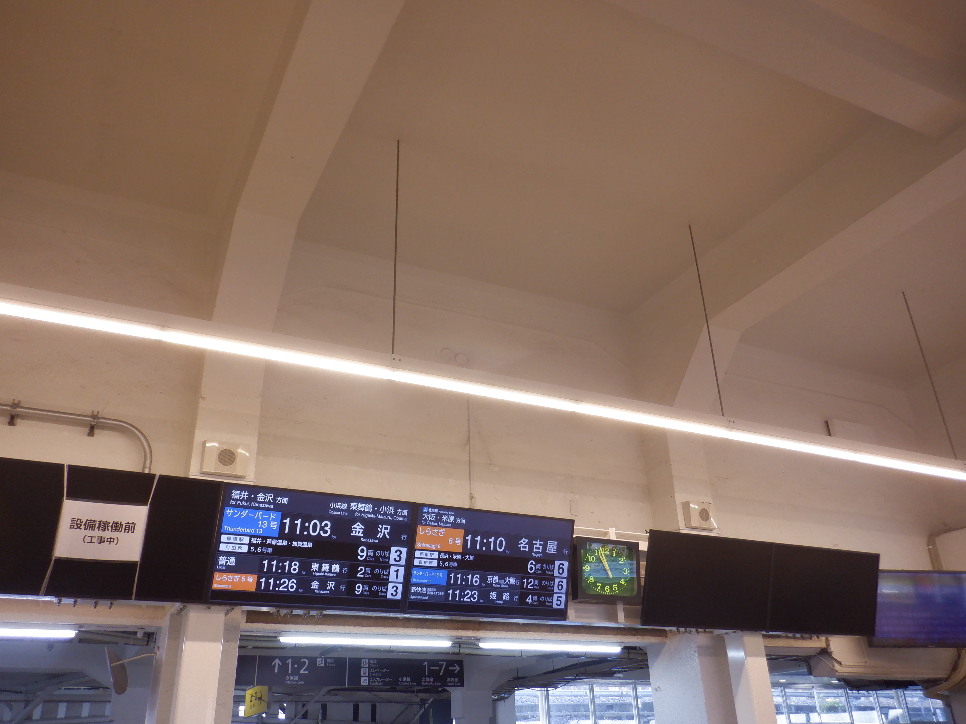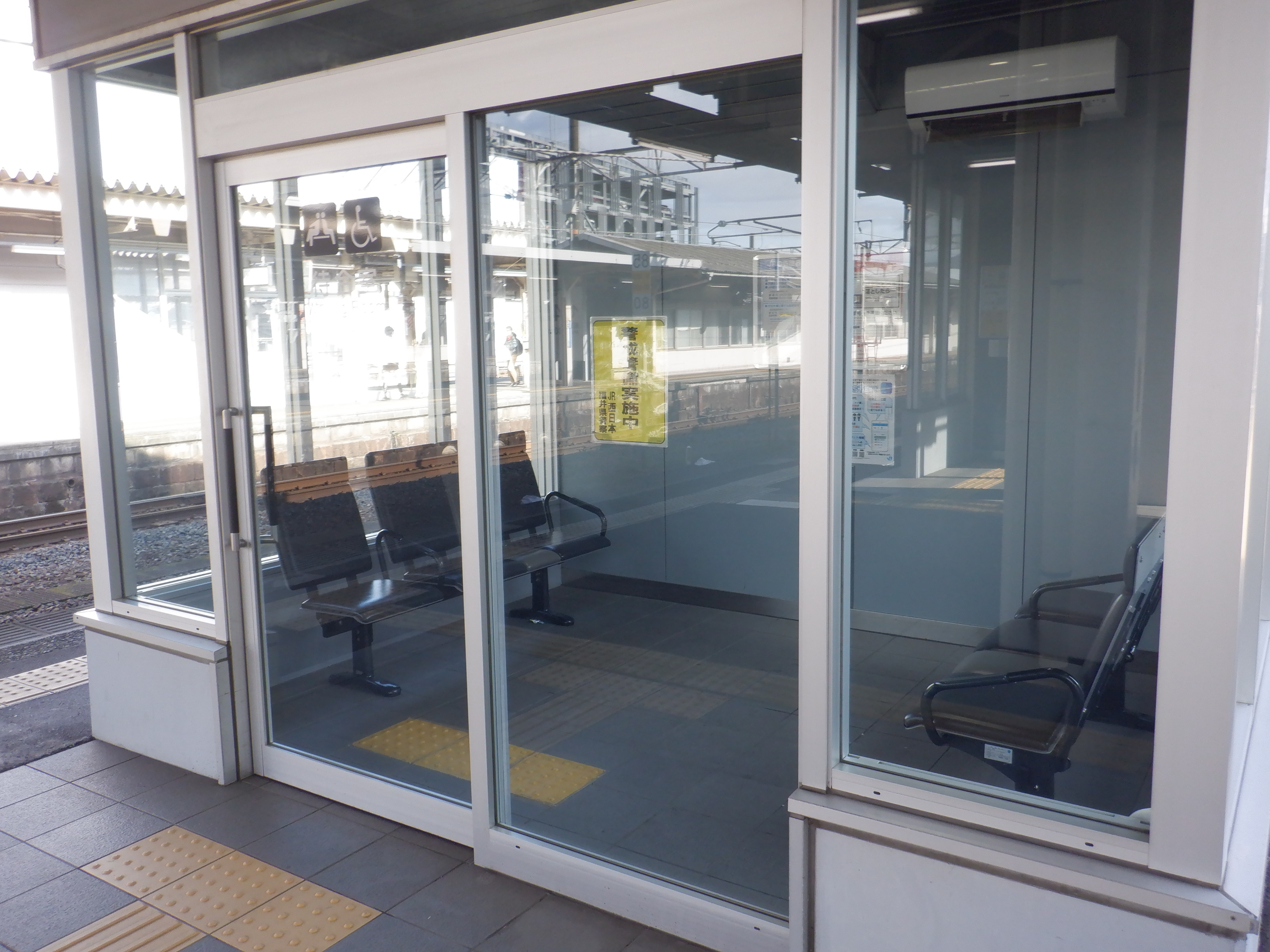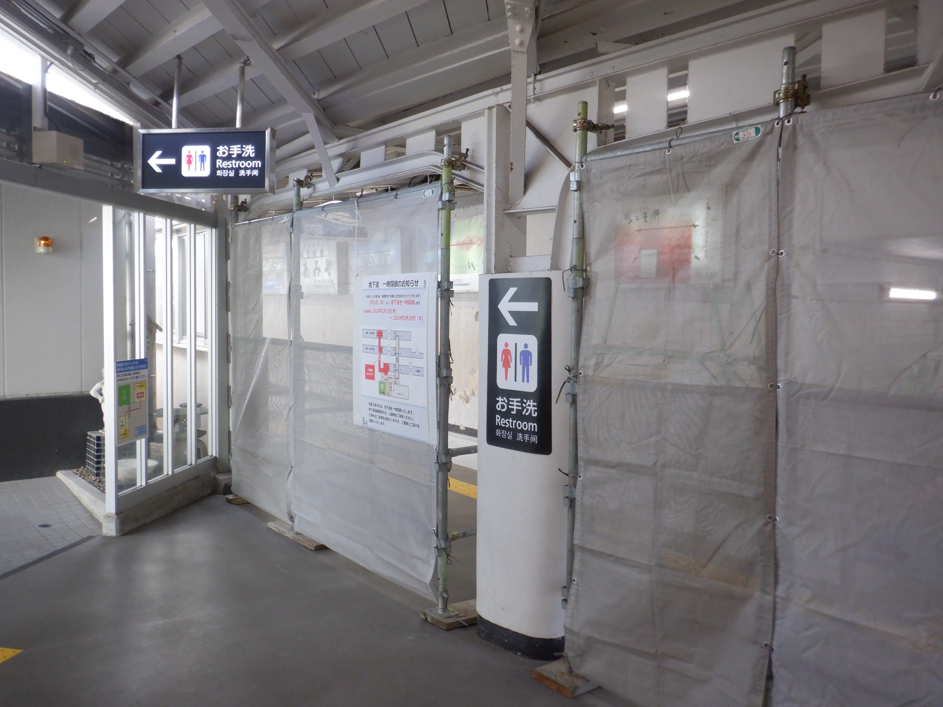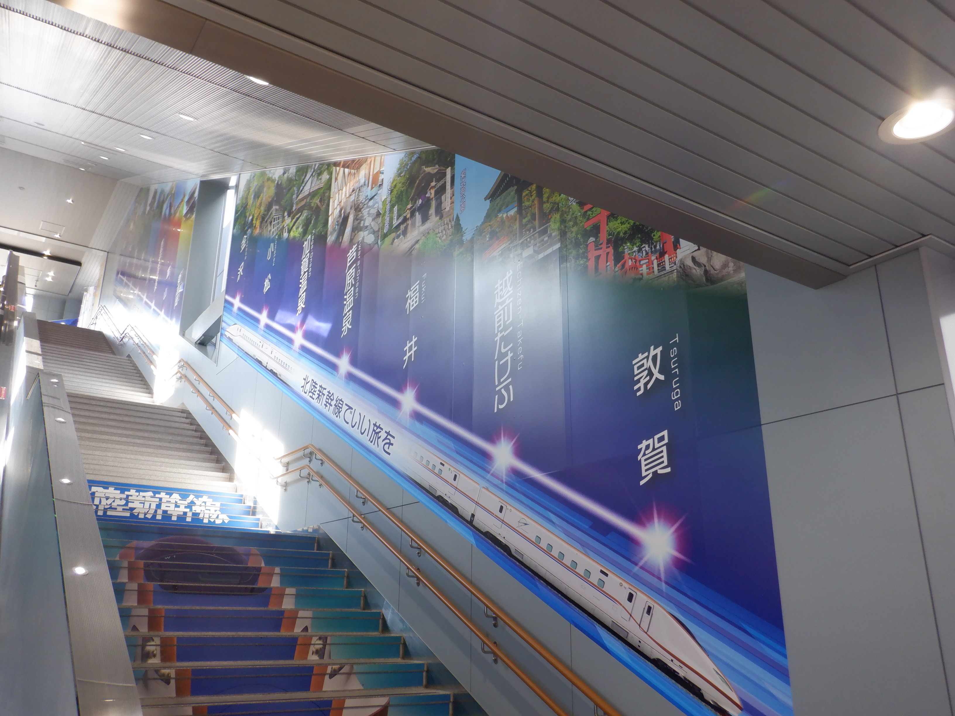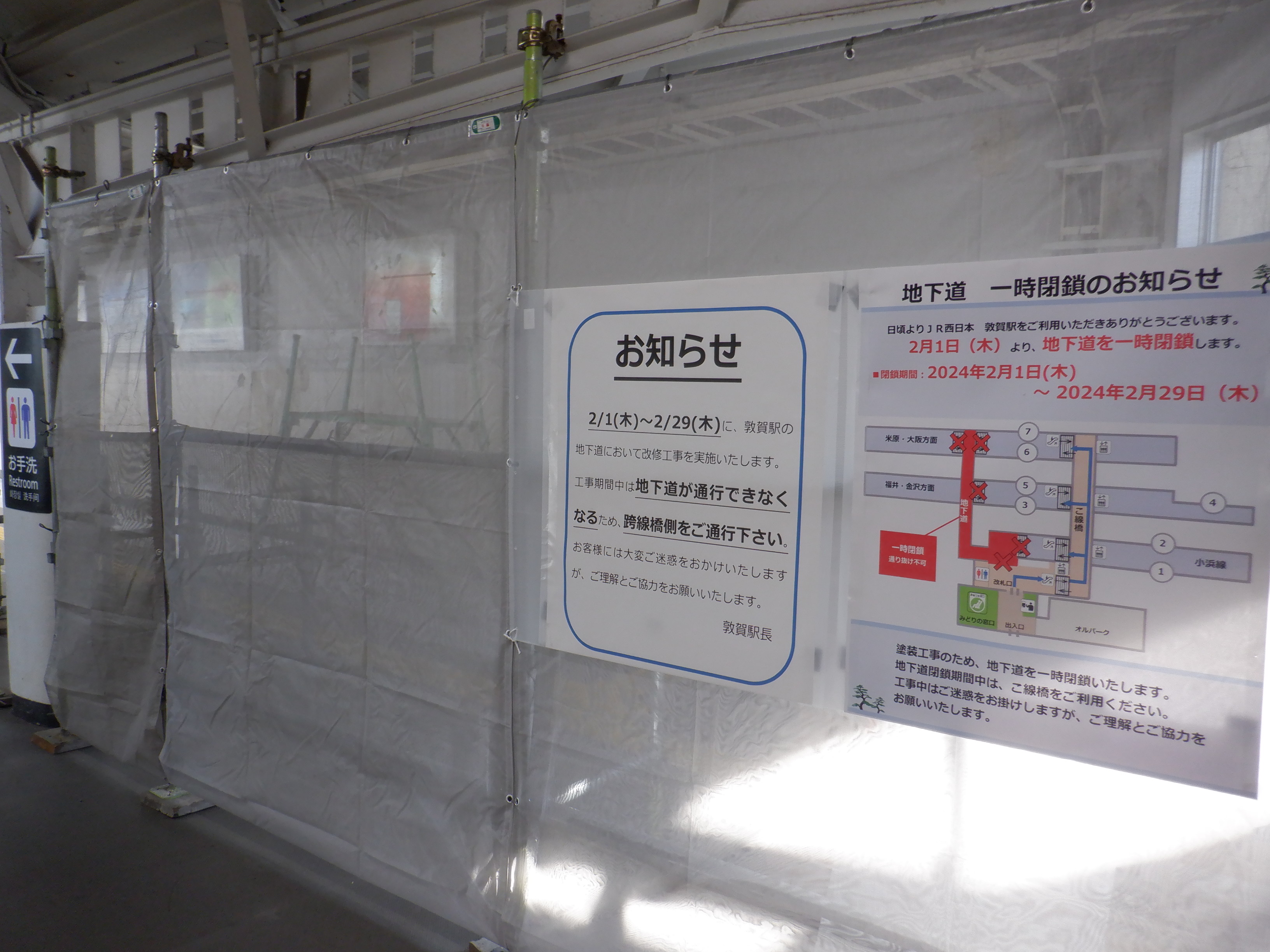 新幹線開業の前月となりました。地下道の改修工事が始まっています。また、駅名標も一部ハピラインふくいのロゴが入ったものに変わりました。(ロゴ部分は隠されています。)