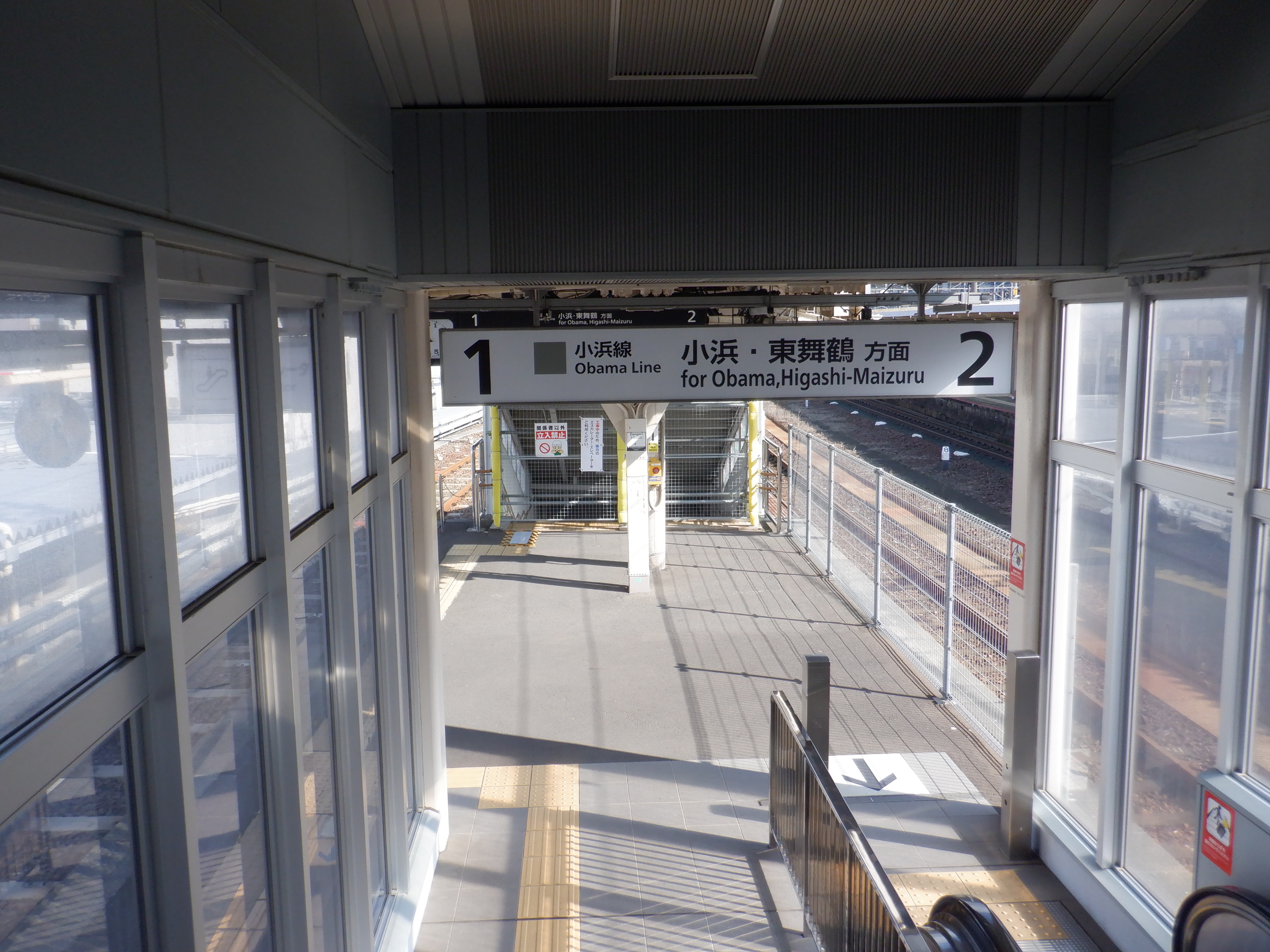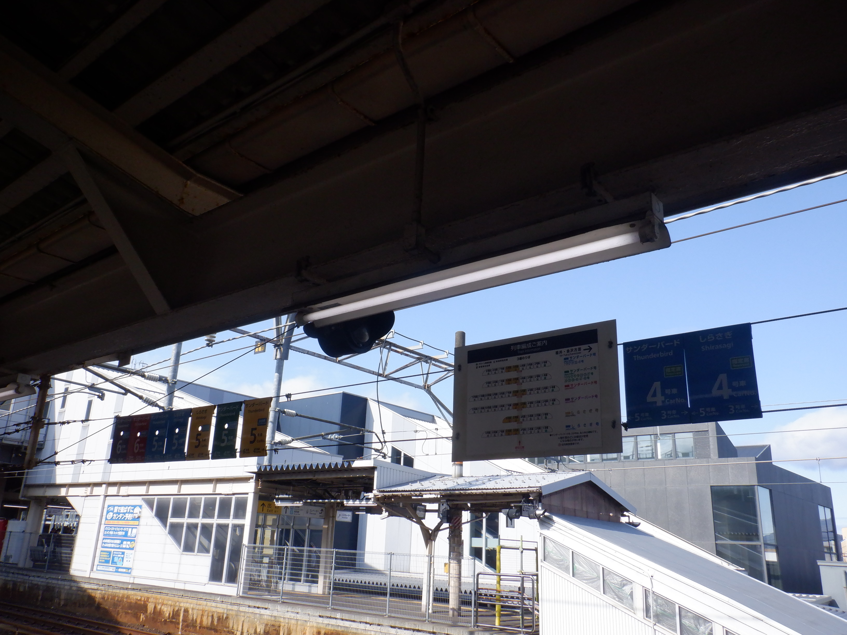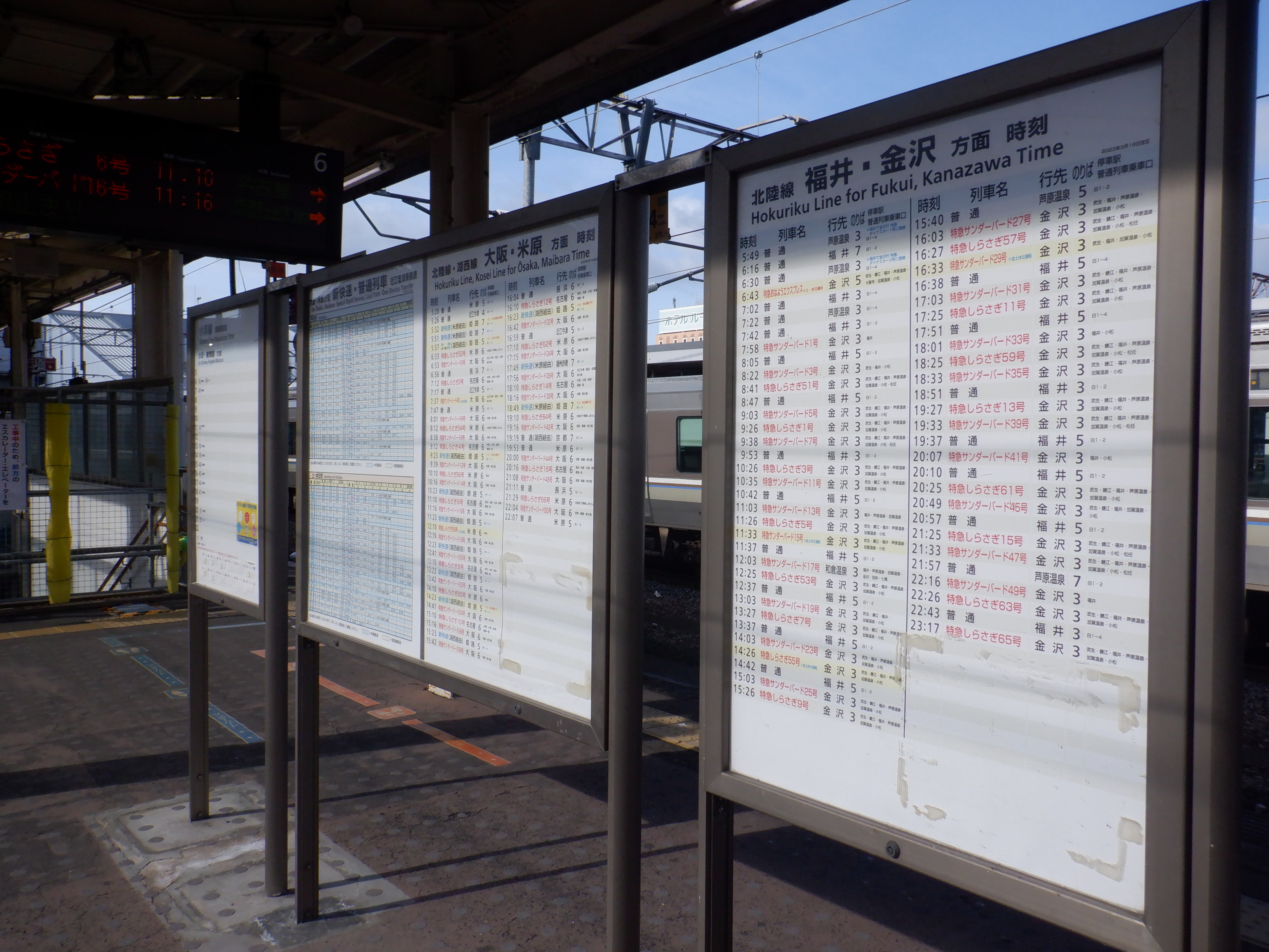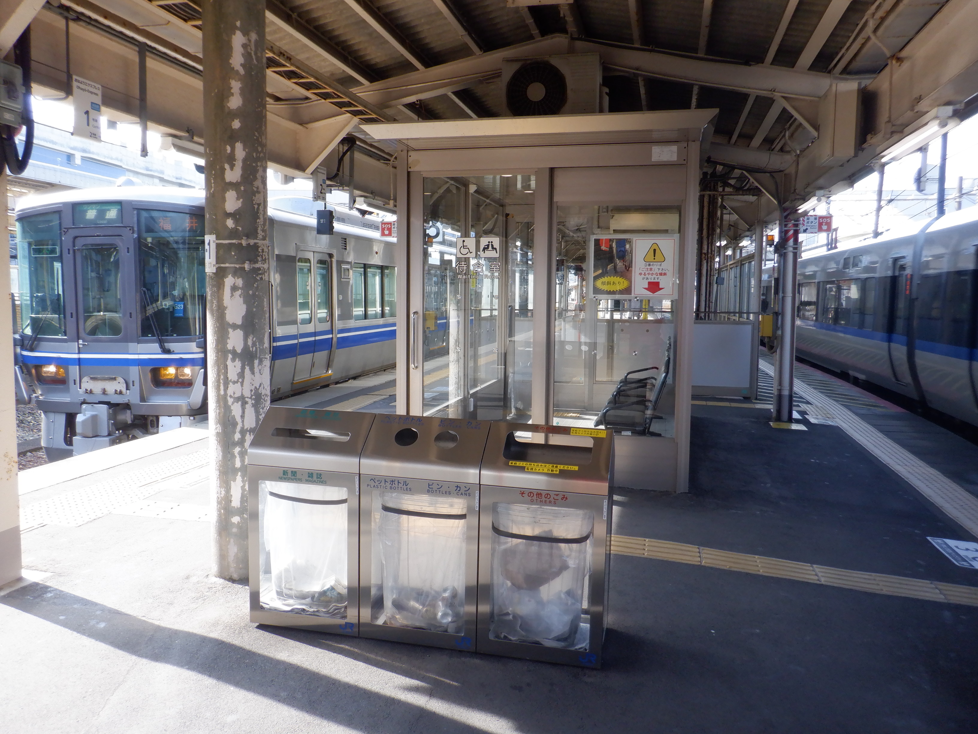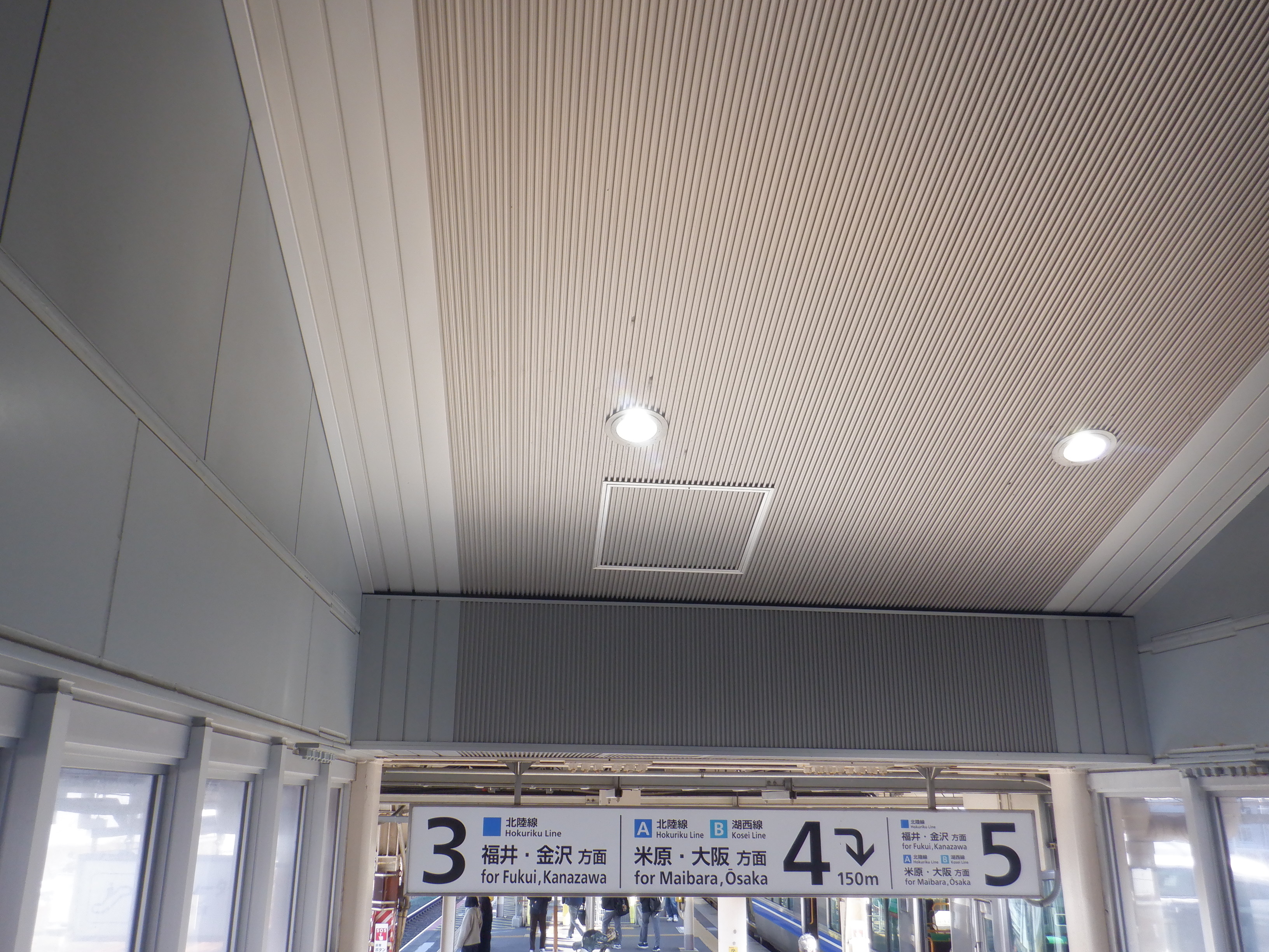 新幹線開業の前月となりました。地下道の改修工事が始まっています。また、駅名標も一部ハピラインふくいのロゴが入ったものに変わりました。(ロゴ部分は隠されています。)