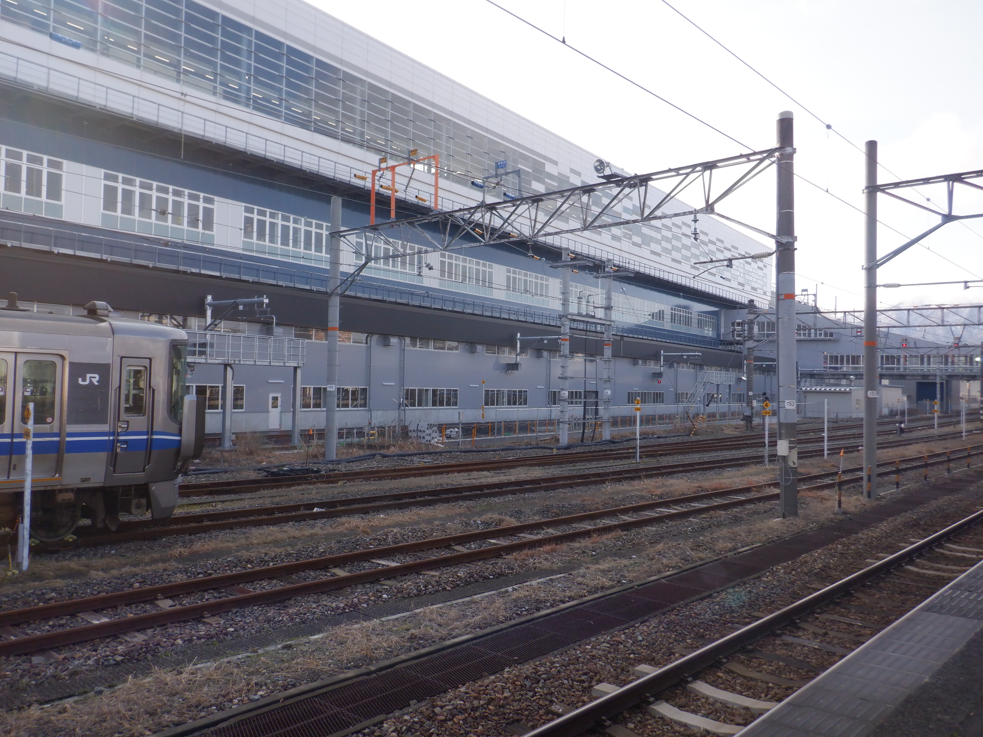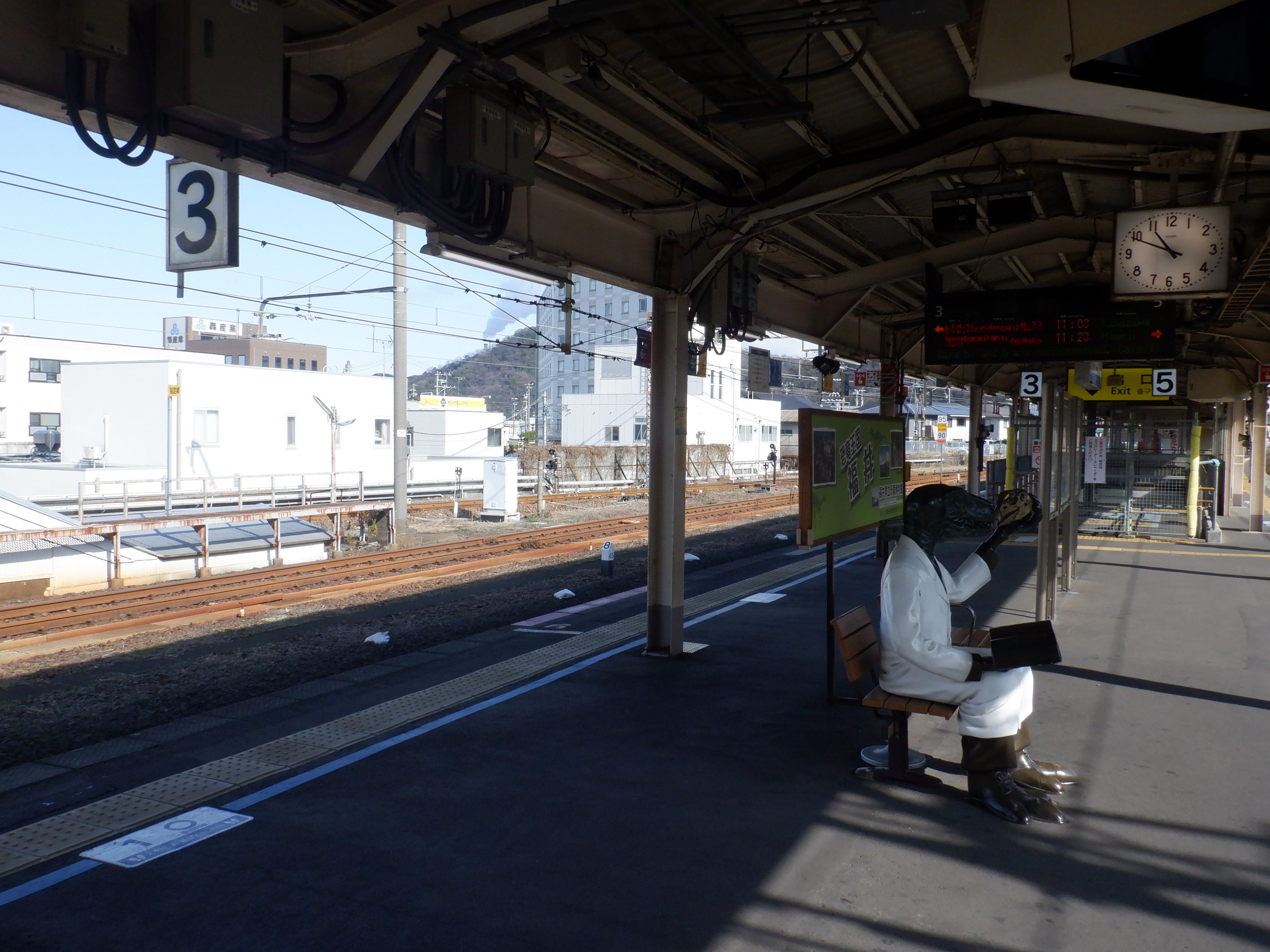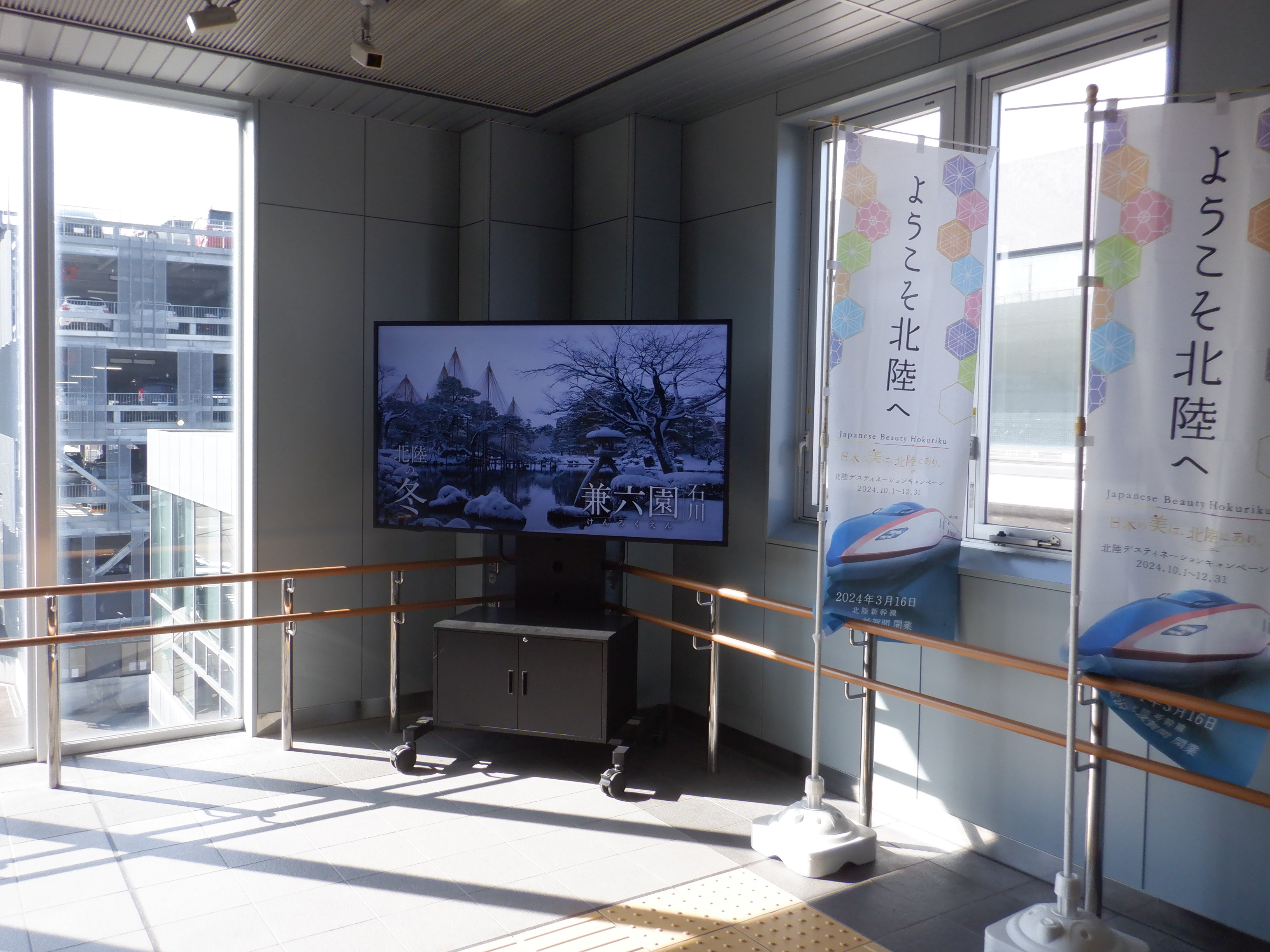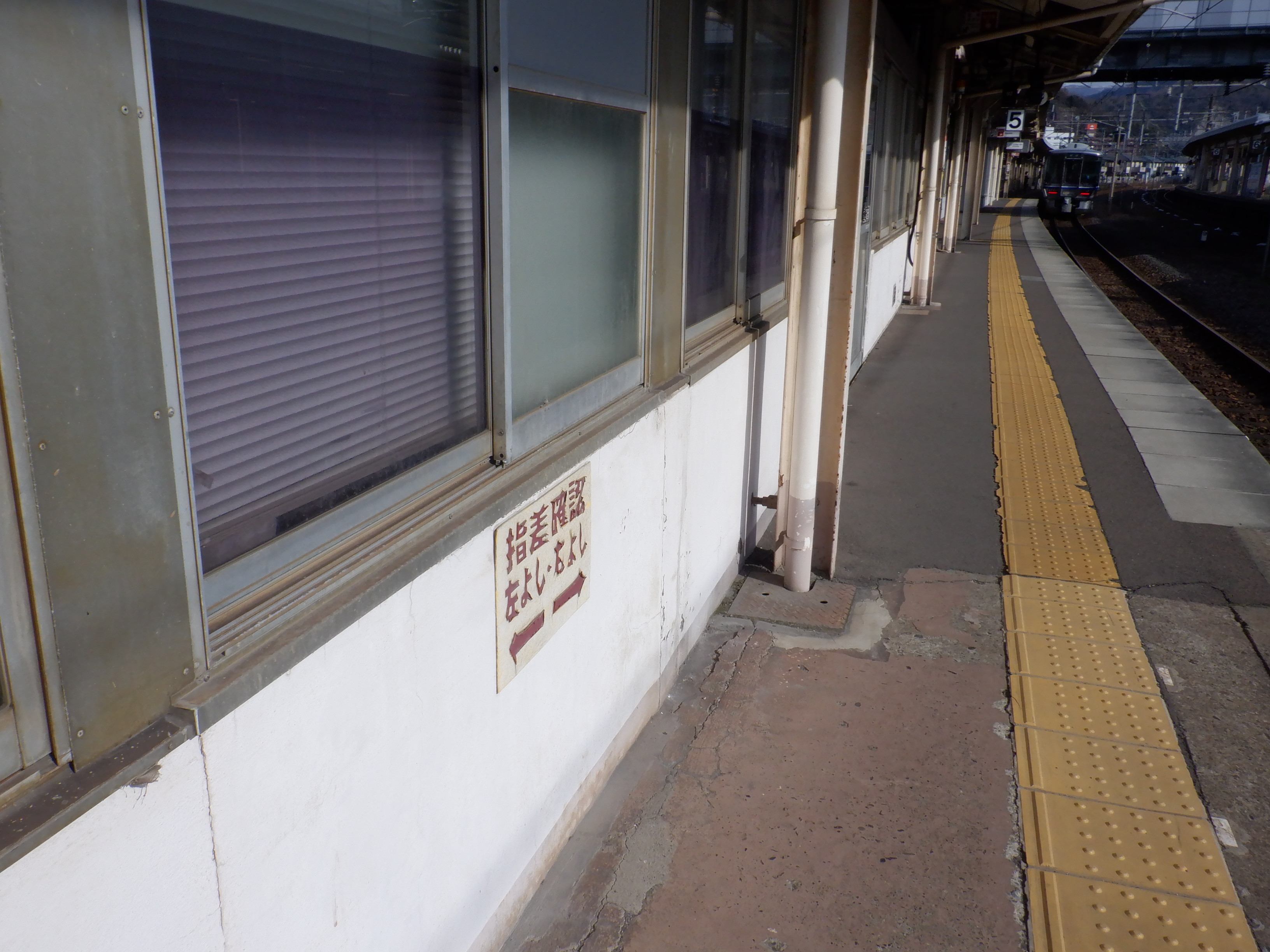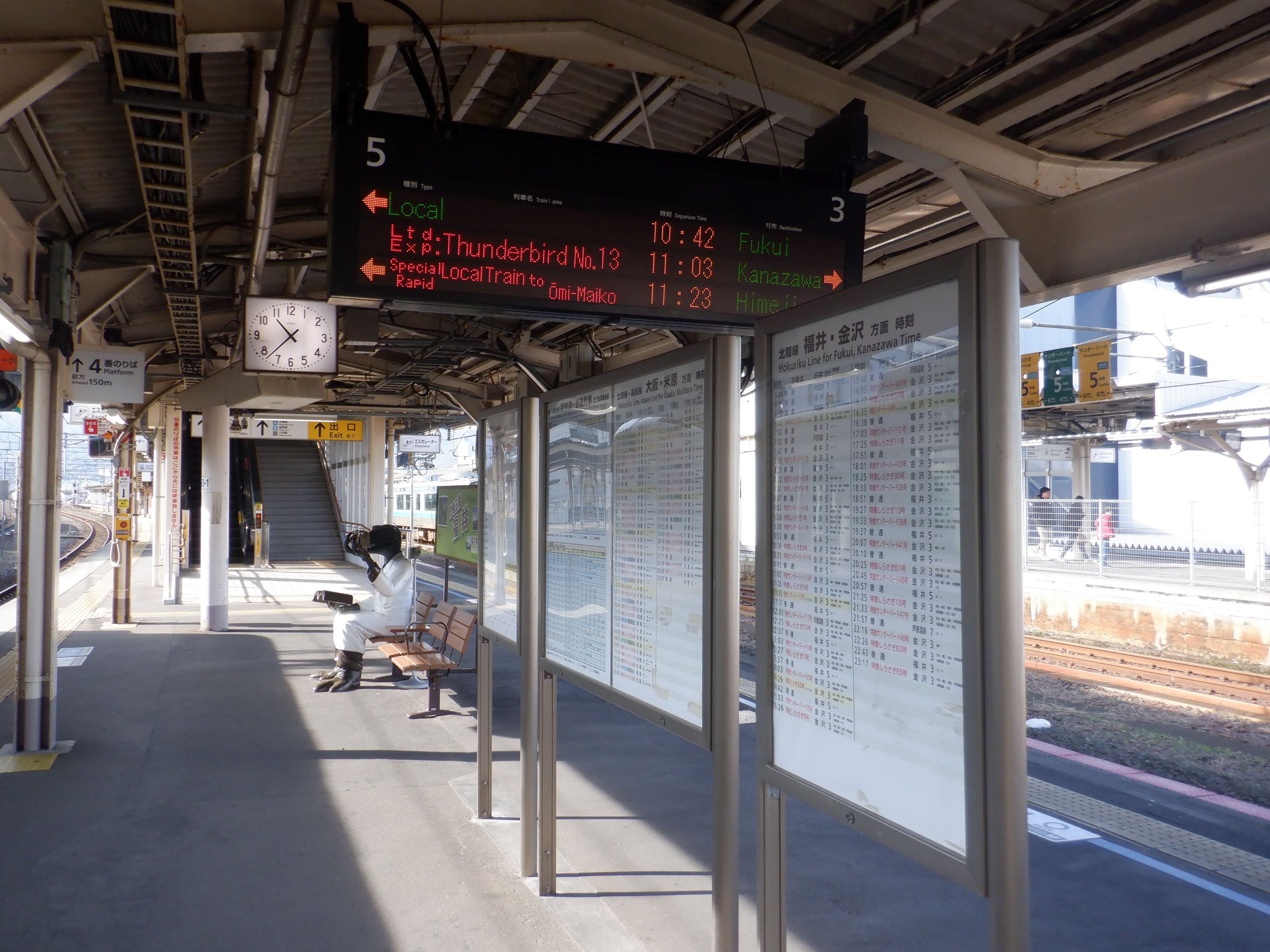 新幹線開業の前月となりました。地下道の改修工事が始まっています。また、駅名標も一部ハピラインふくいのロゴが入ったものに変わりました。(ロゴ部分は隠されています。)