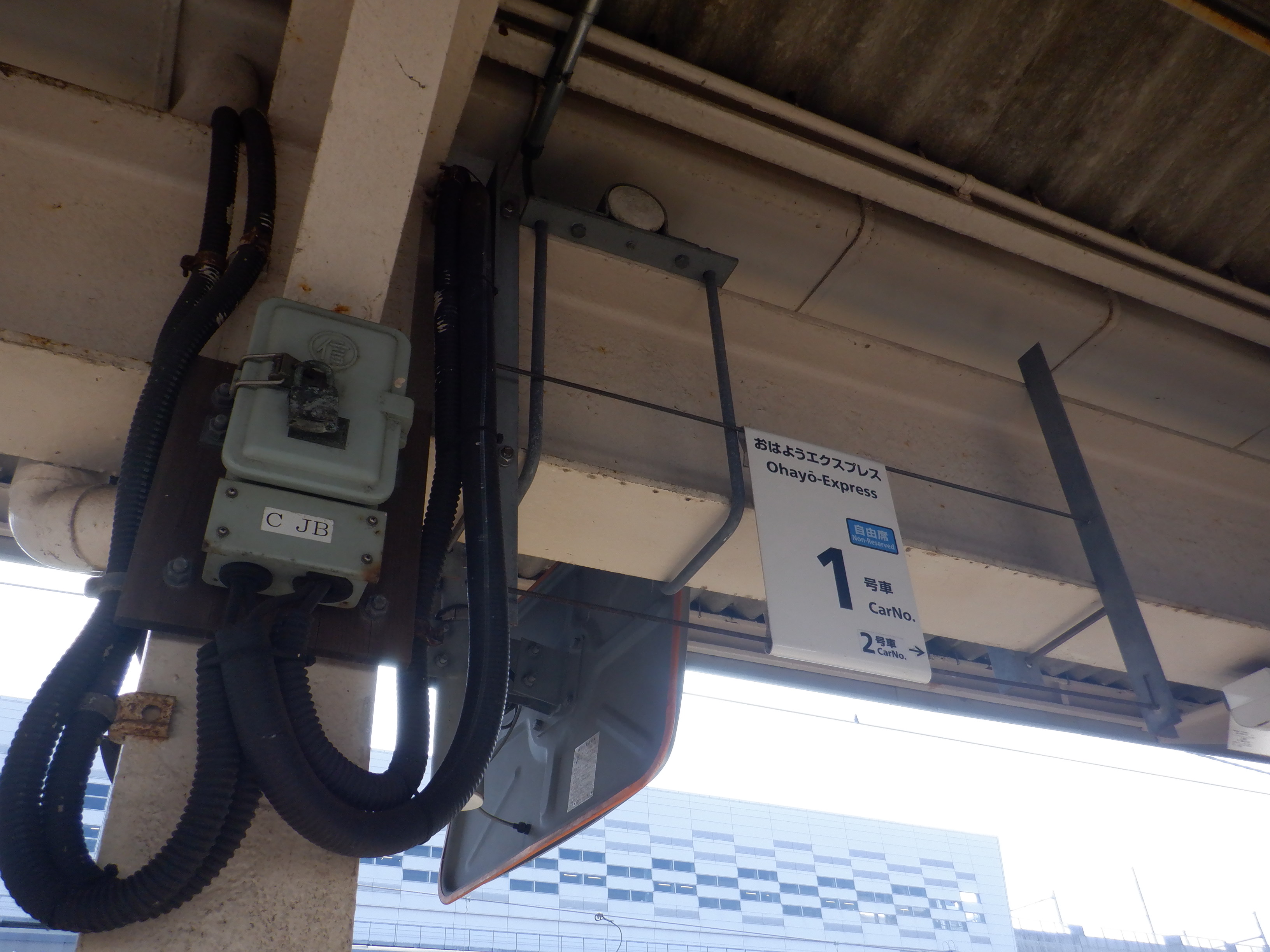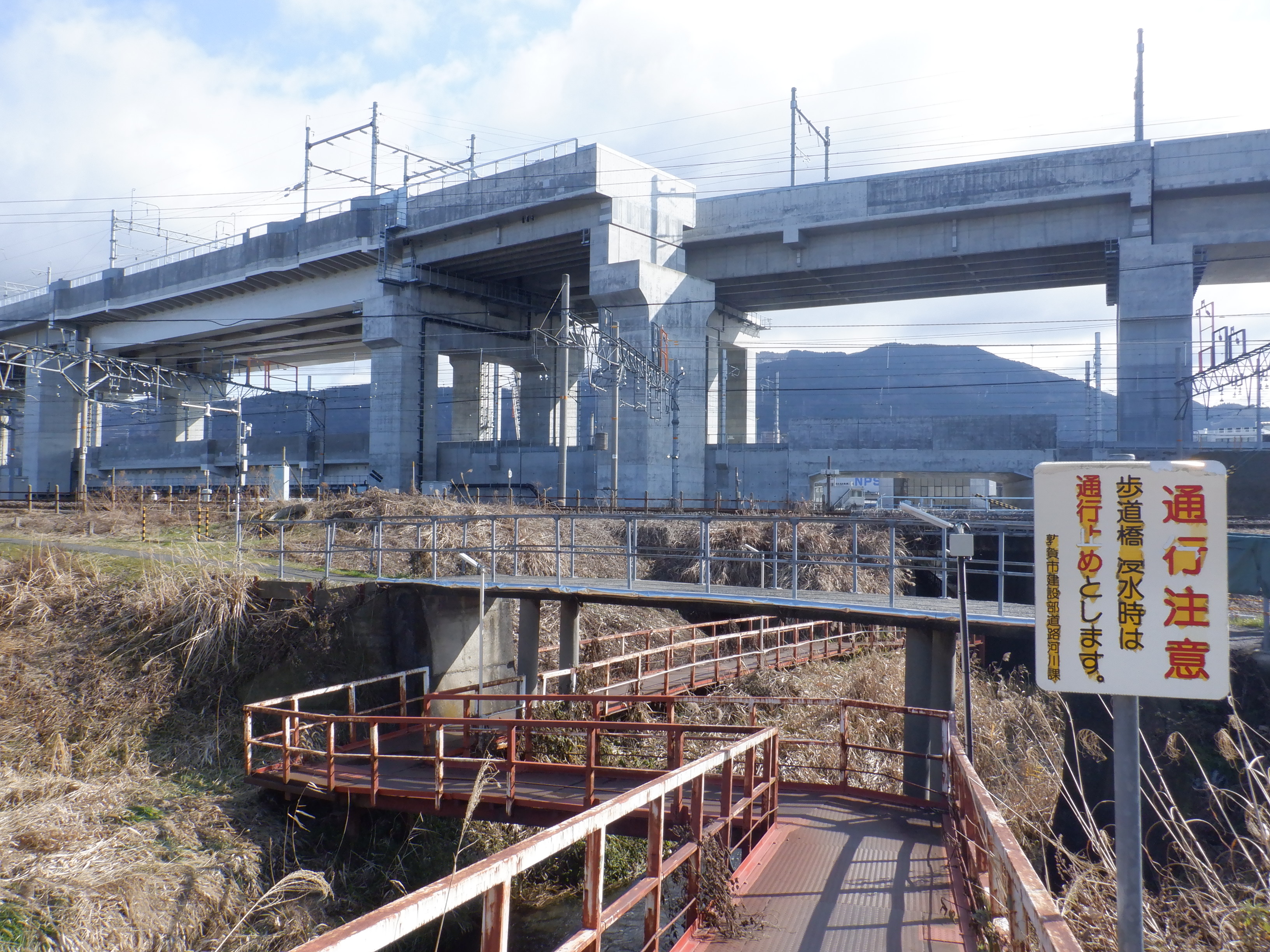 跨線橋に上がってきたところ。