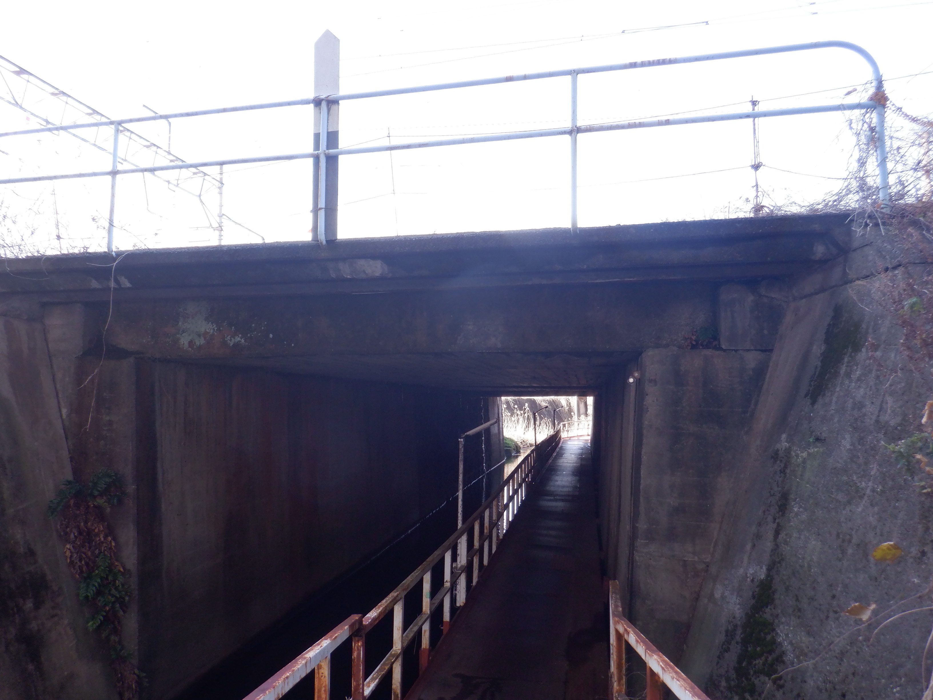 川と一緒に線路の下をくぐるところ。