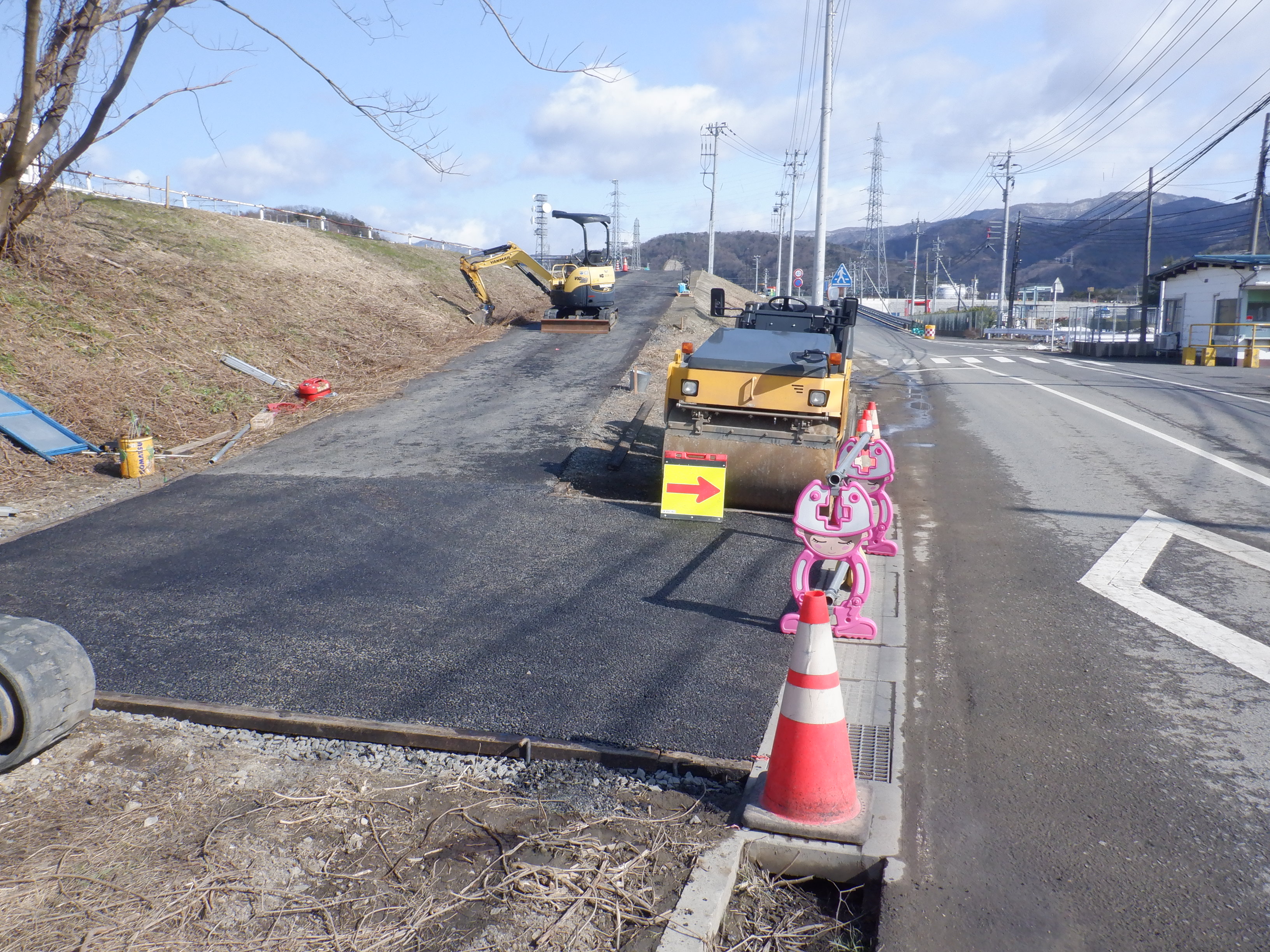 いつも堤防上へ上がる道は工事中でした。