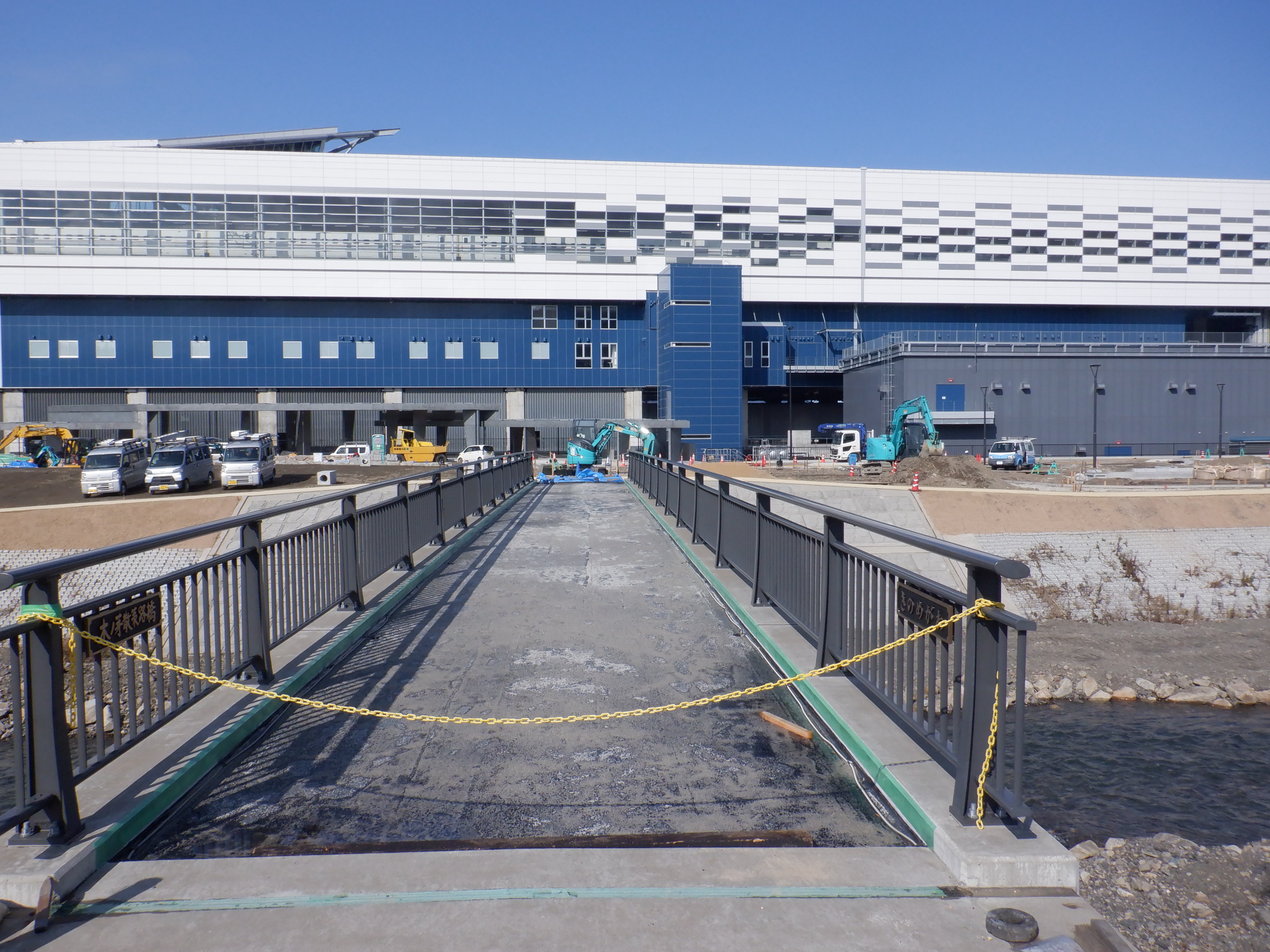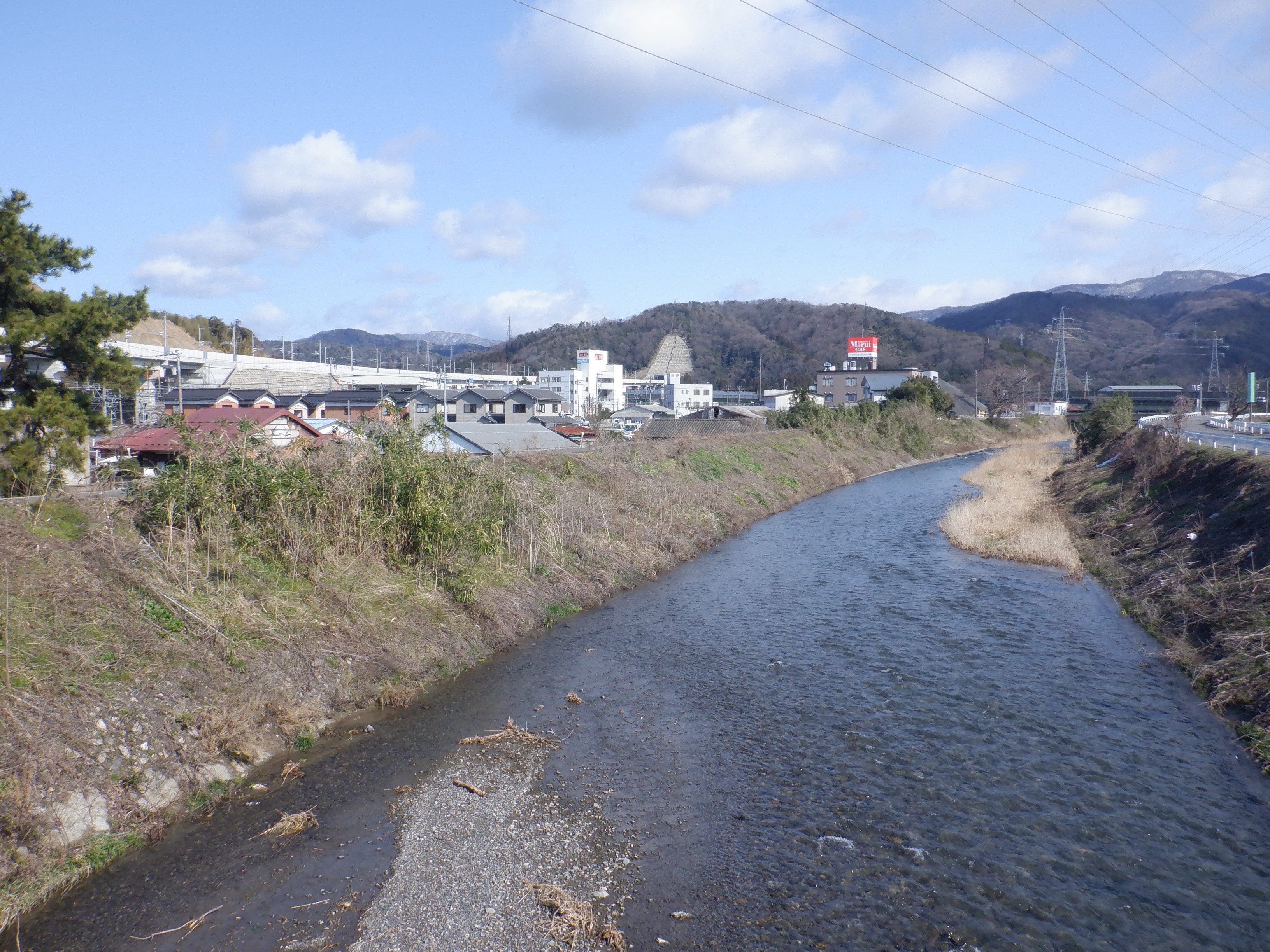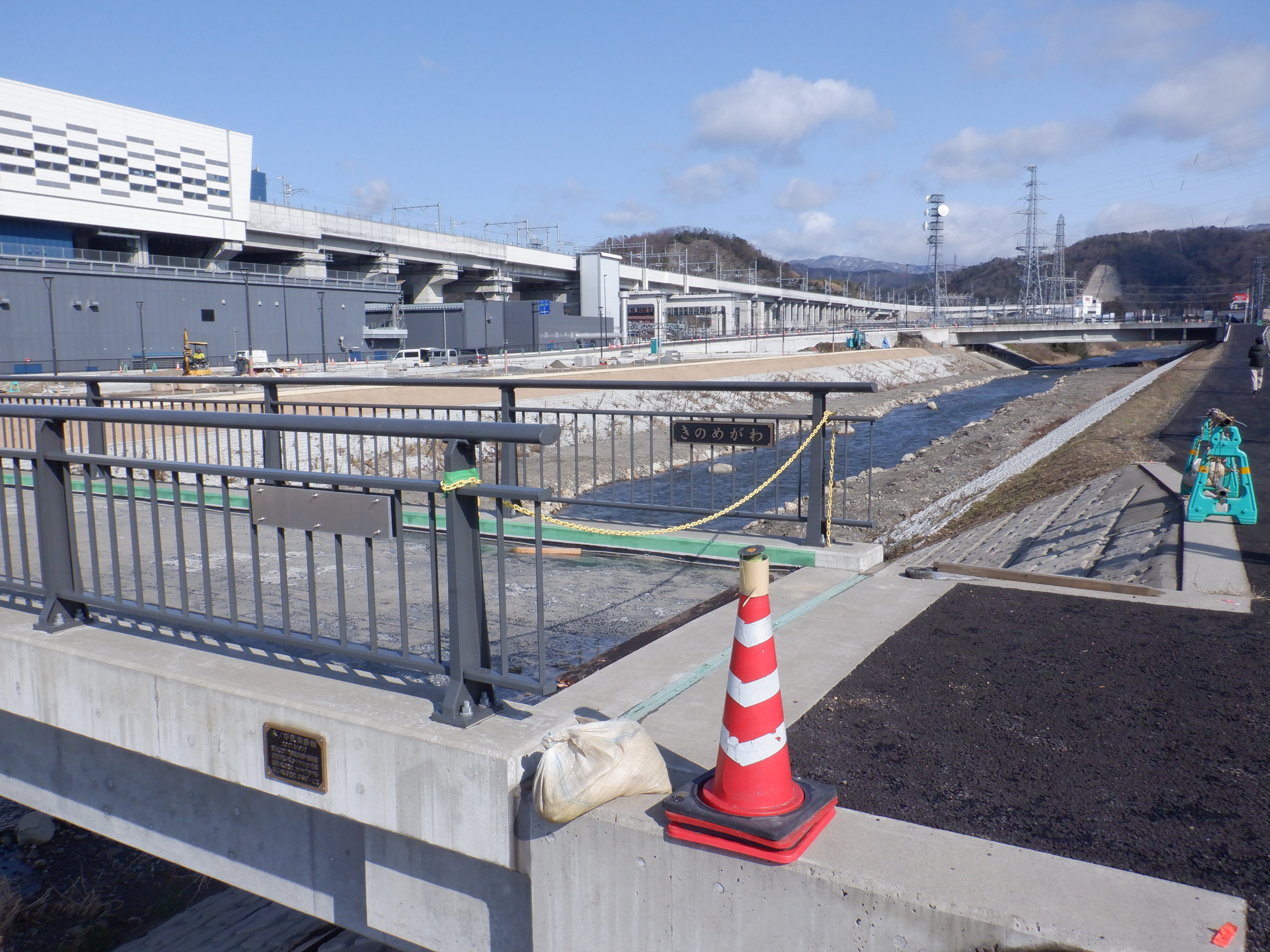 堤防沿いを少し戻ることができたので、新しい橋のあたりから見たやまなみ口。