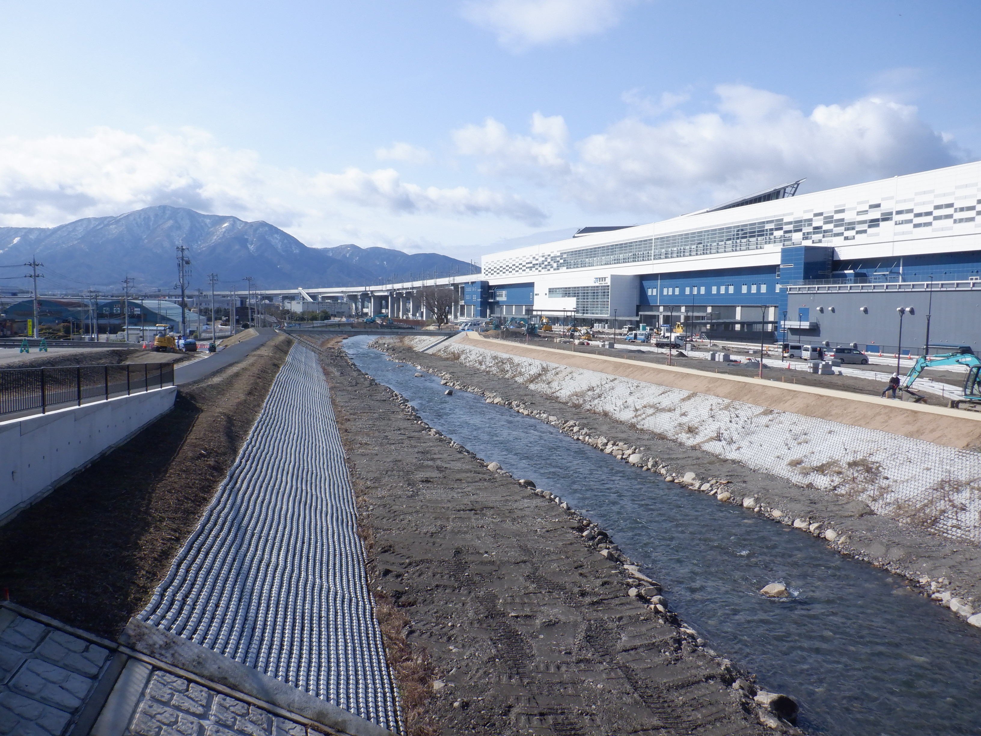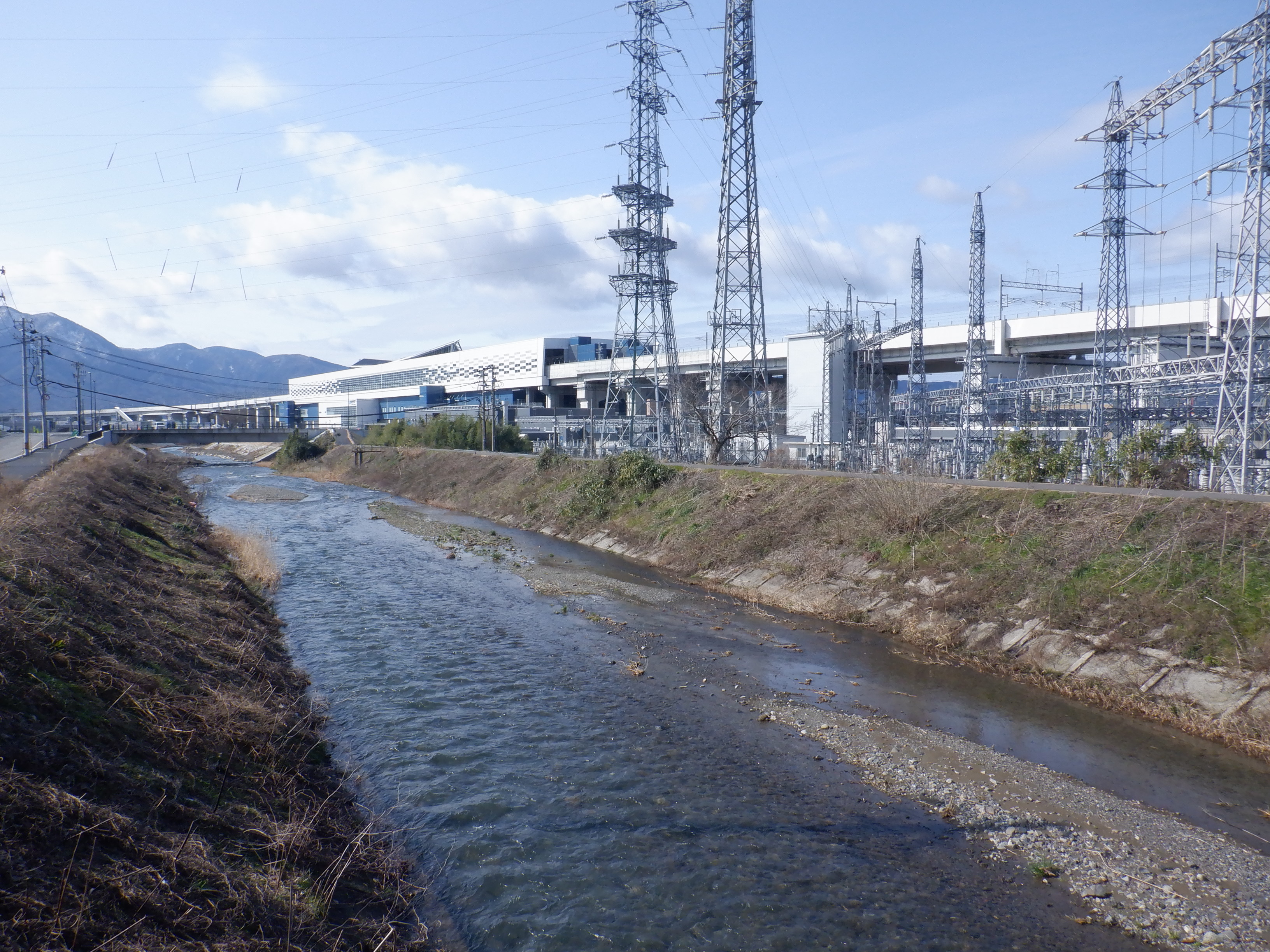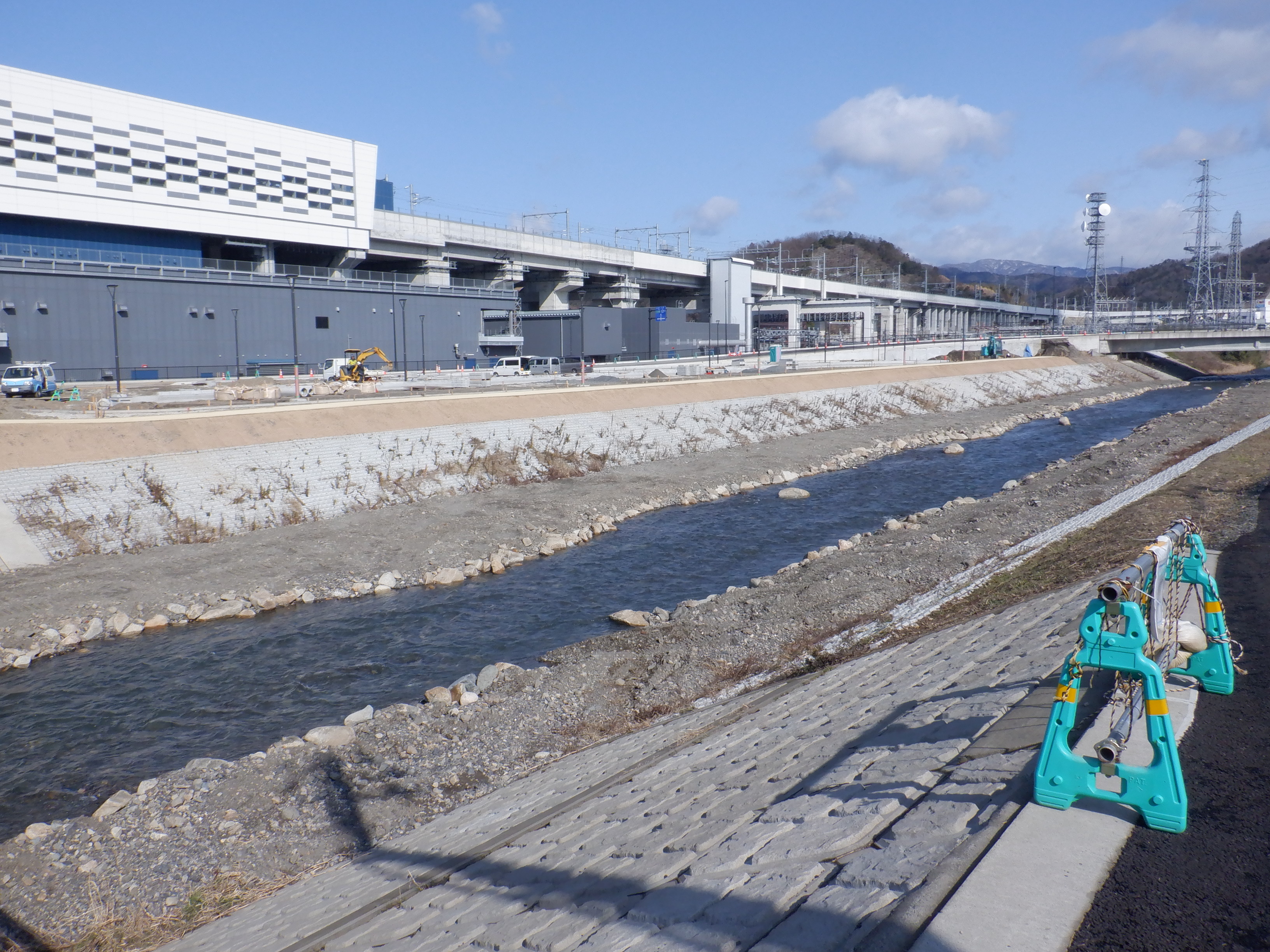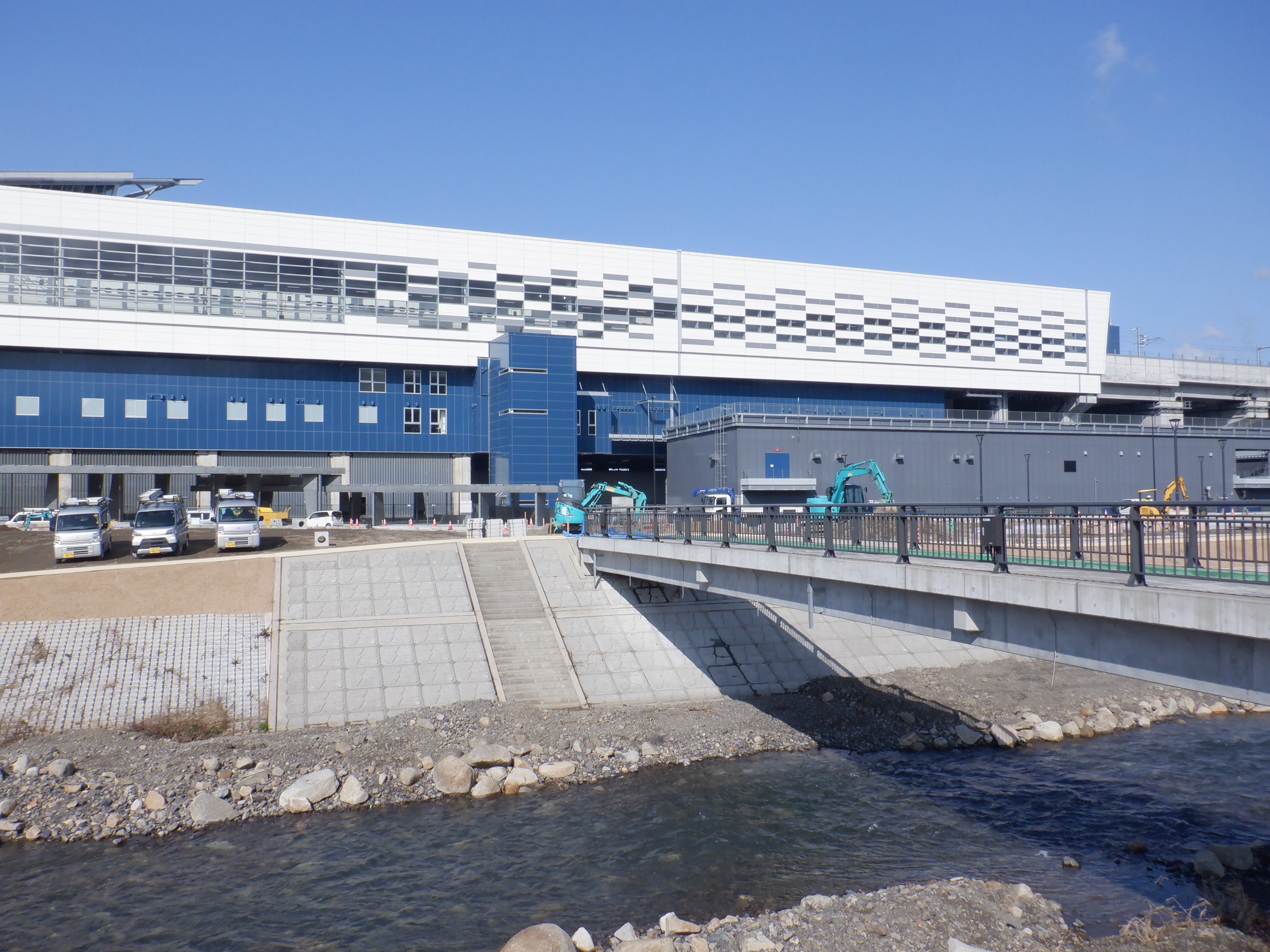 堤防沿いを少し戻ることができたので、新しい橋のあたりから見たやまなみ口。