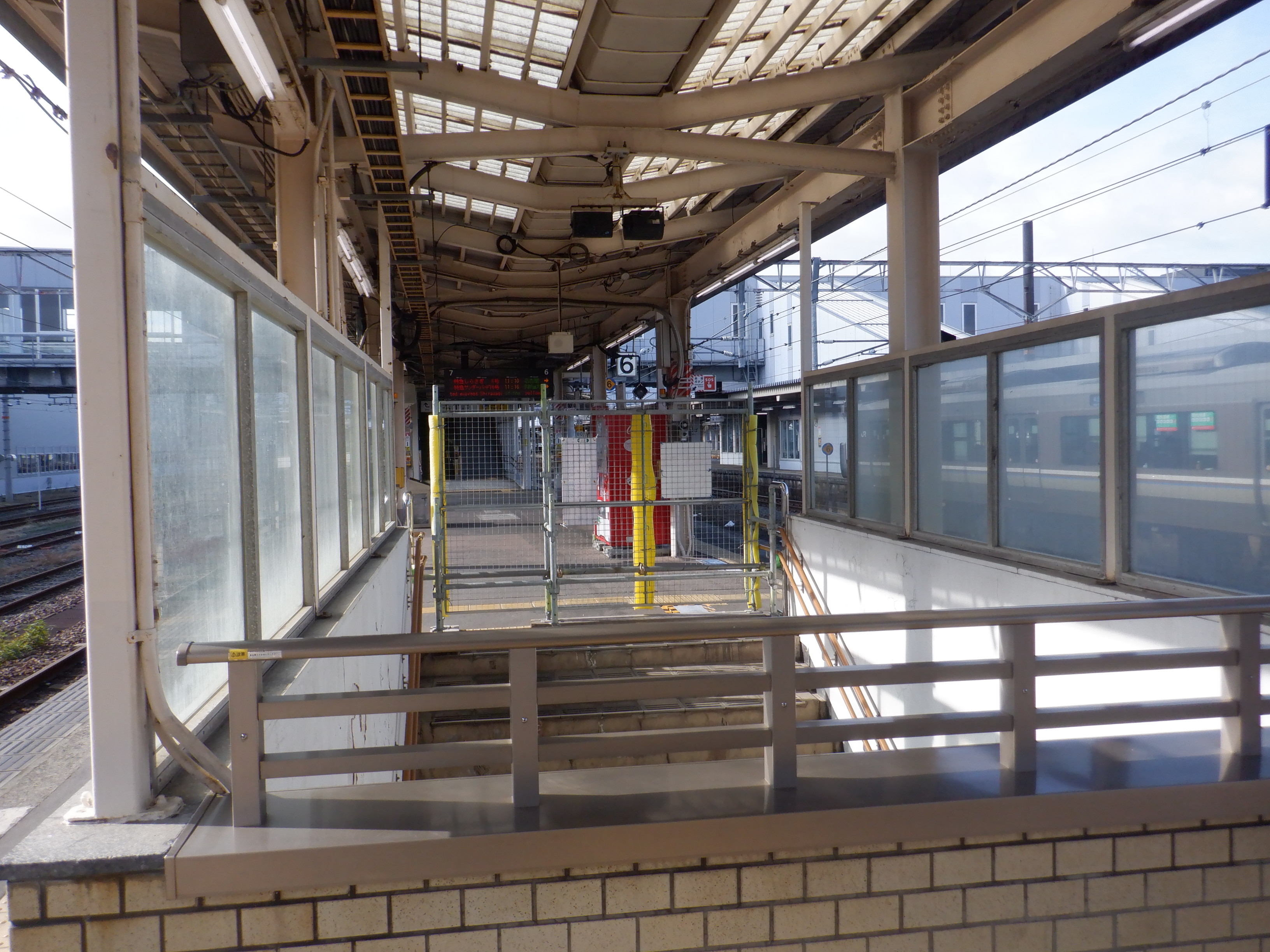 6番のりばの特急列車の乗車位置案内。点灯するランプが撤去されています。