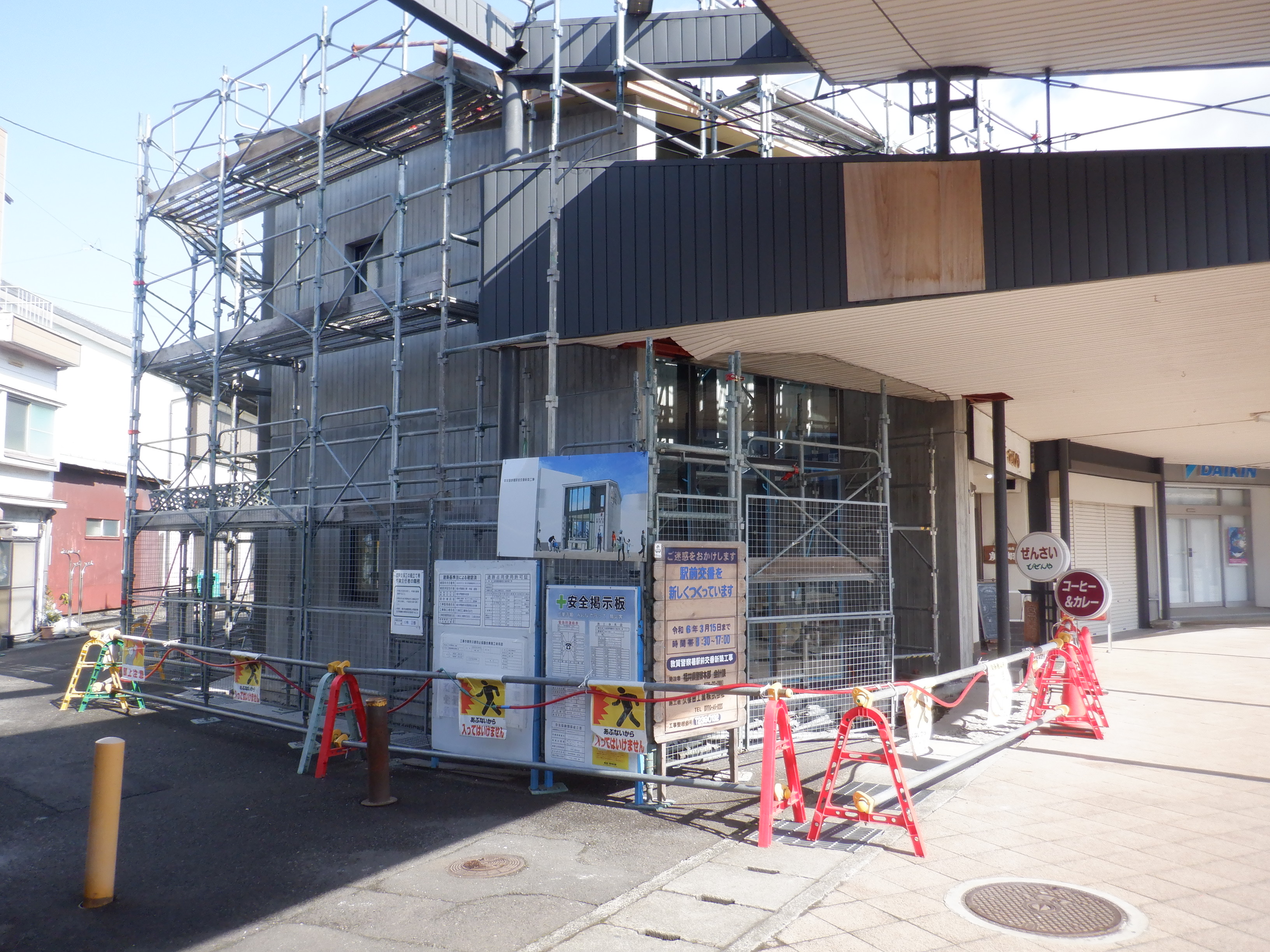 駅前広場の交番建設中の様子。