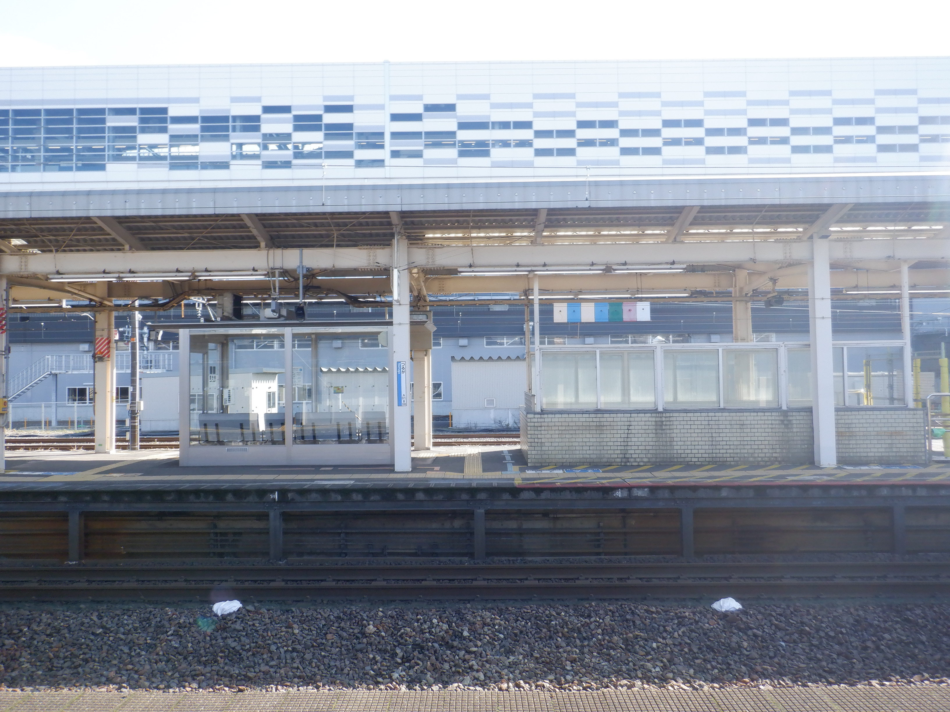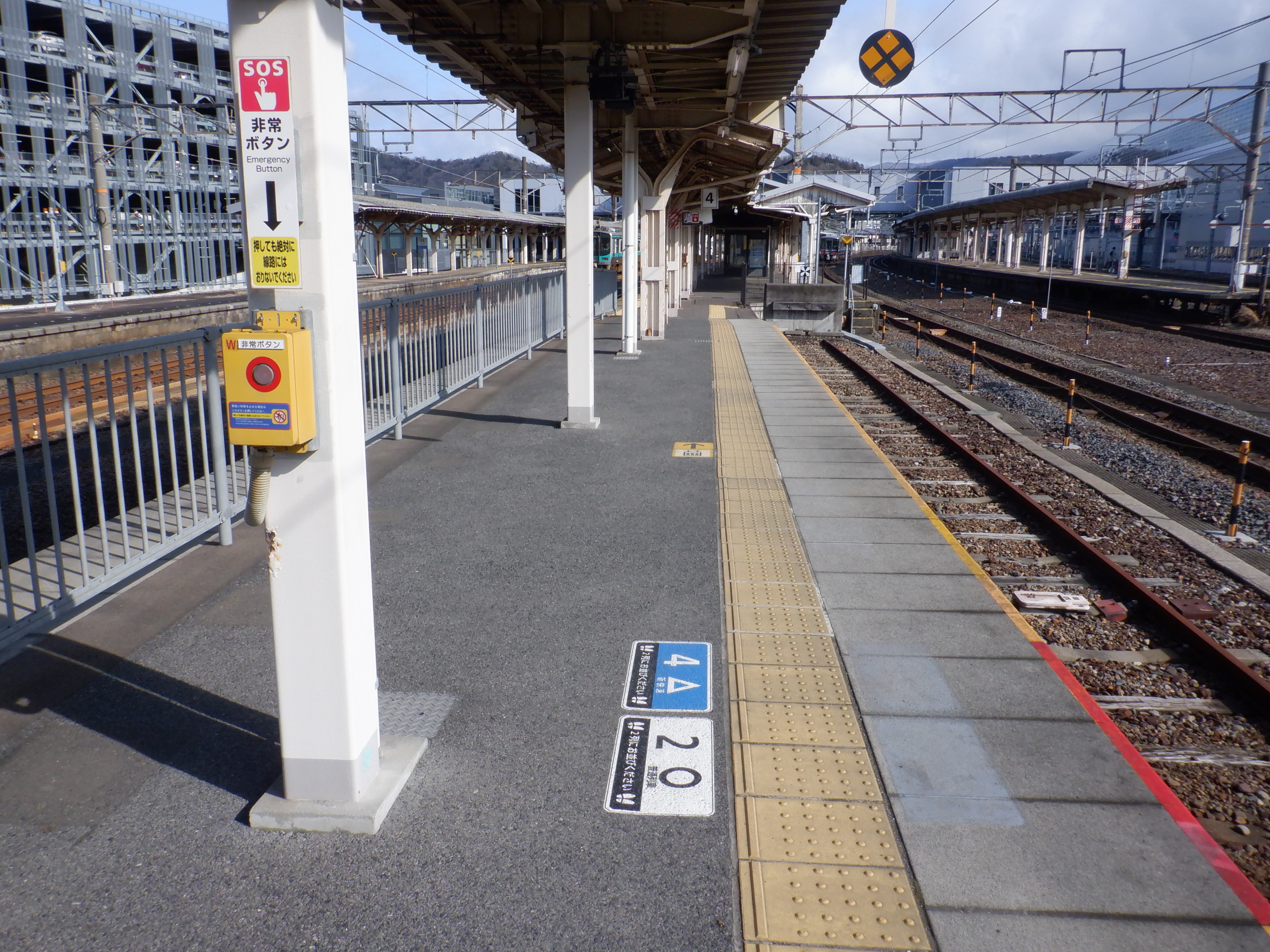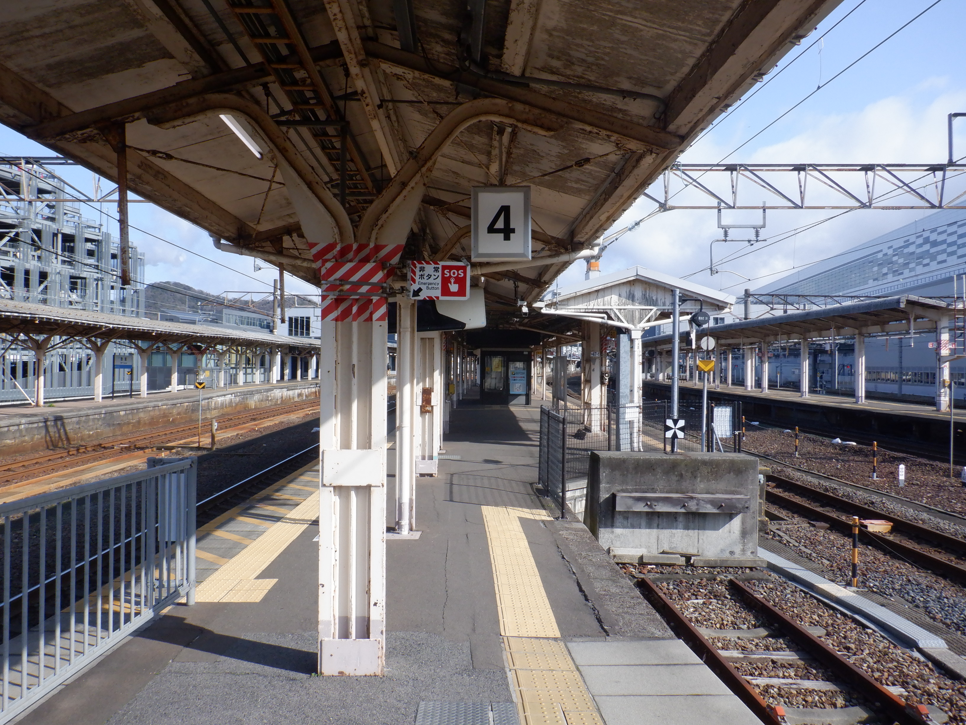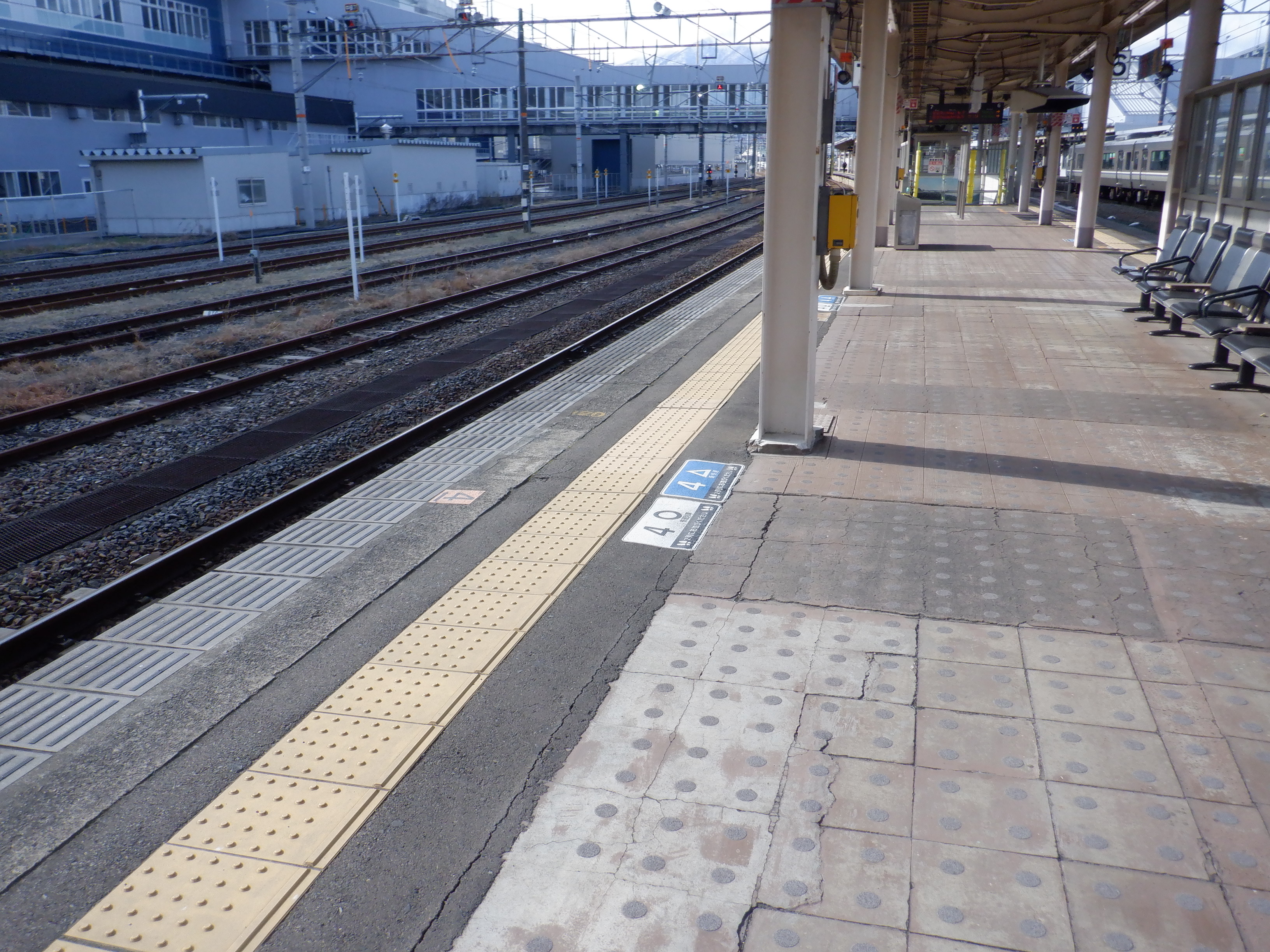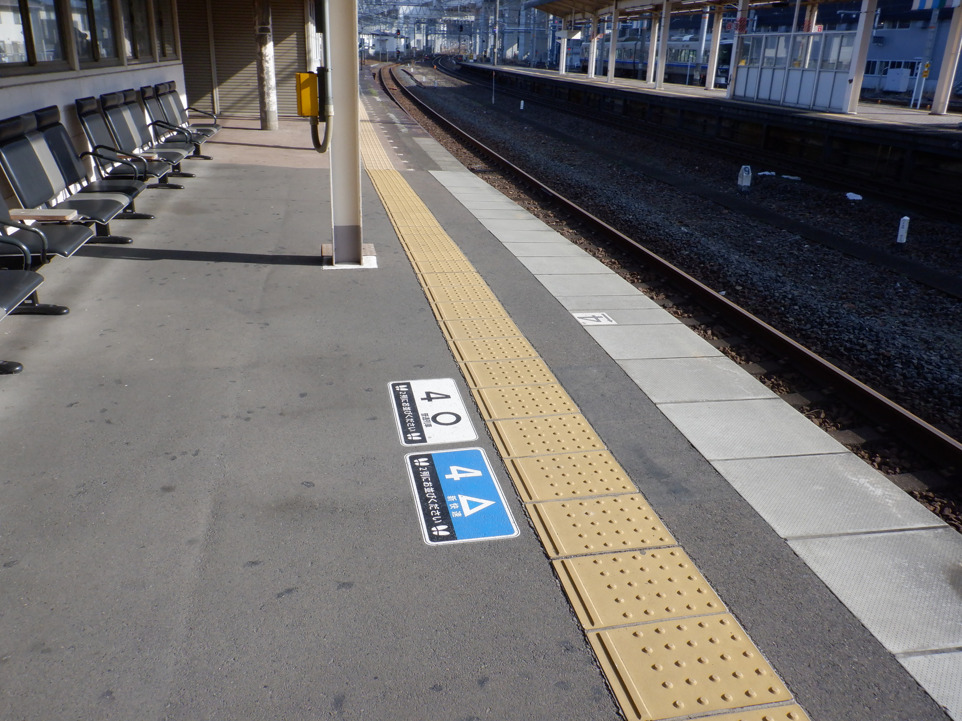 4番のりばの様子。駅名標はハピラインロゴなどが貼られていませんでした。