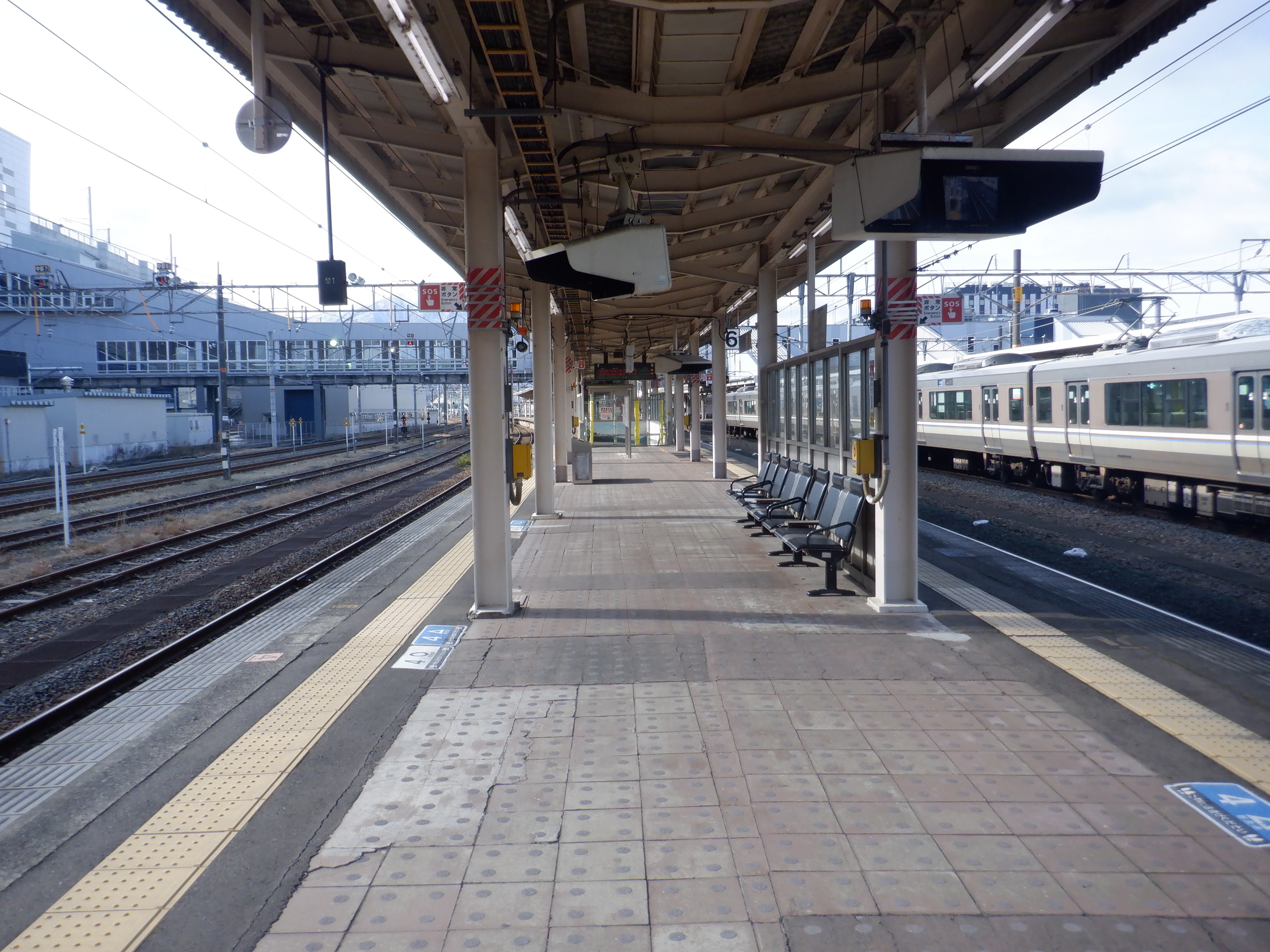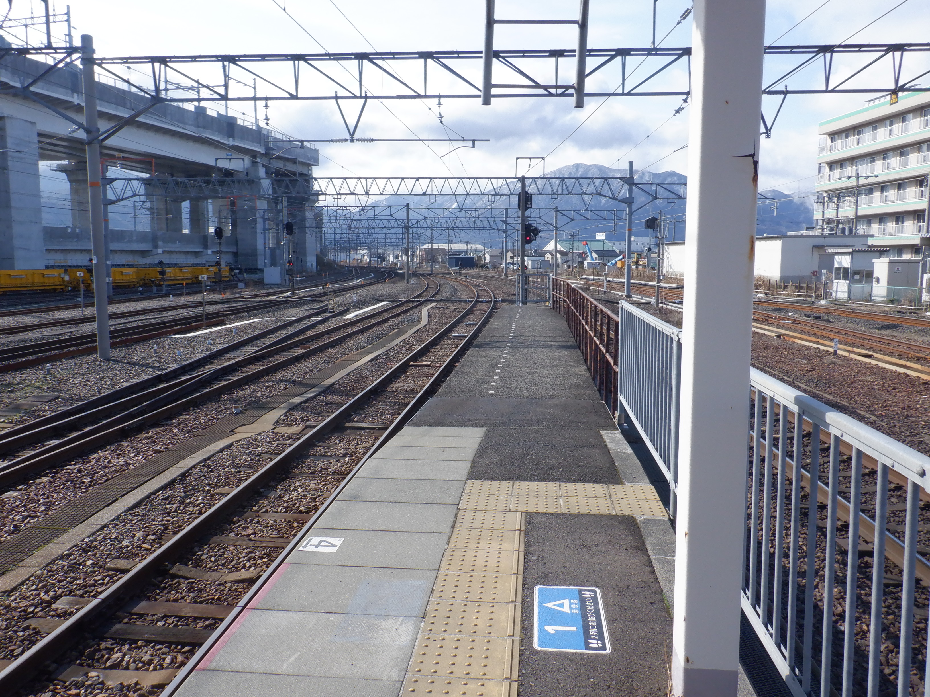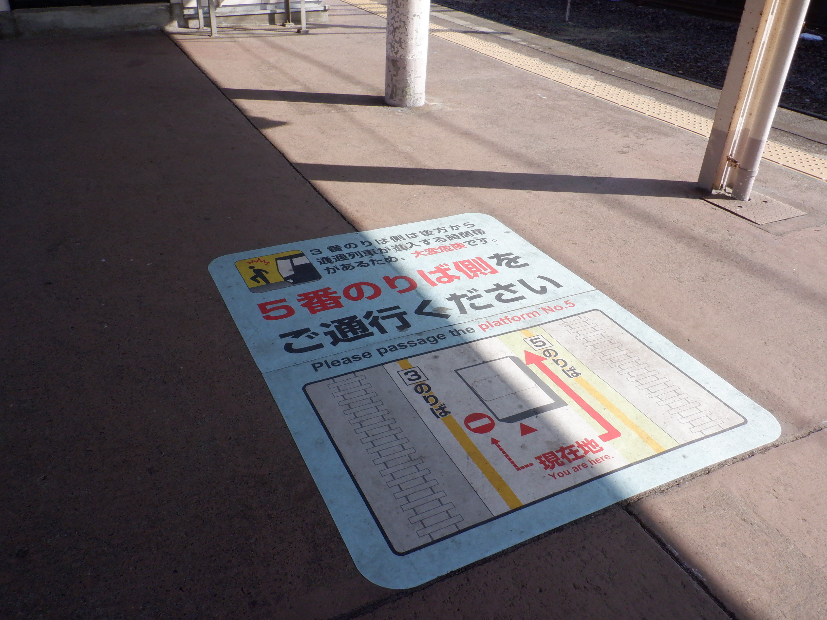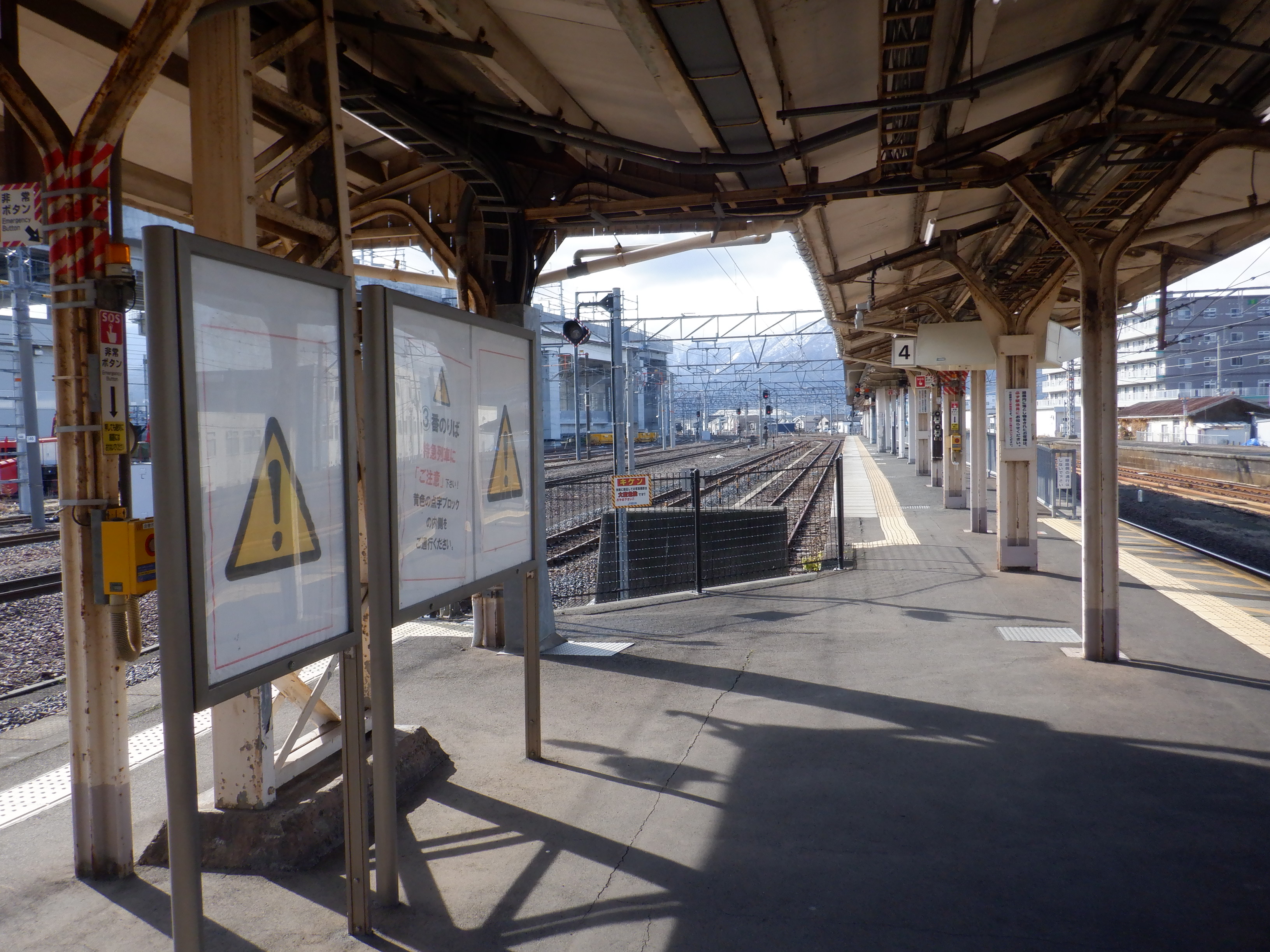 4番のりばの様子。駅名標はハピラインロゴなどが貼られていませんでした。