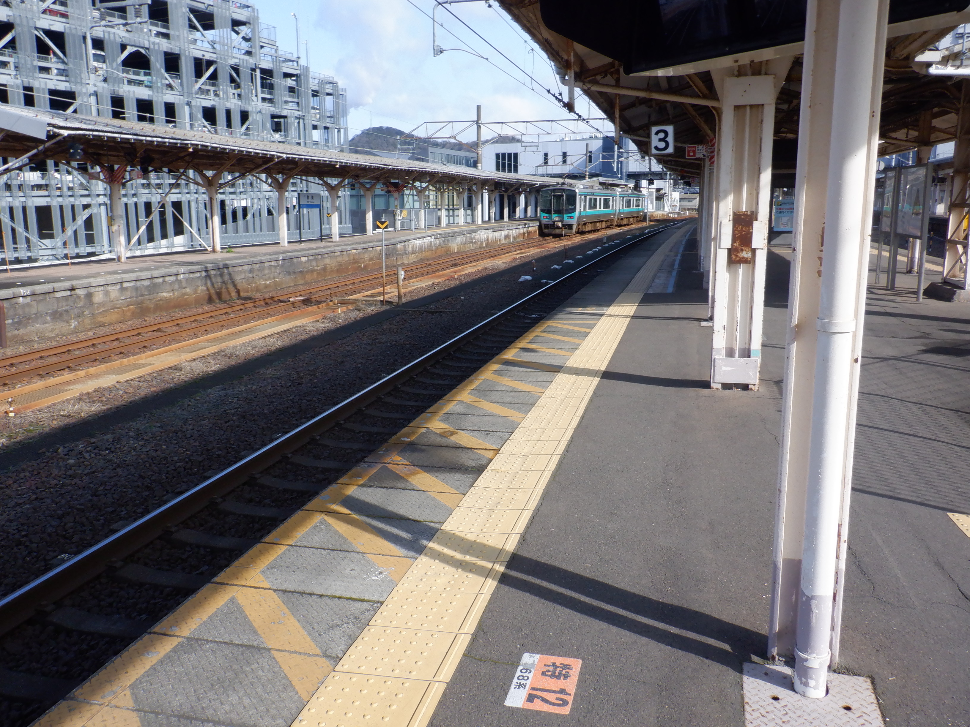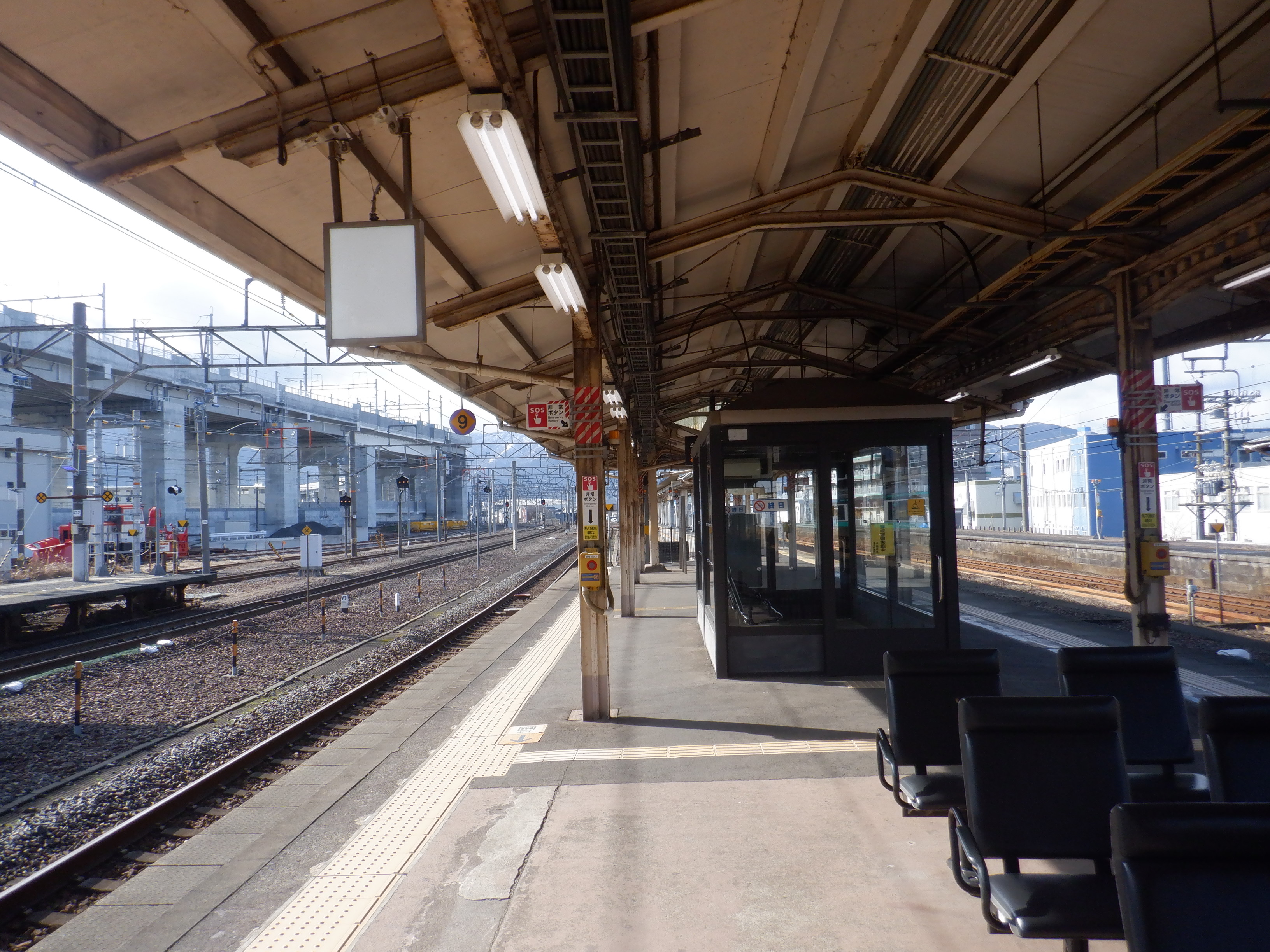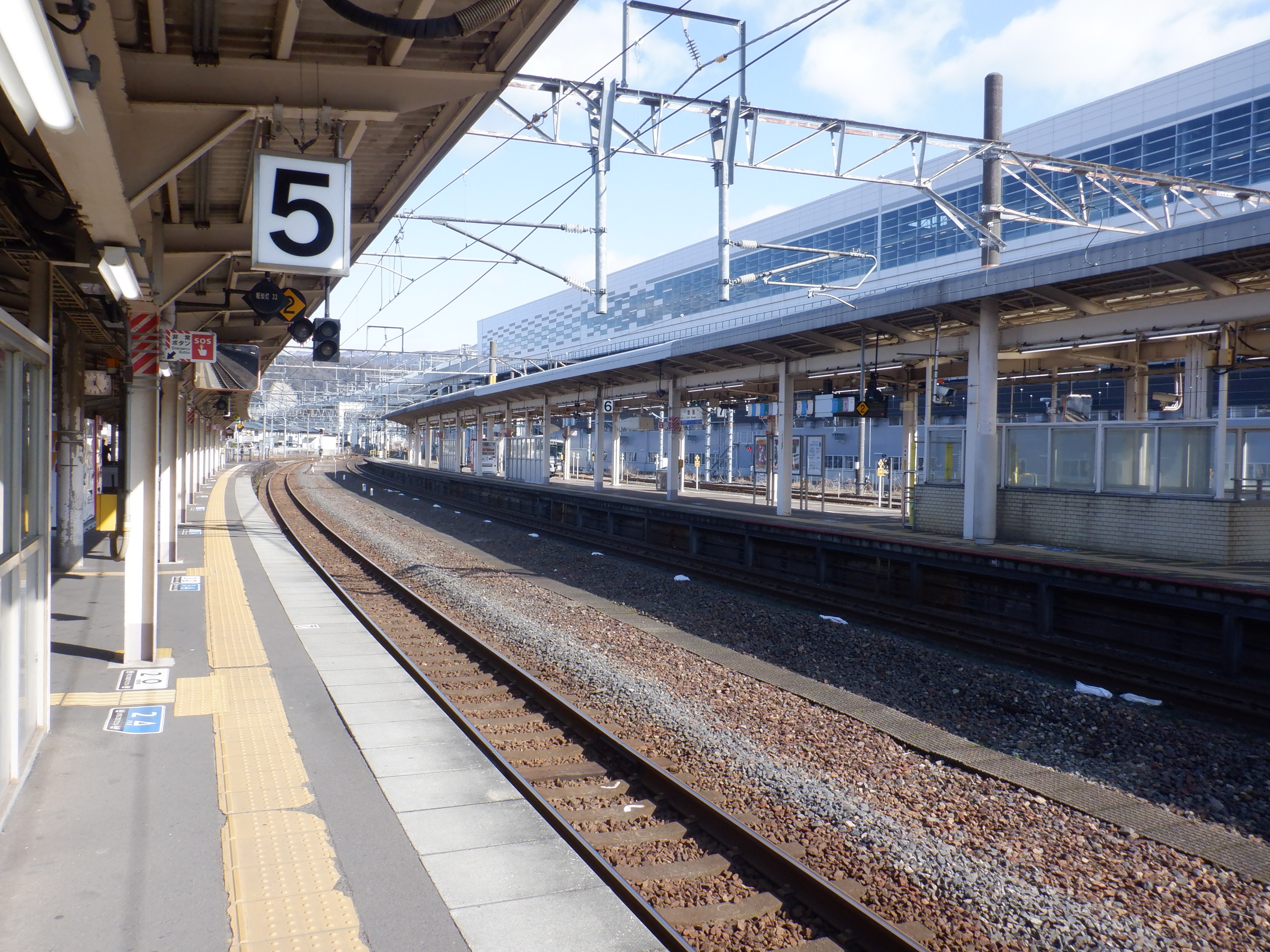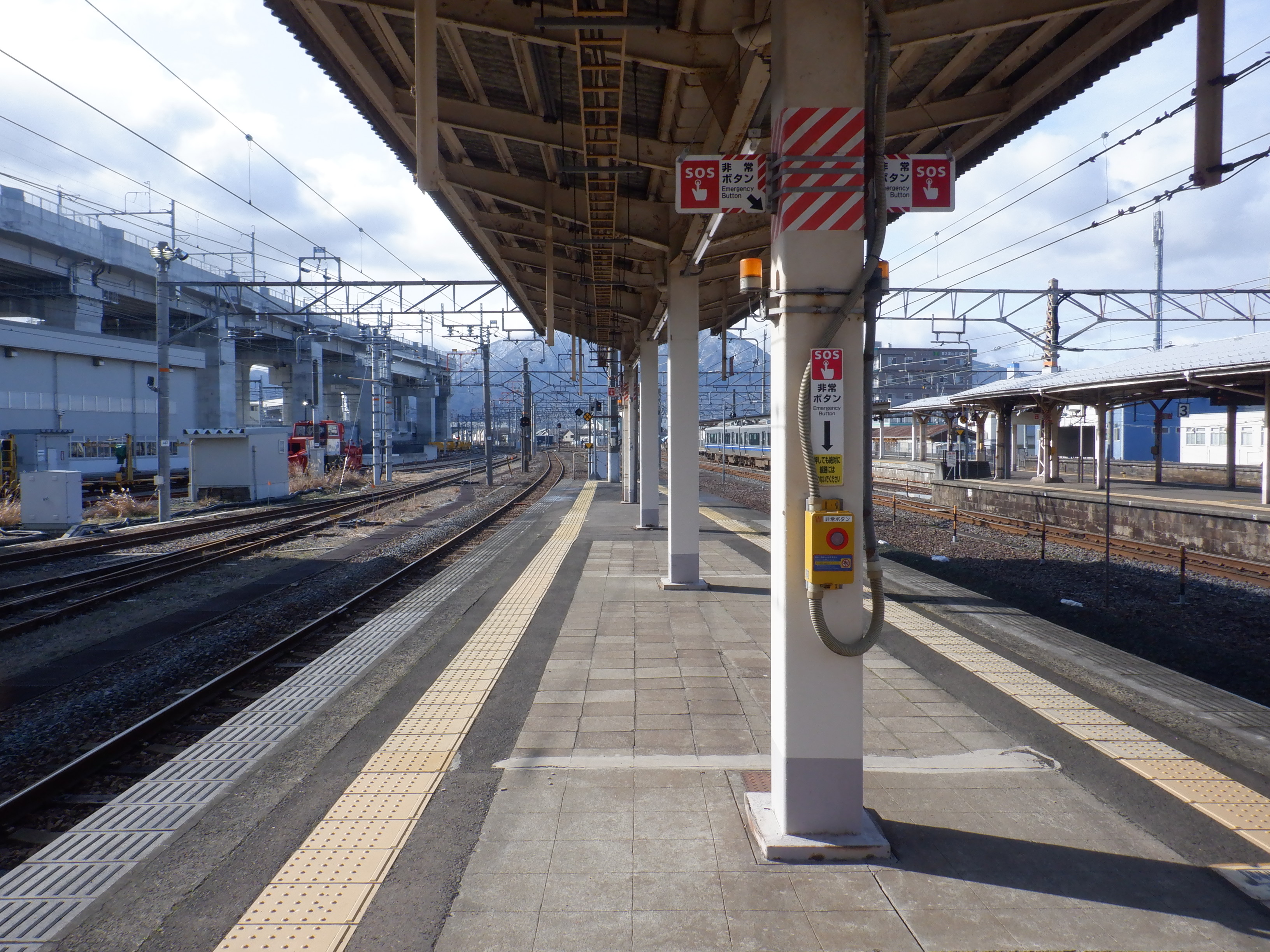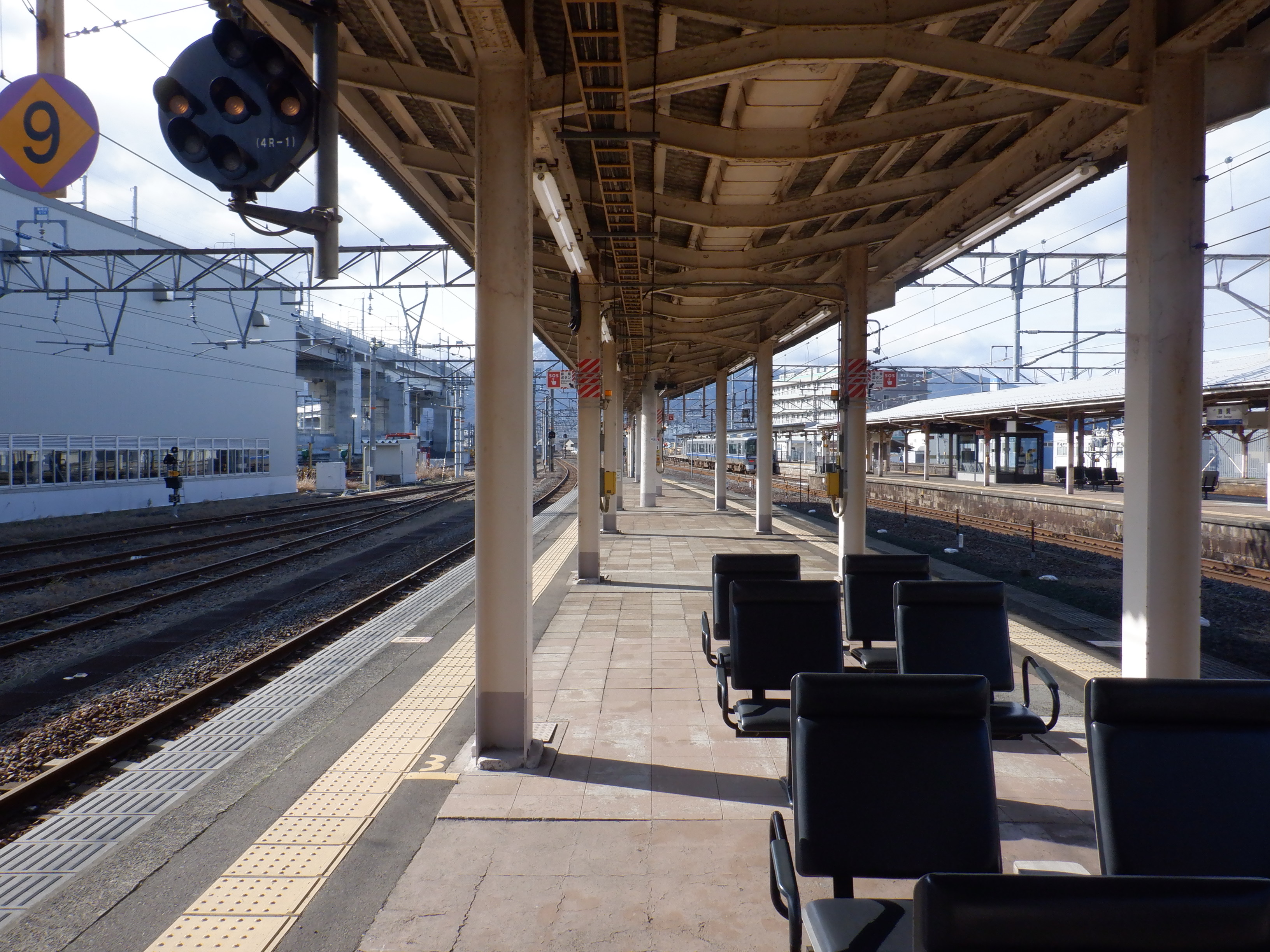4番のりばの様子。駅名標はハピラインロゴなどが貼られていませんでした。