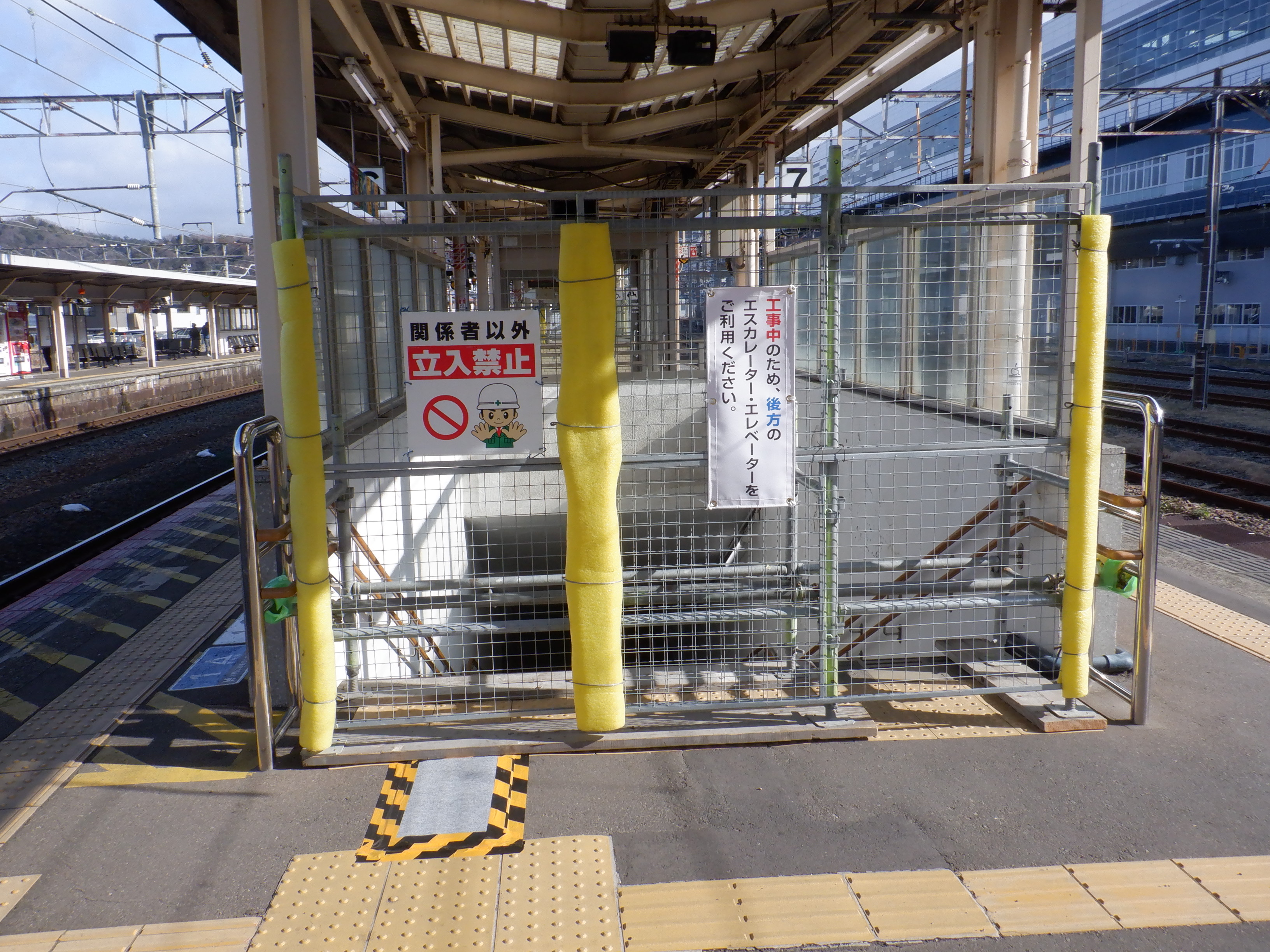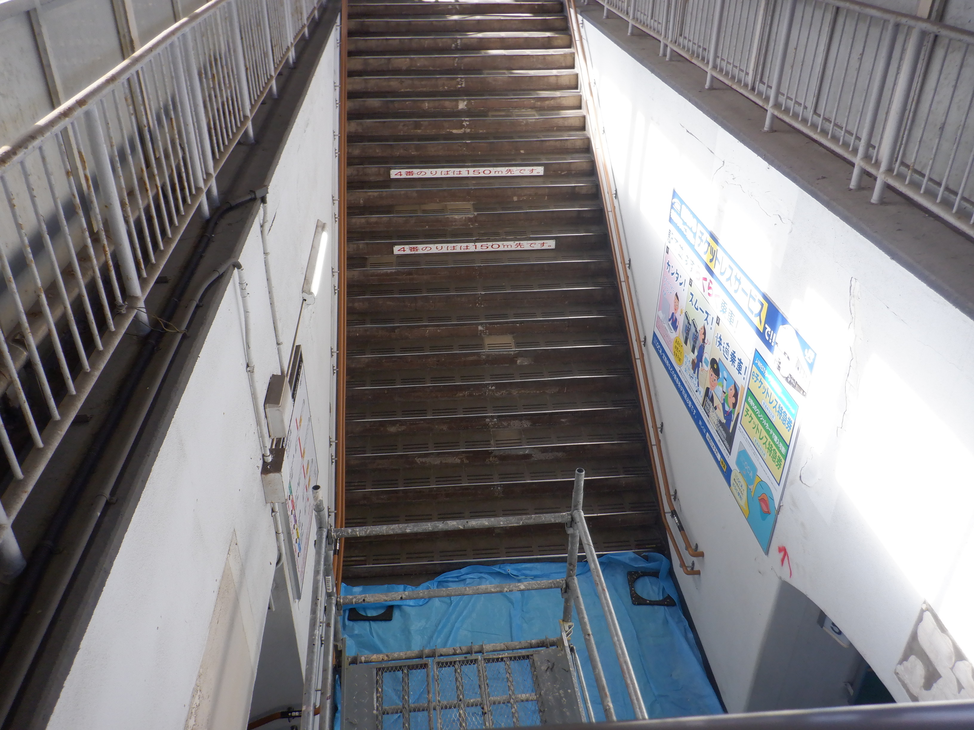 6・7番地下道階段入口。改修工事が始まりました。