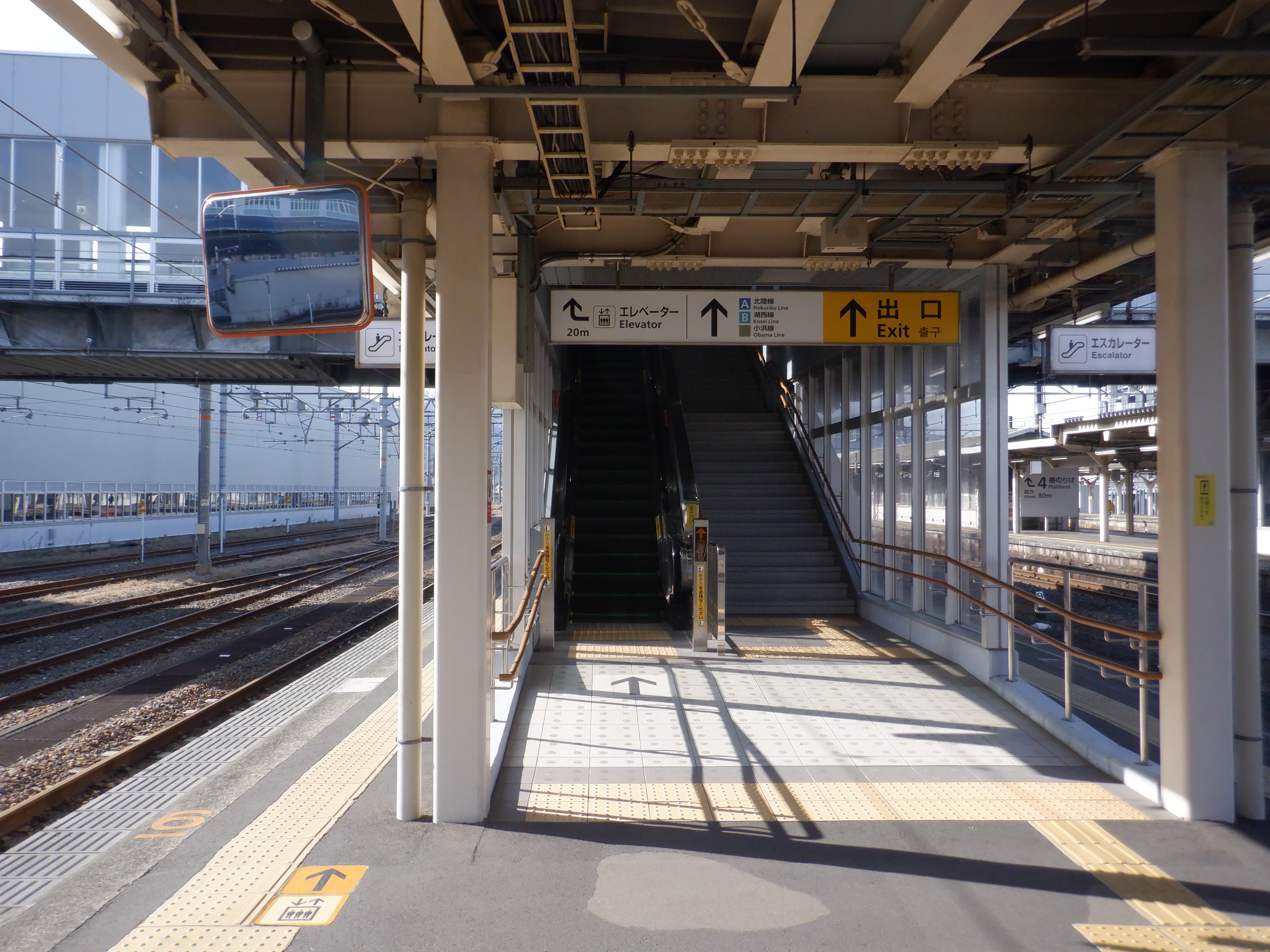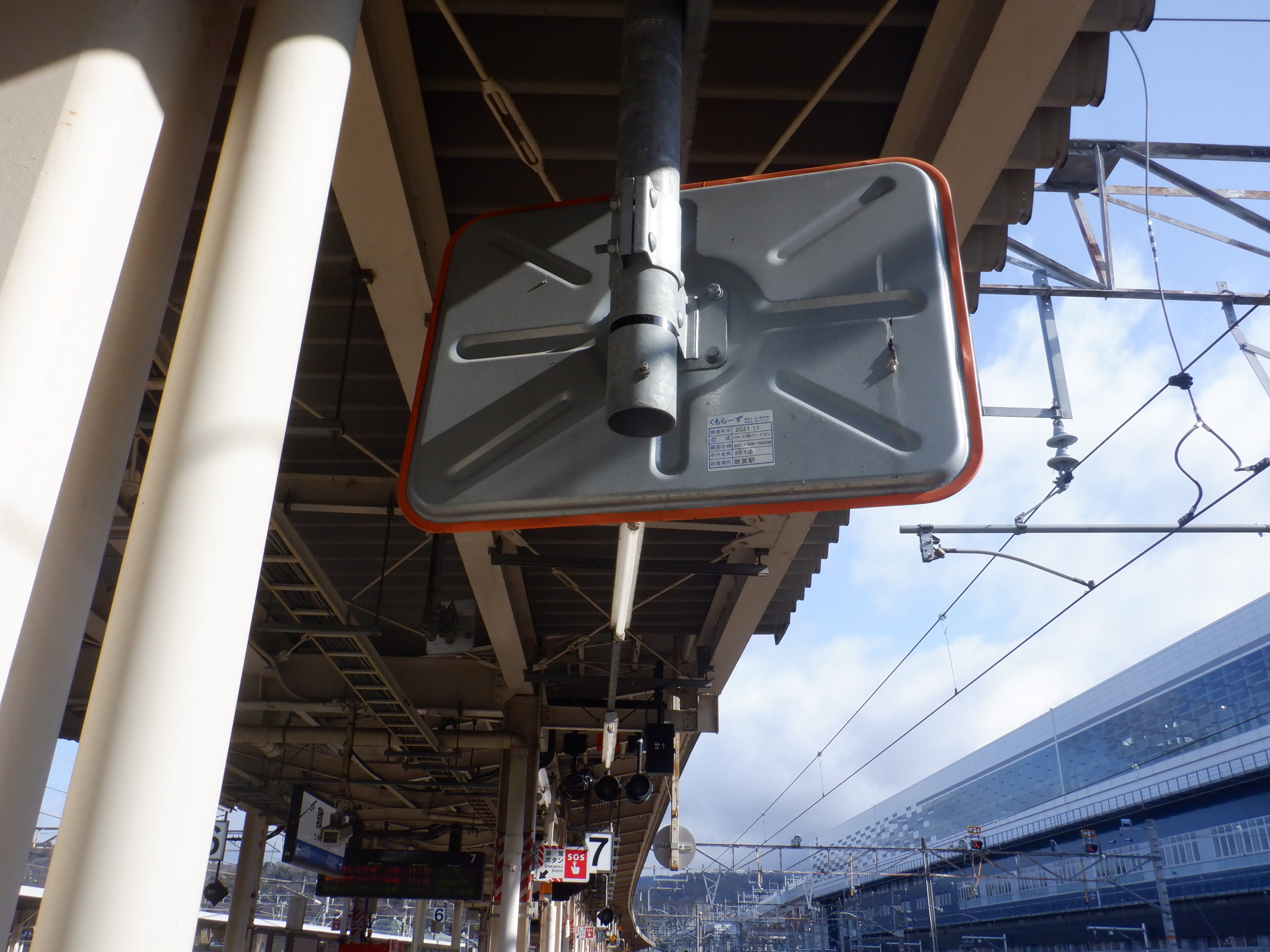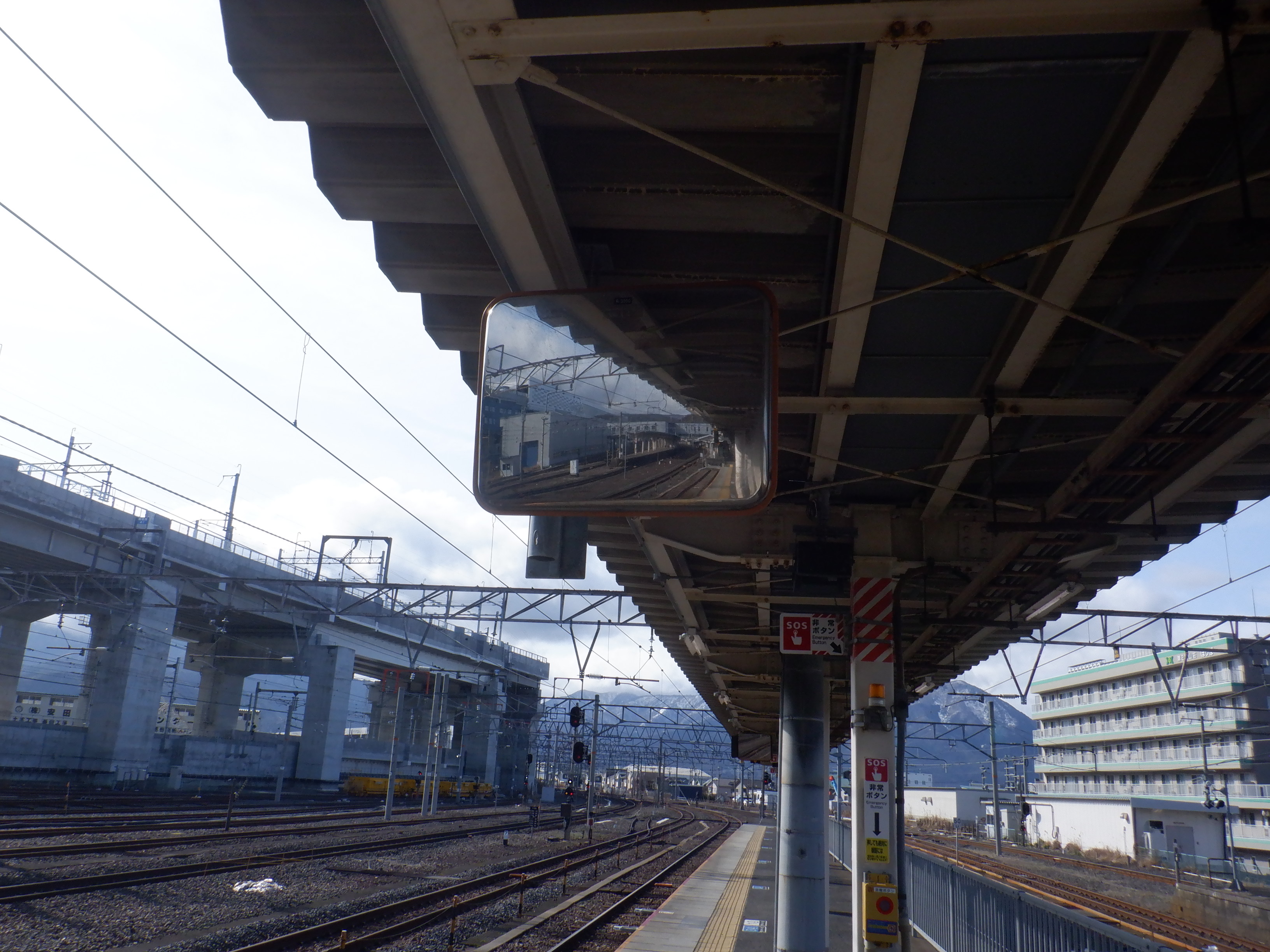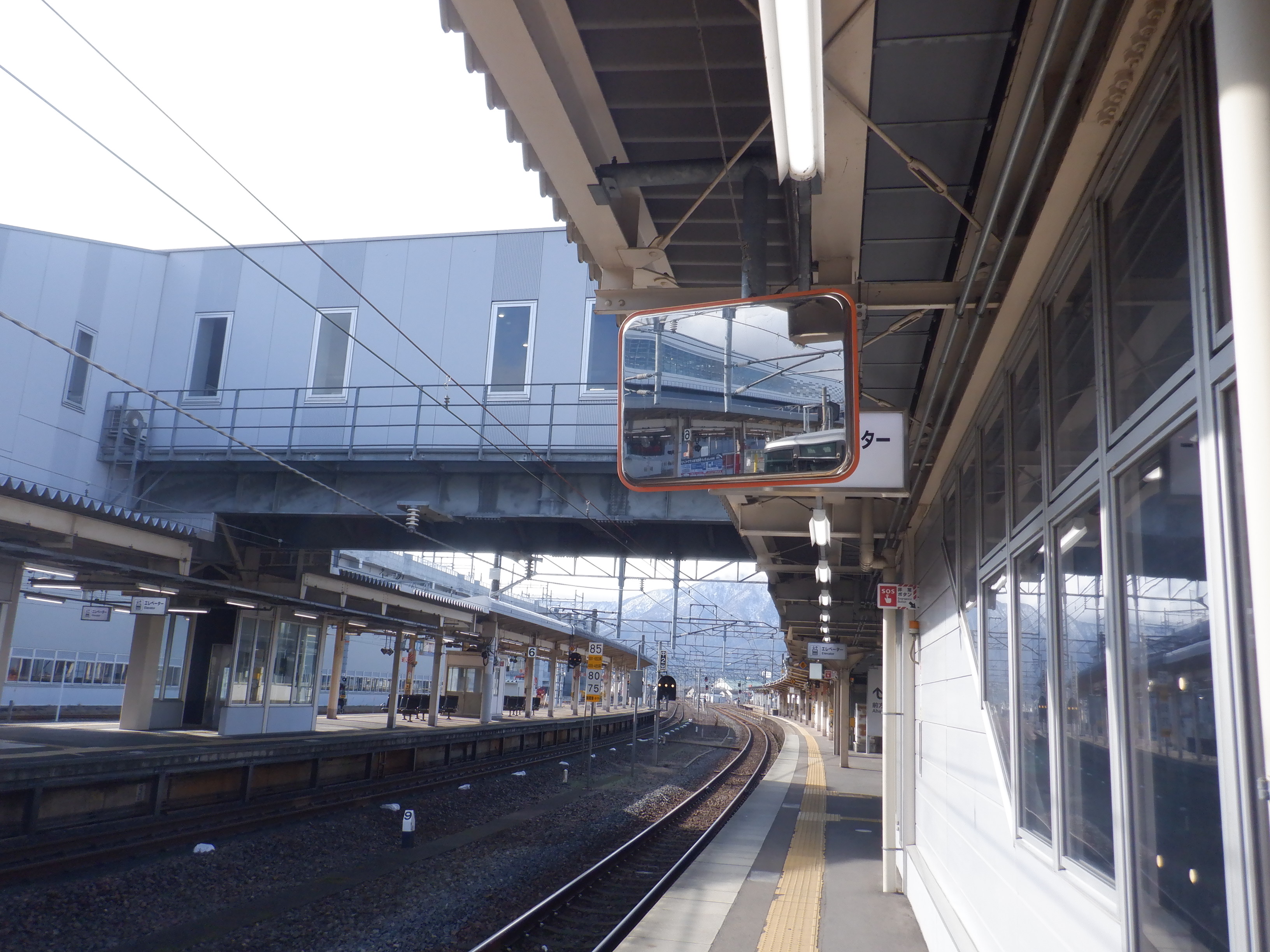 4番のりばの新疋田駅側のワンマンミラー。