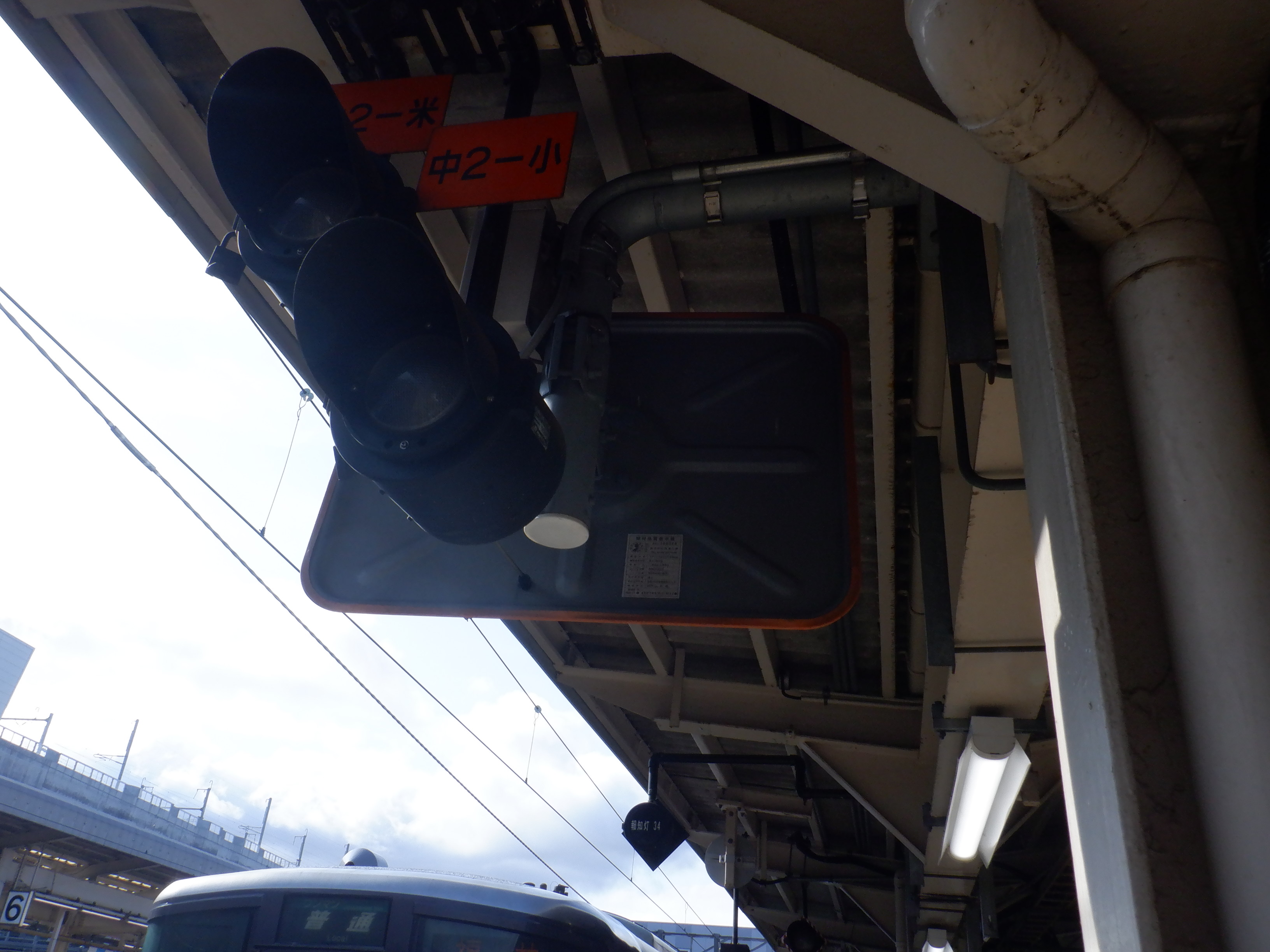 4番のりばから見た1・2番のりばの上屋と駅名標。