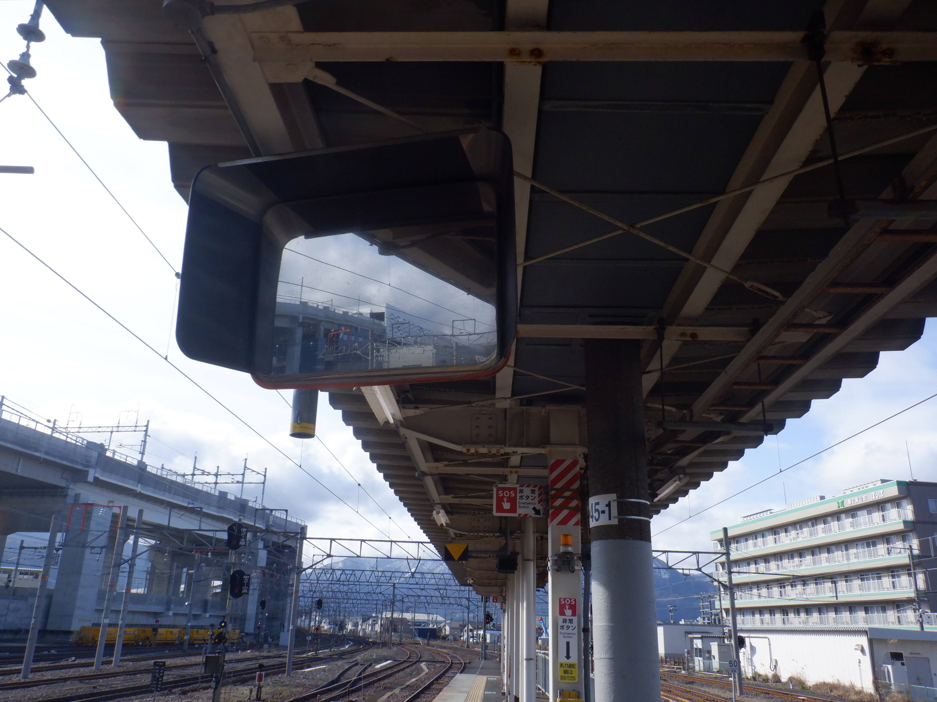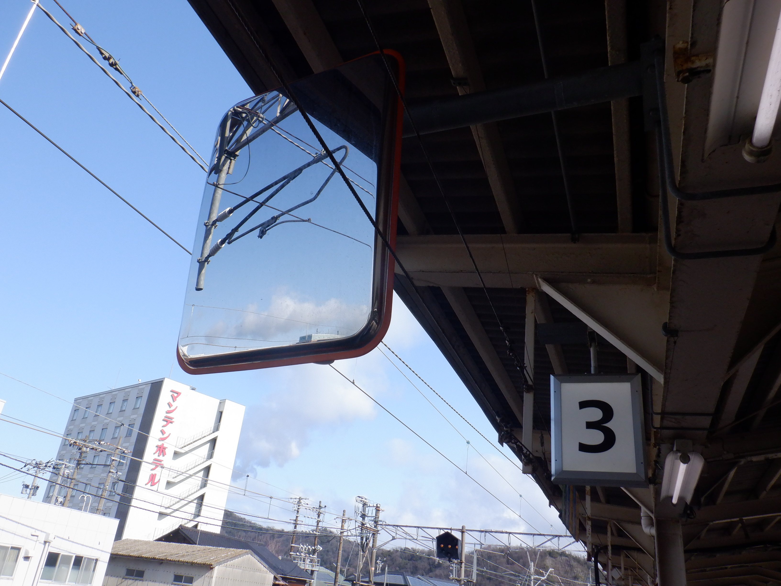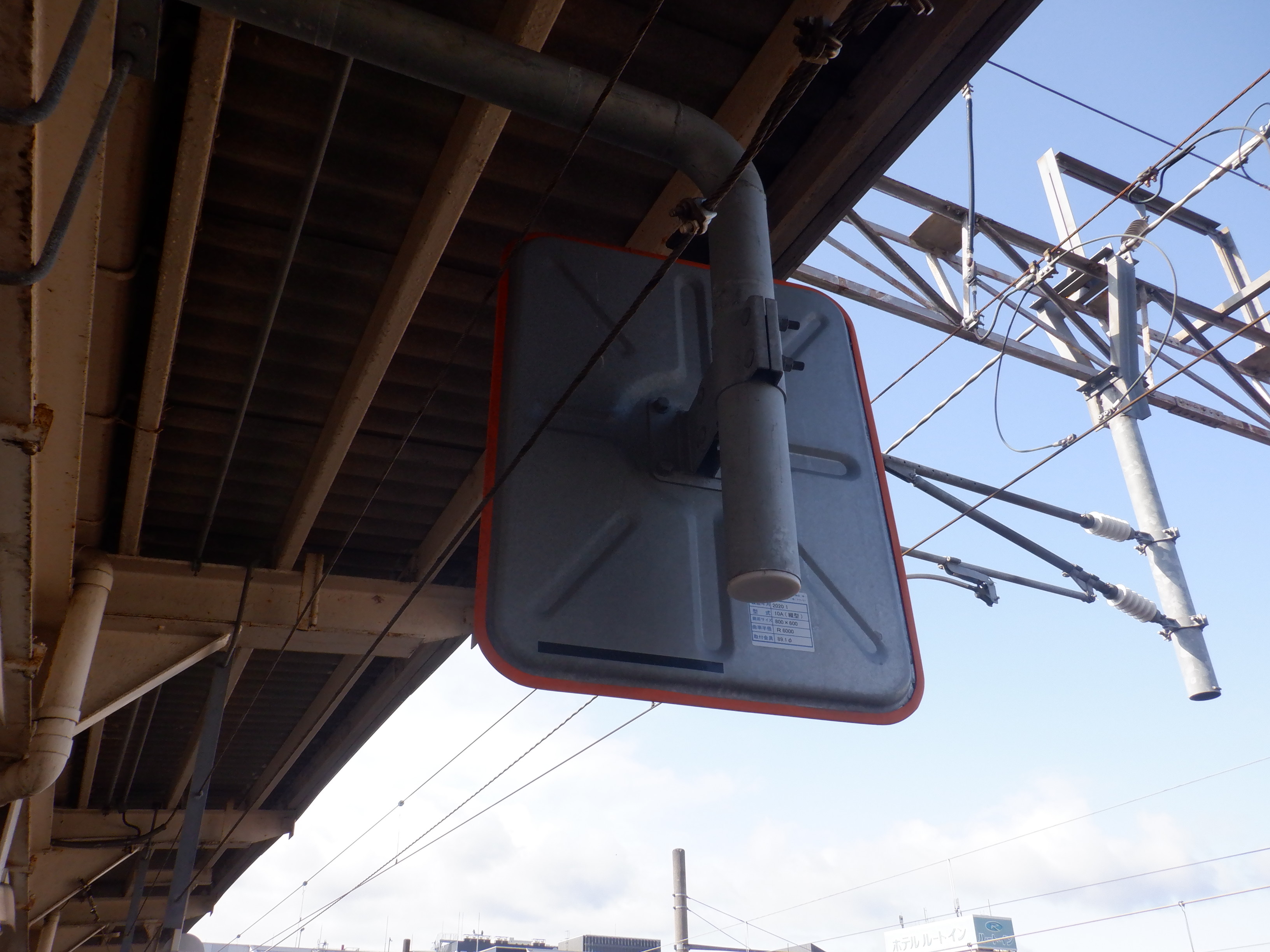 4番のりばの跨線橋に近い側のワンマンミラー。