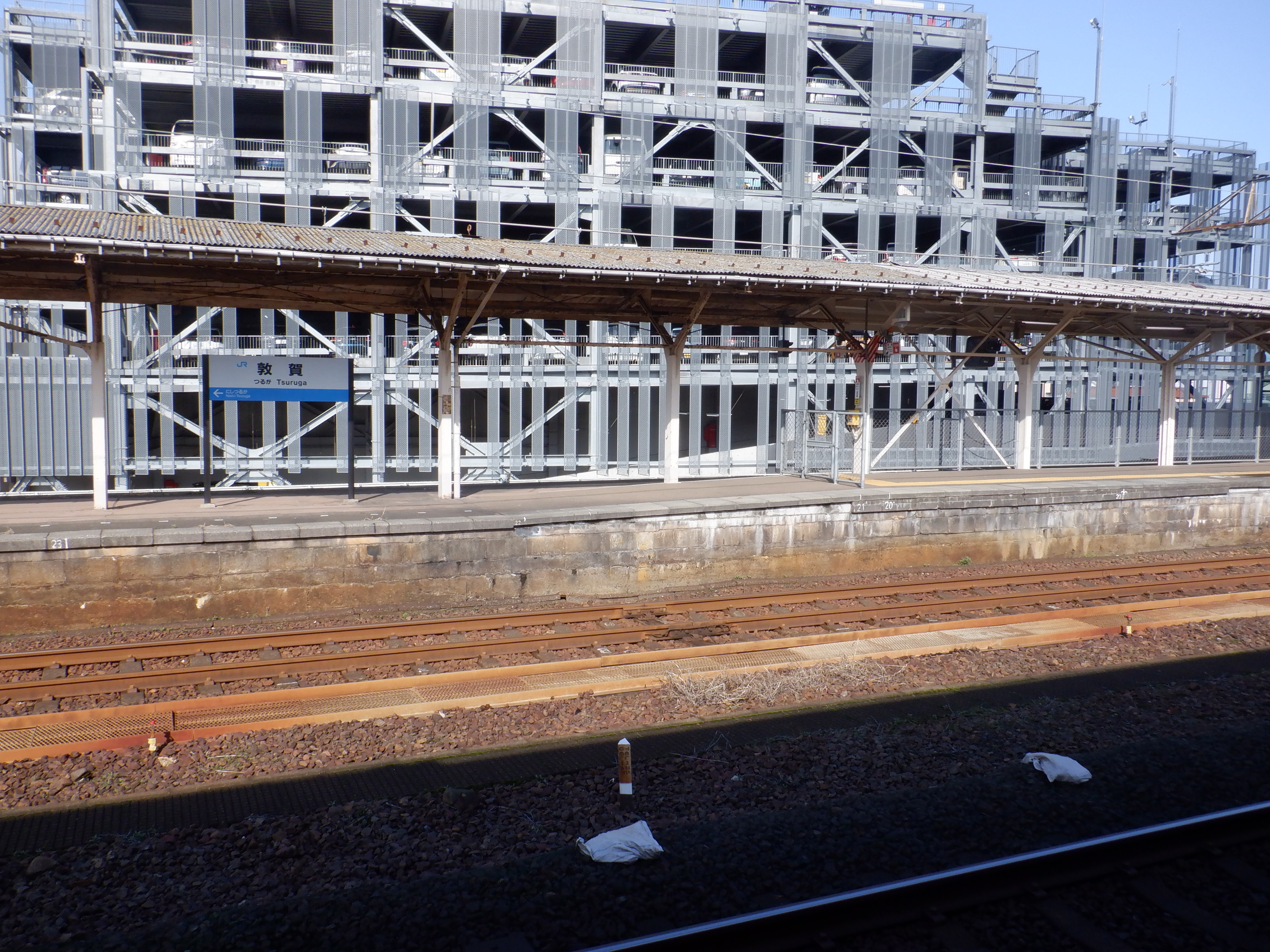 線路沿いに出てきて敦賀駅の方向。