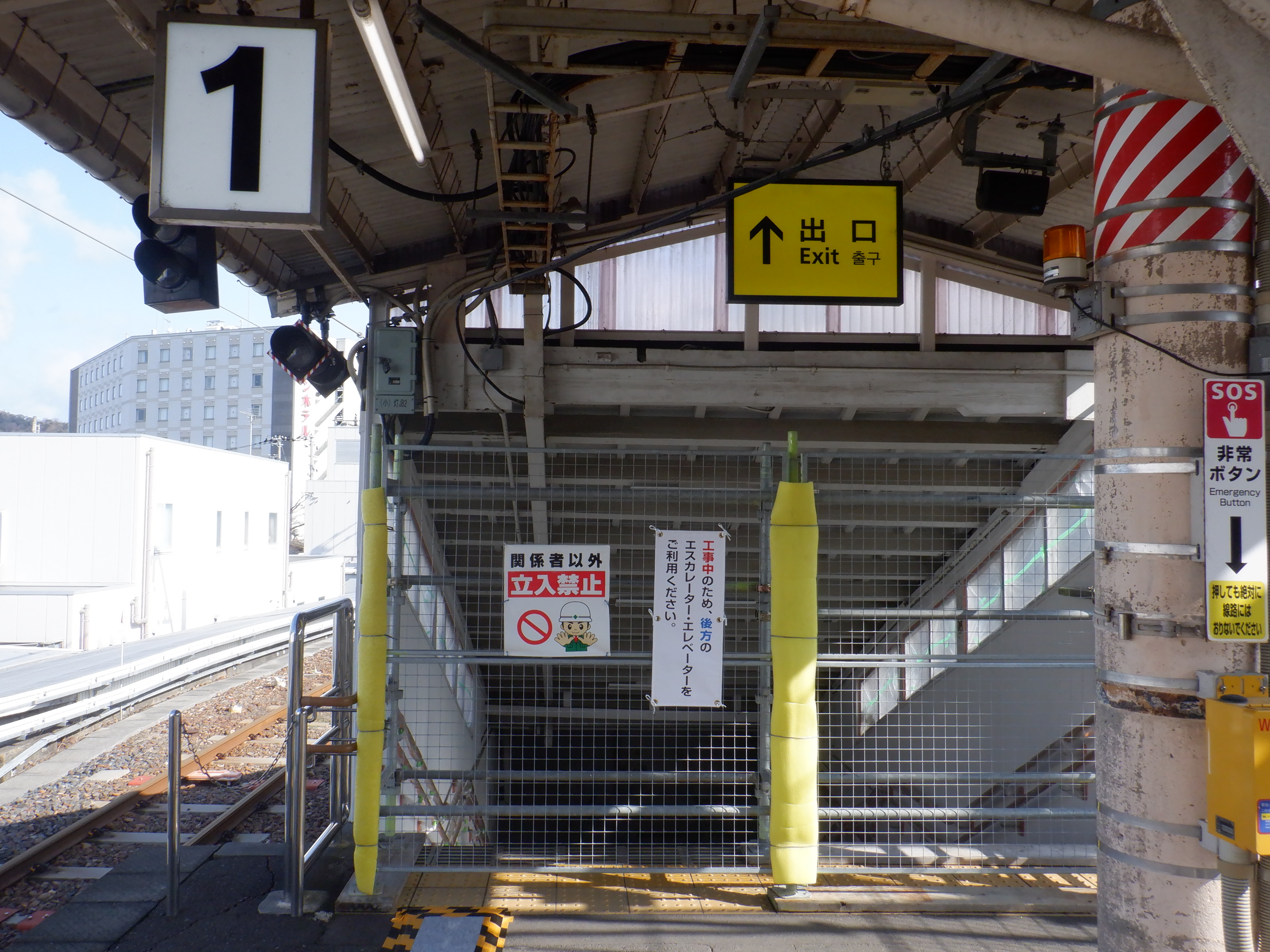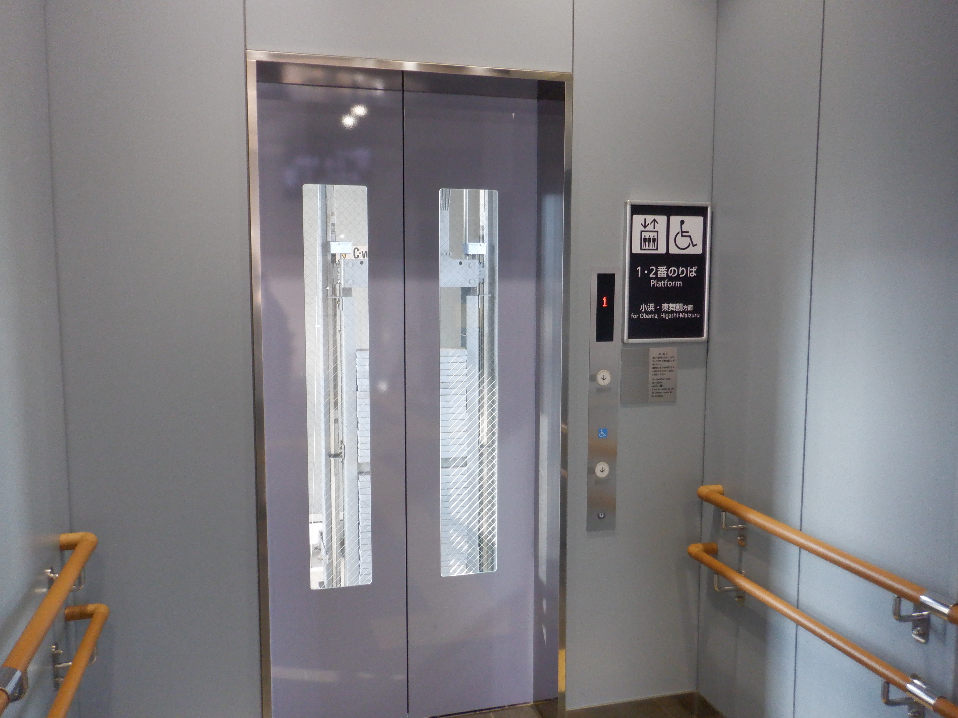 1・2番のりばの跨線橋側エレベーター入口。
