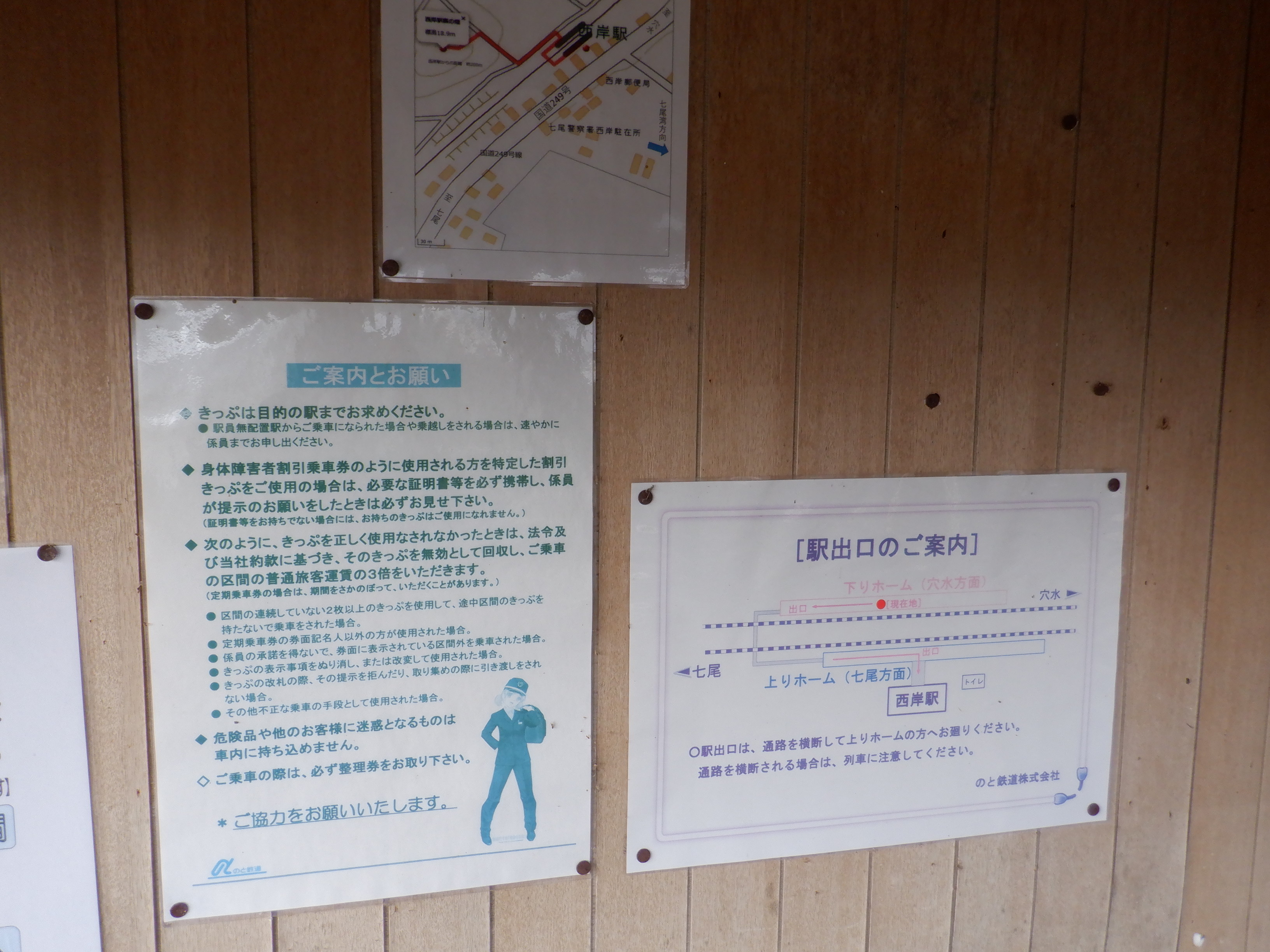 西岸駅の2023年・2024年の様子で、奇しくも能登半島地震前後の様子となってしまいました。2024年8月は震災直後ではなく、少し復旧してからの様子となります。