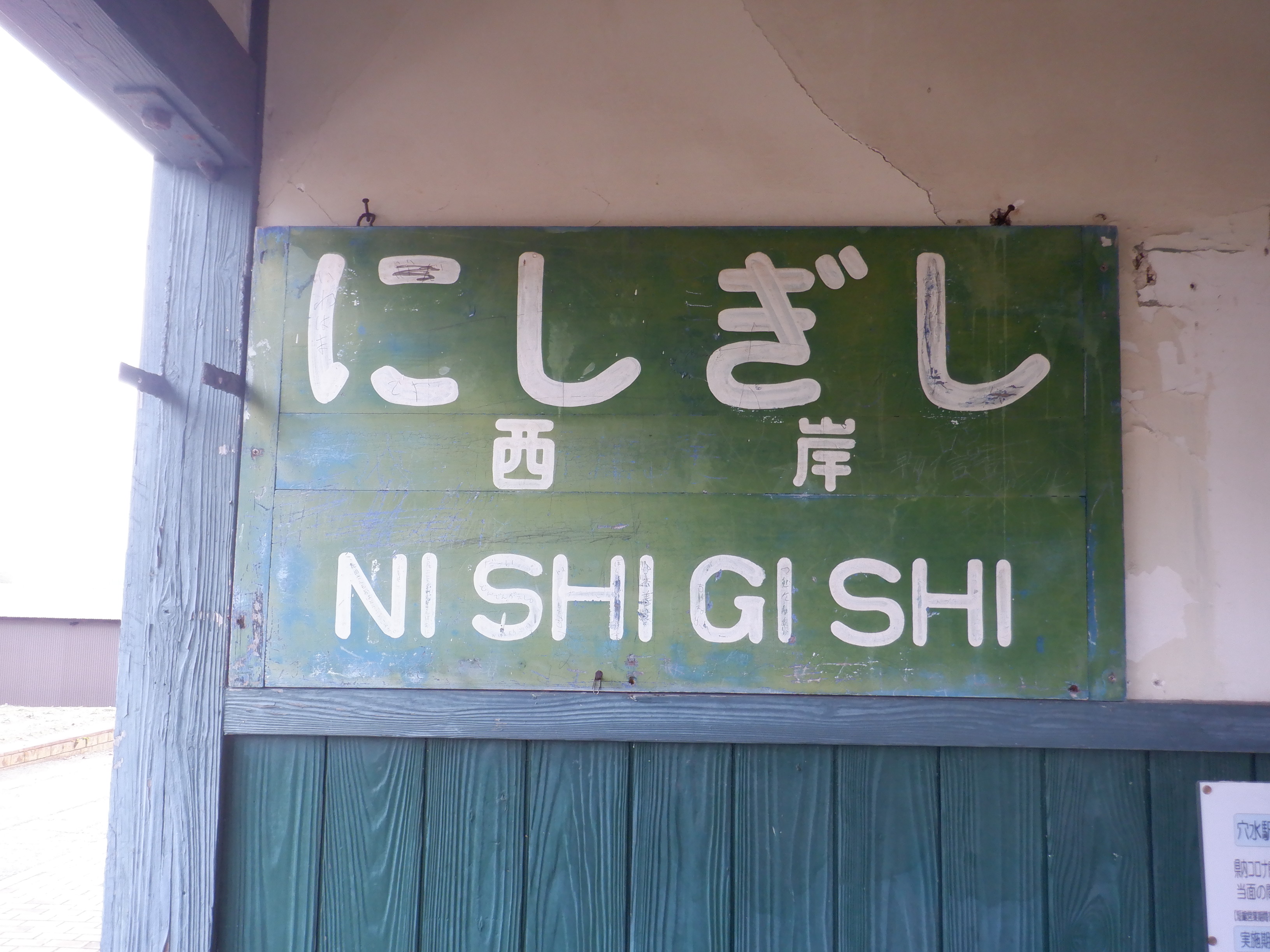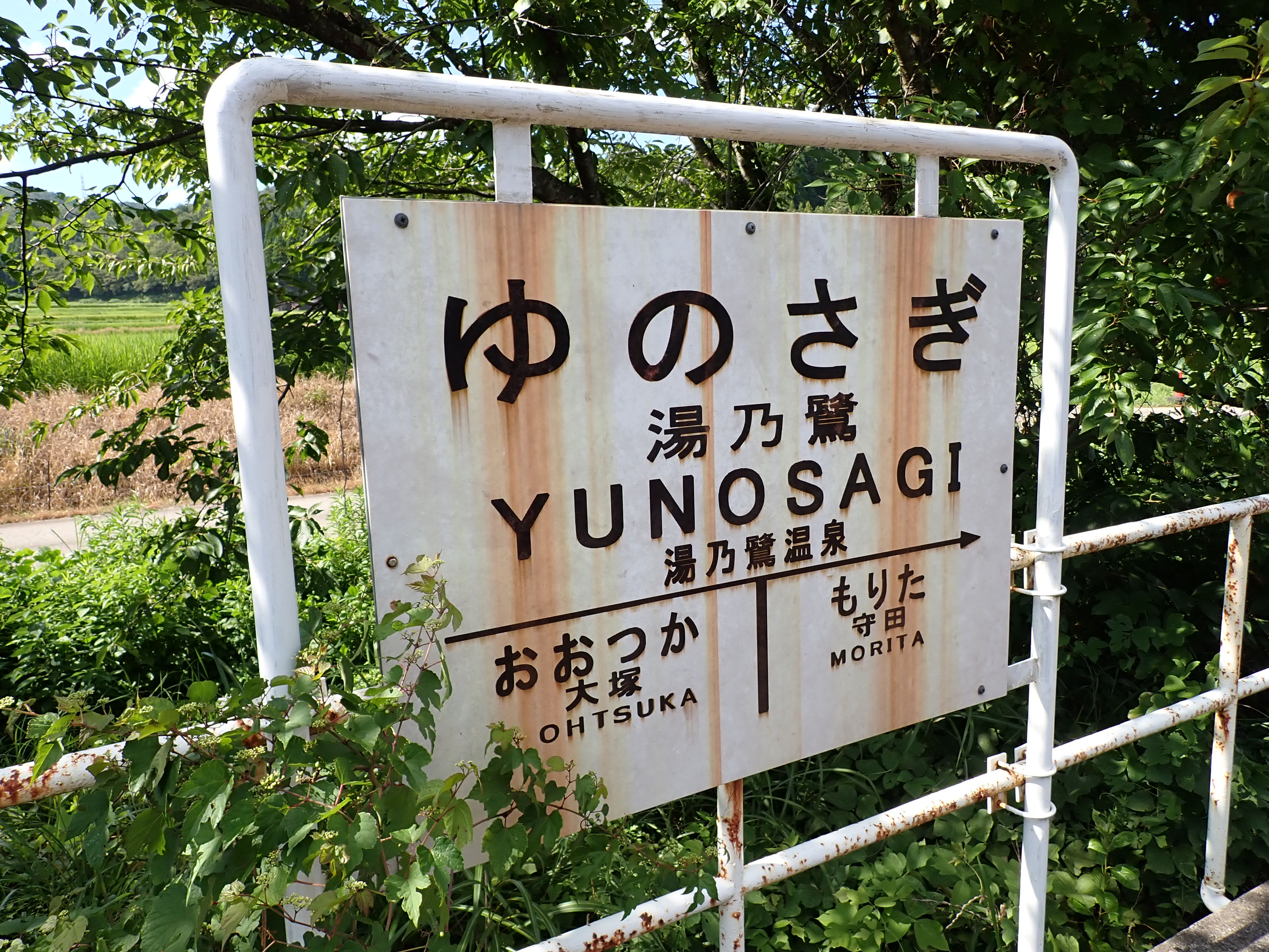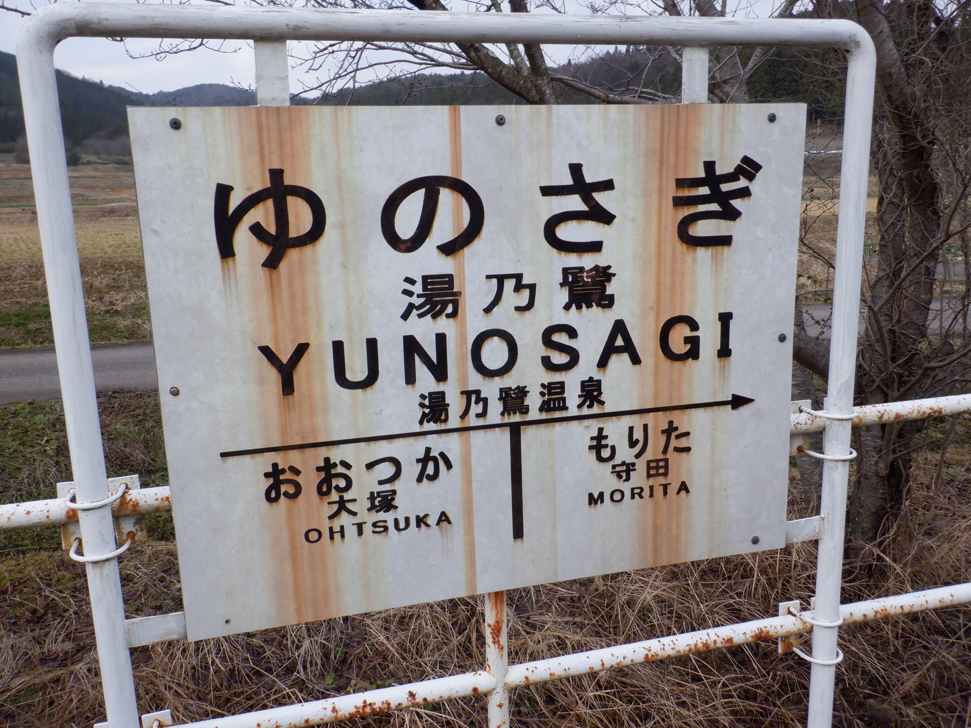 「ゆのさぎ」になっている柱の駅名標は下の方が剥がれて、シール部分が白くなってきています。