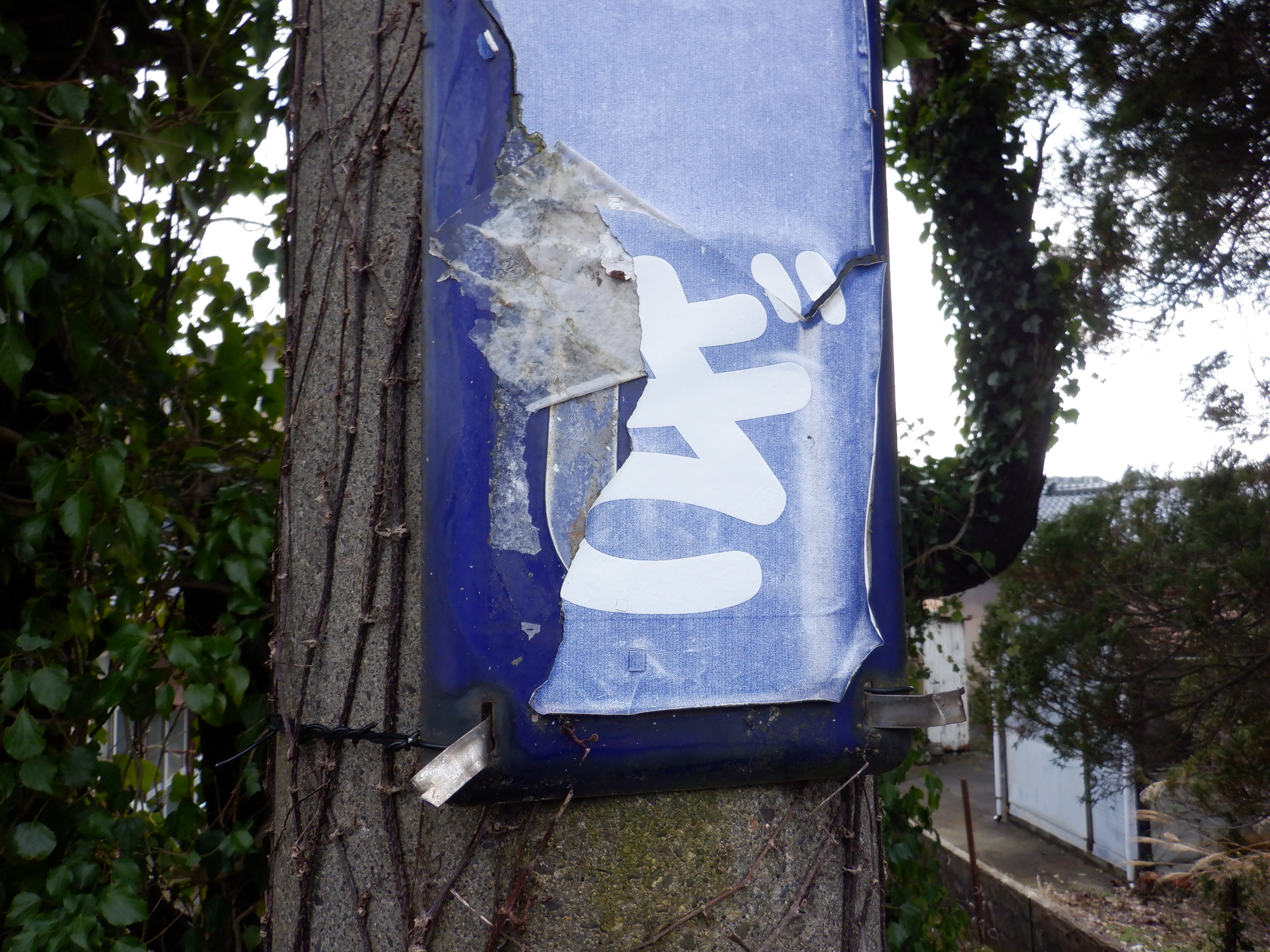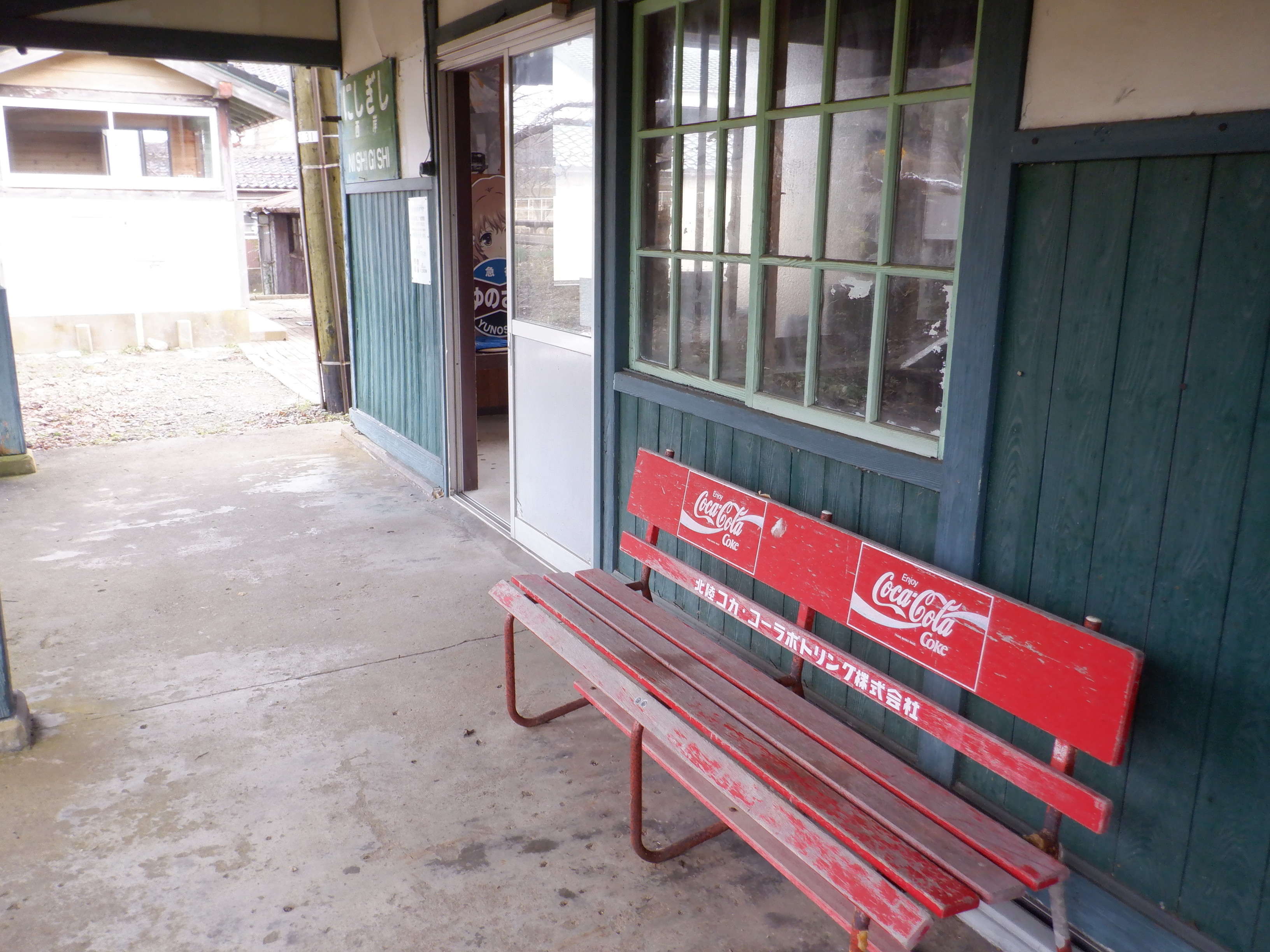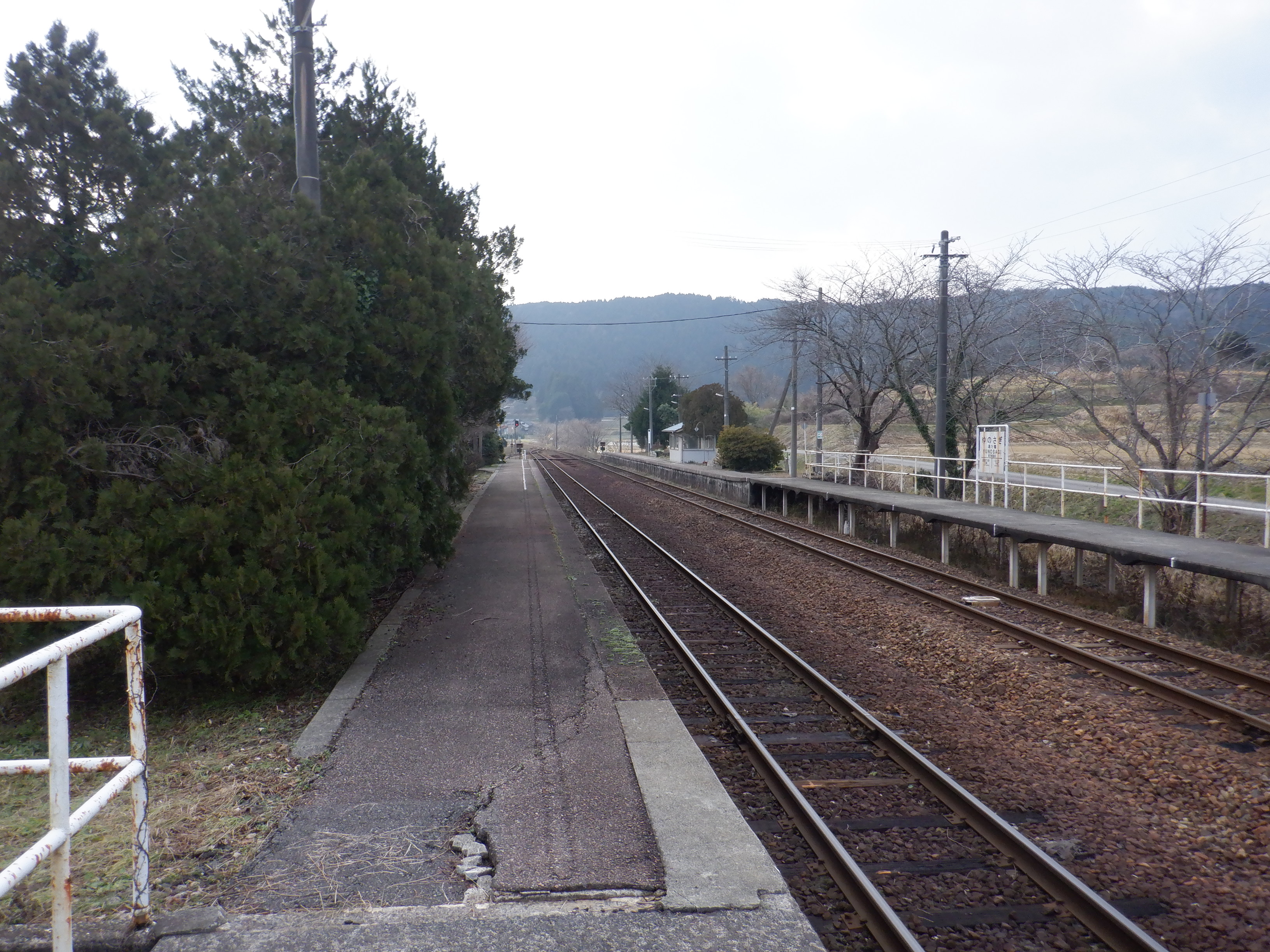 「ゆのさぎ」になっている柱の駅名標は下の方が剥がれて、シール部分が白くなってきています。