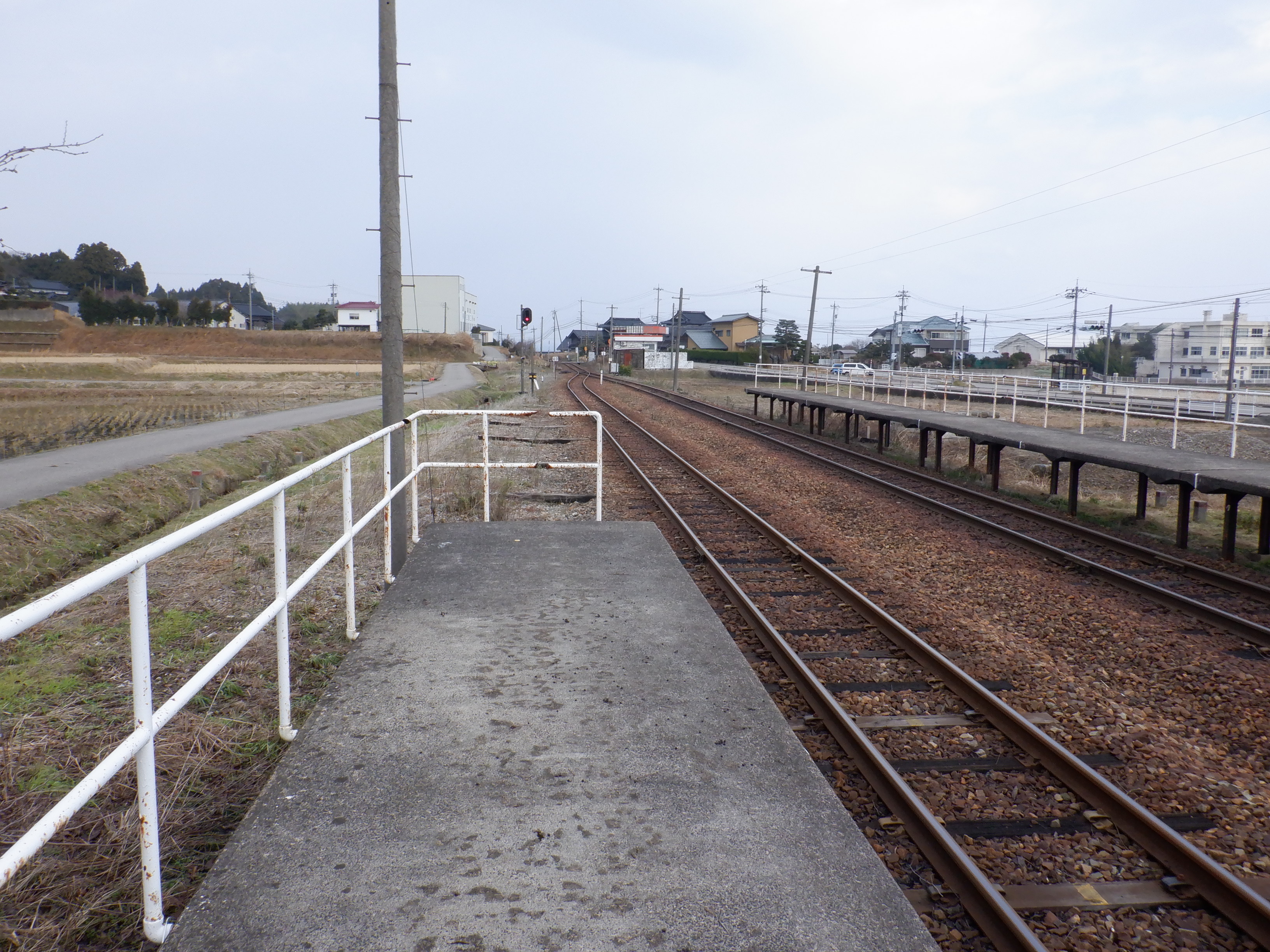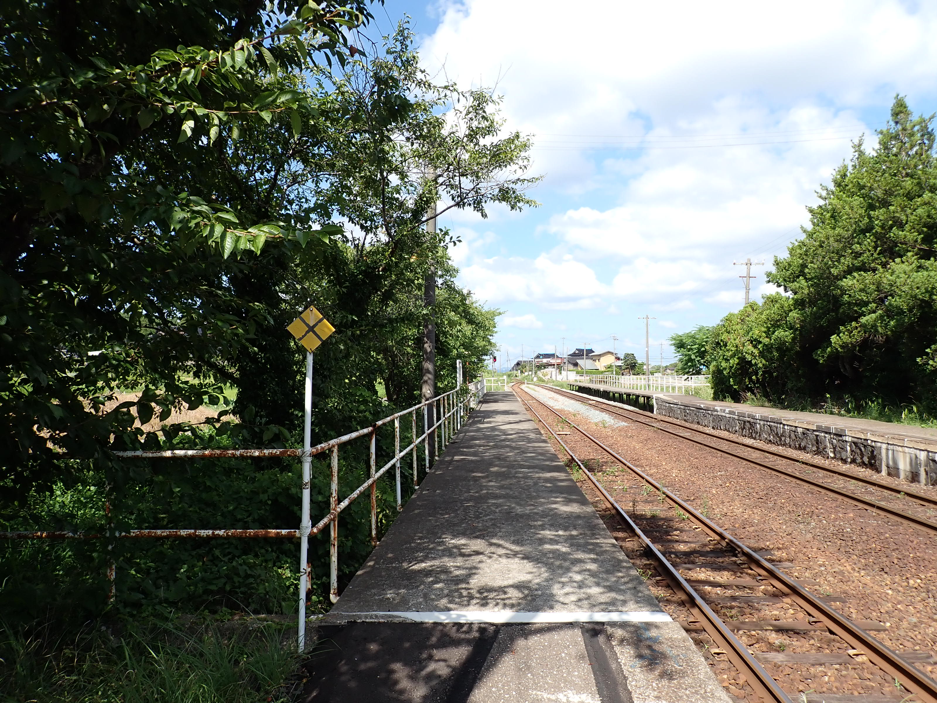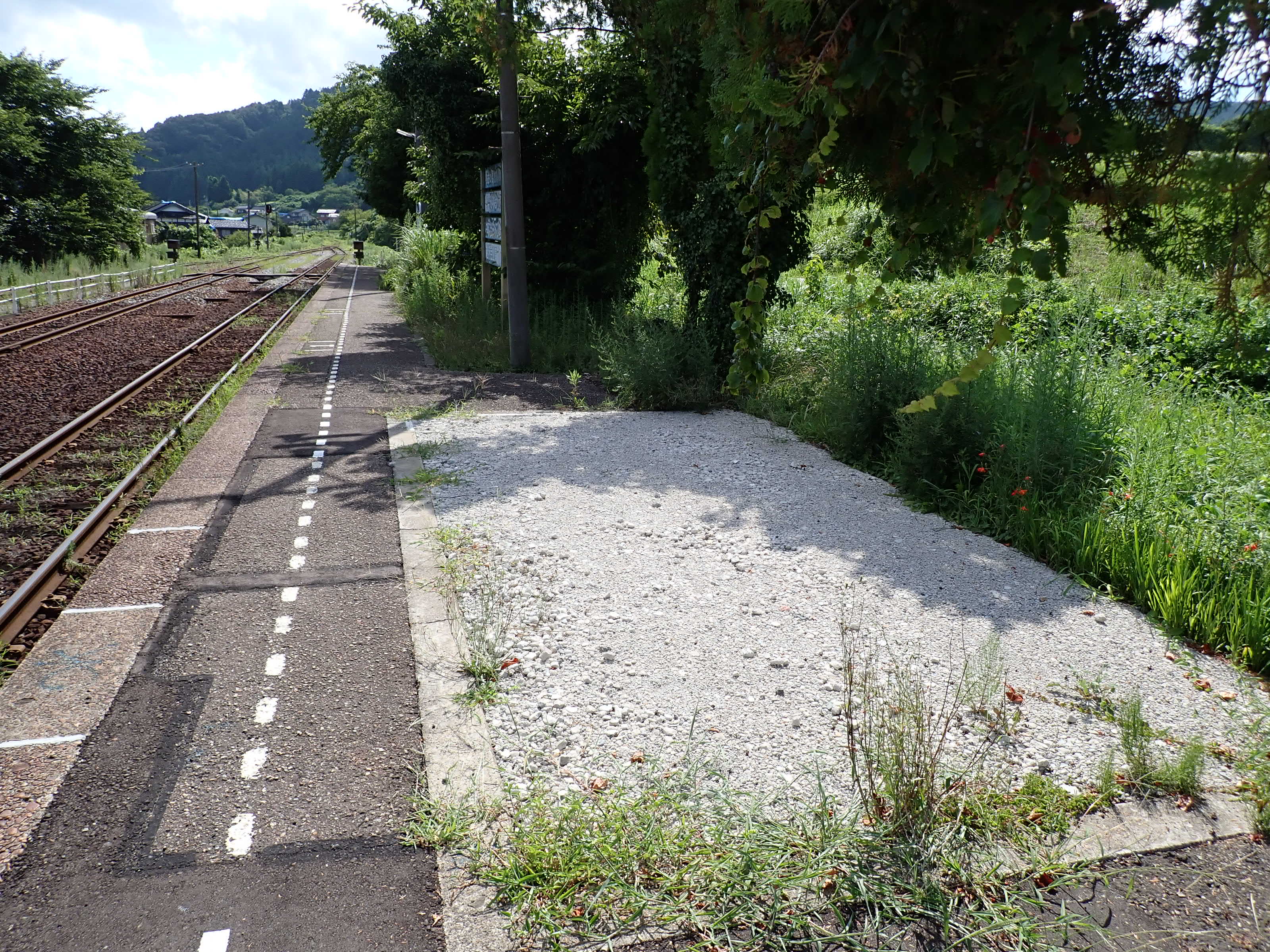 駅舎側のホームから見た反対側のホーム。待合室が撤去されました。