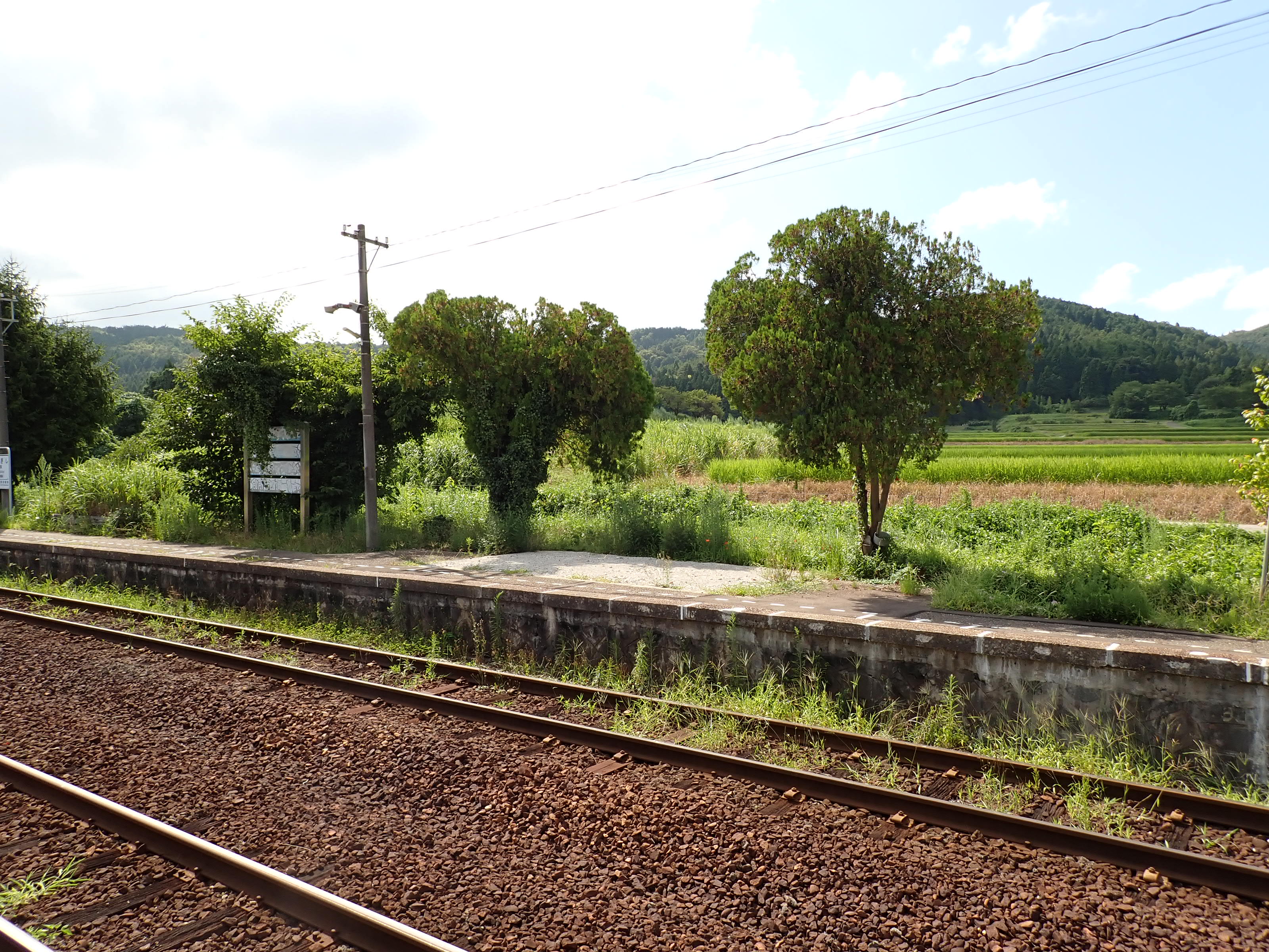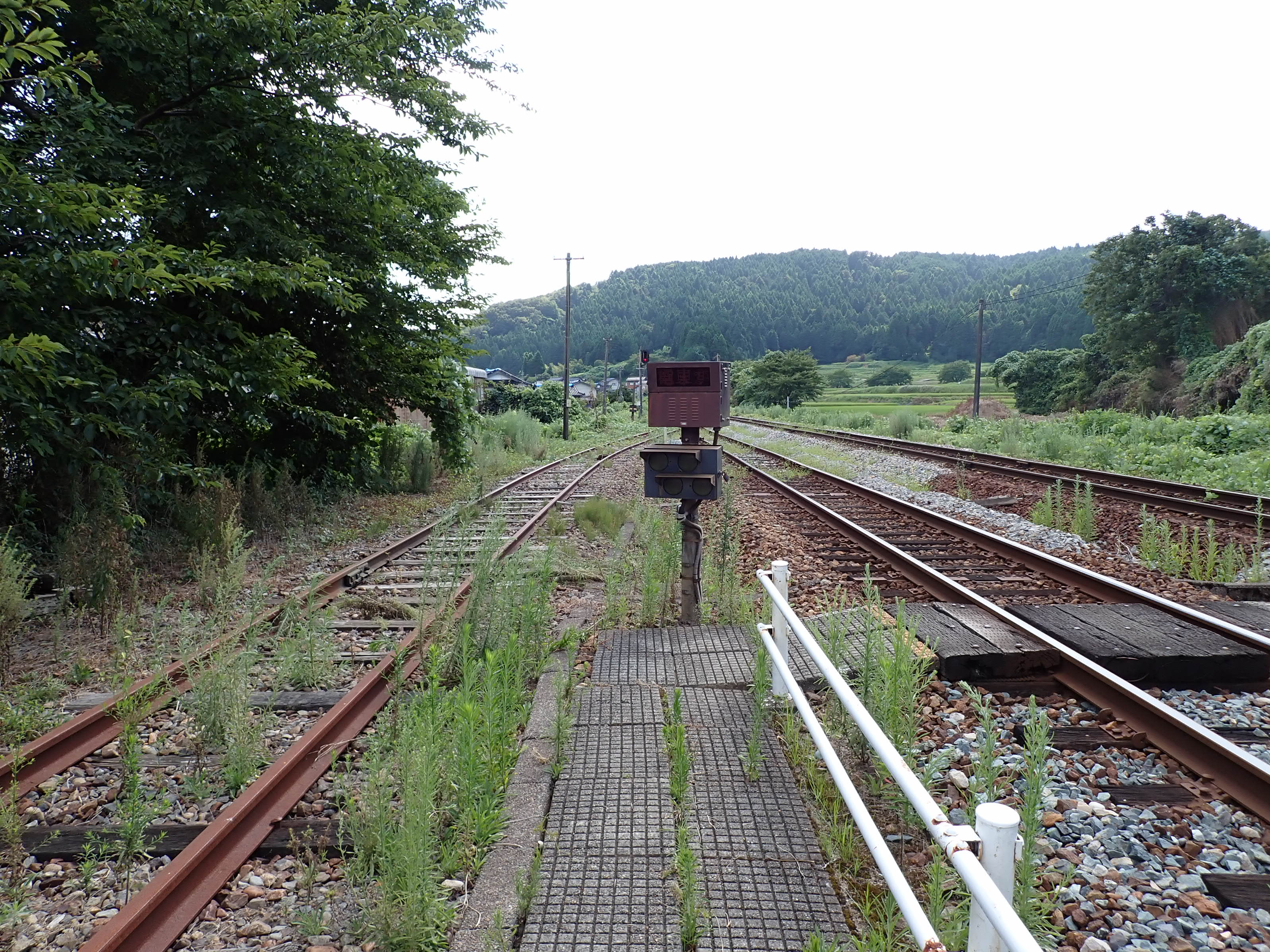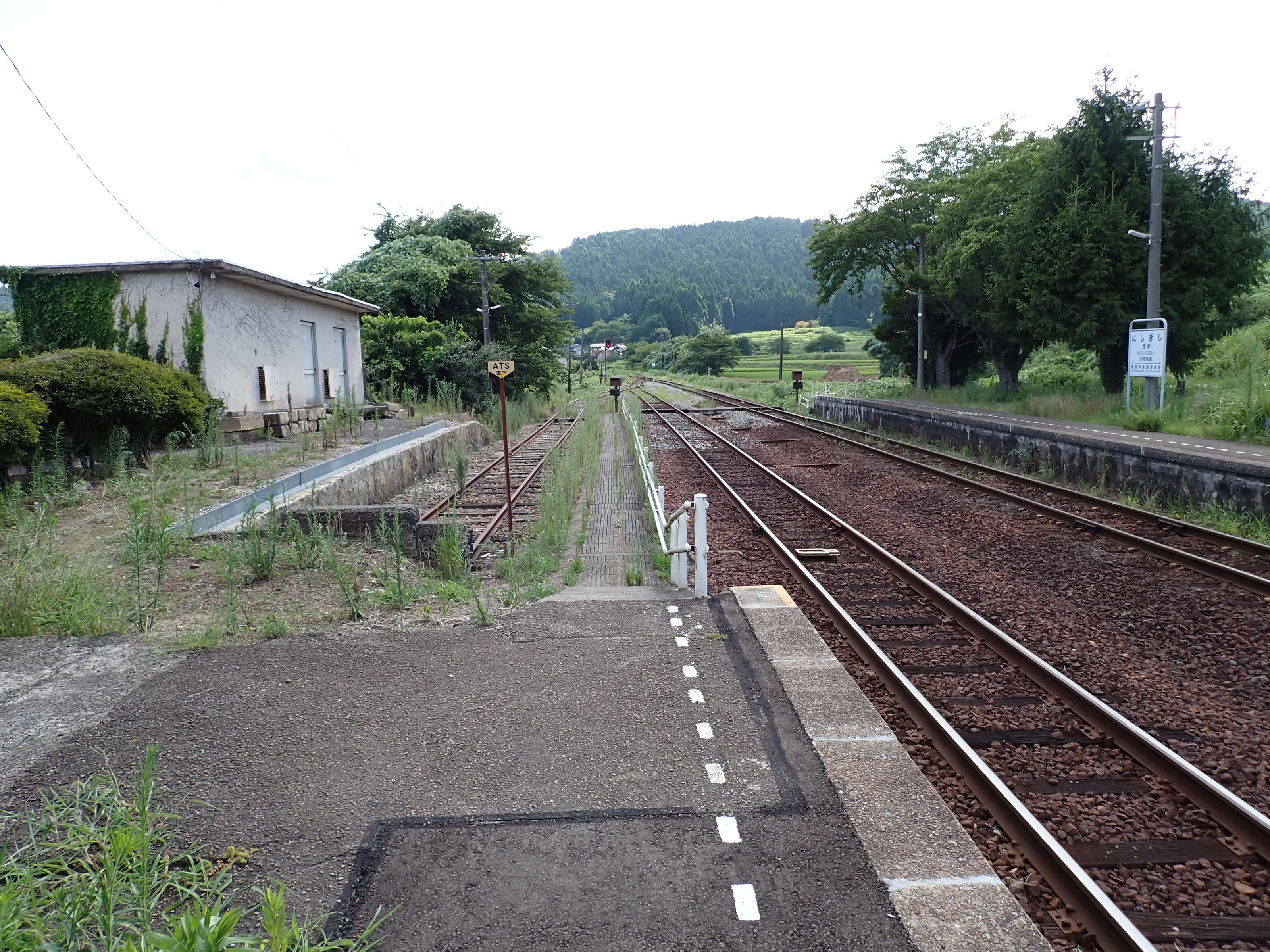 駅舎側のホームから見た反対側のホーム。待合室が撤去されました。