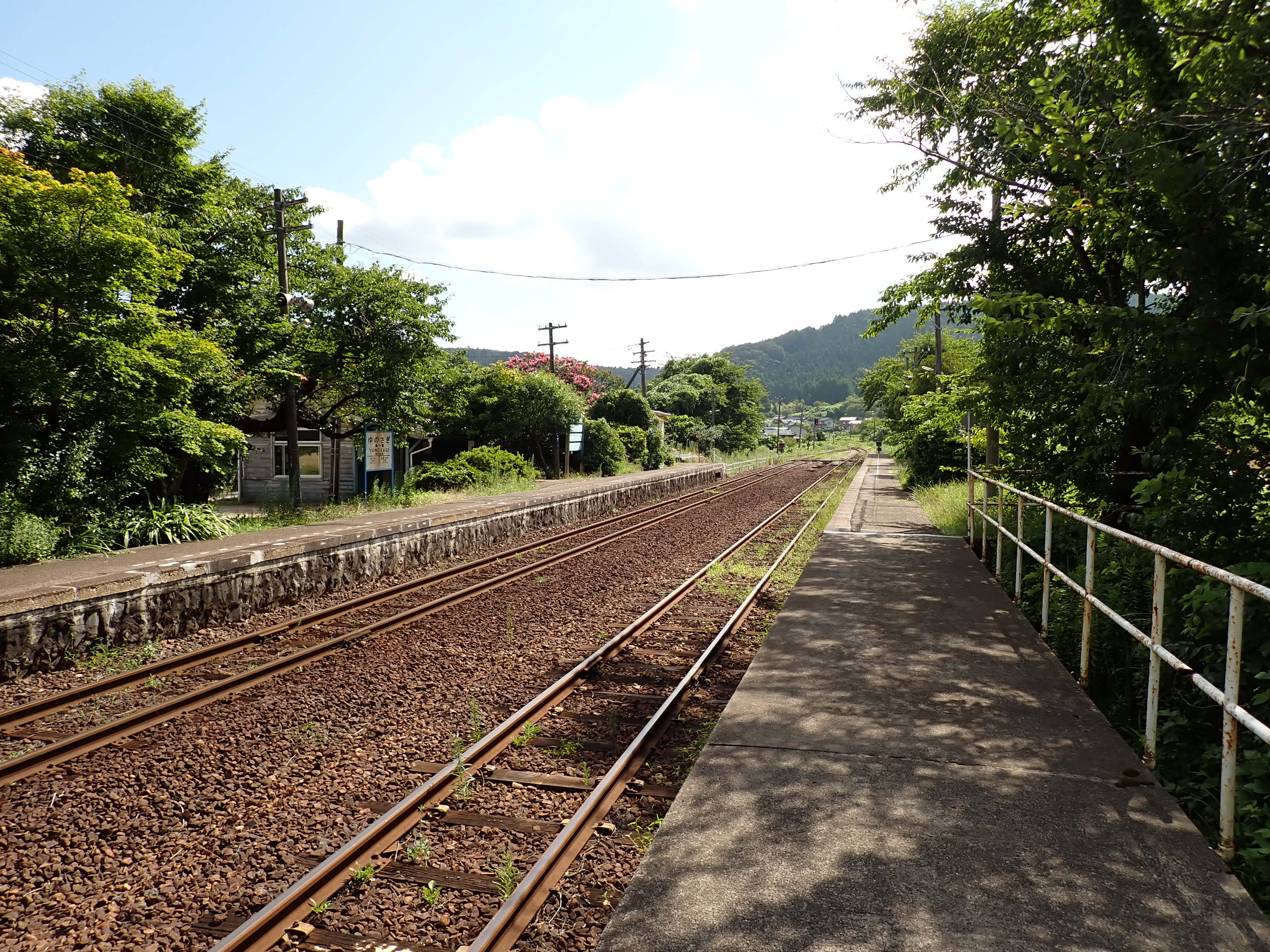 駅舎と反対側のホームから見た駅舎付近。