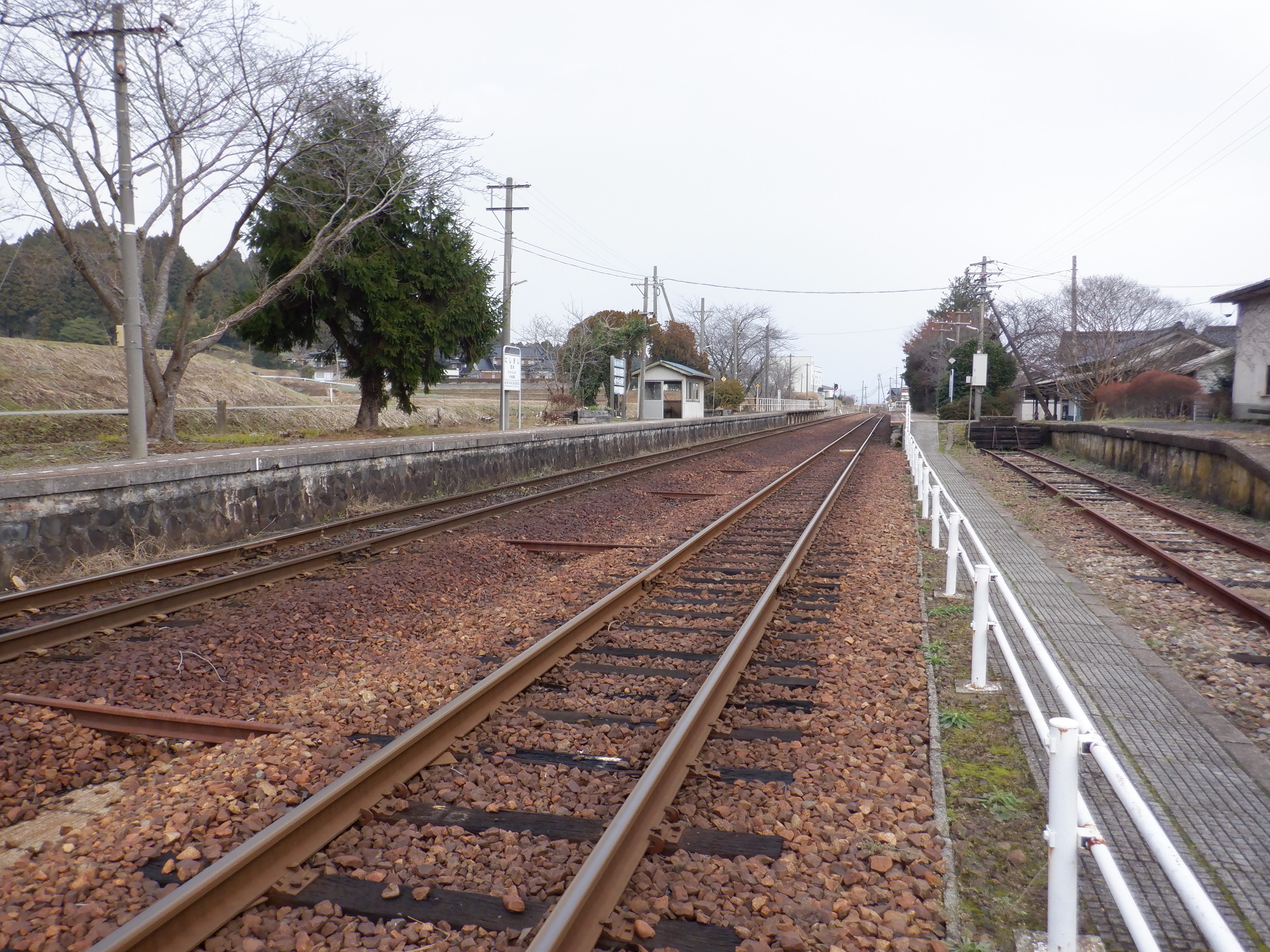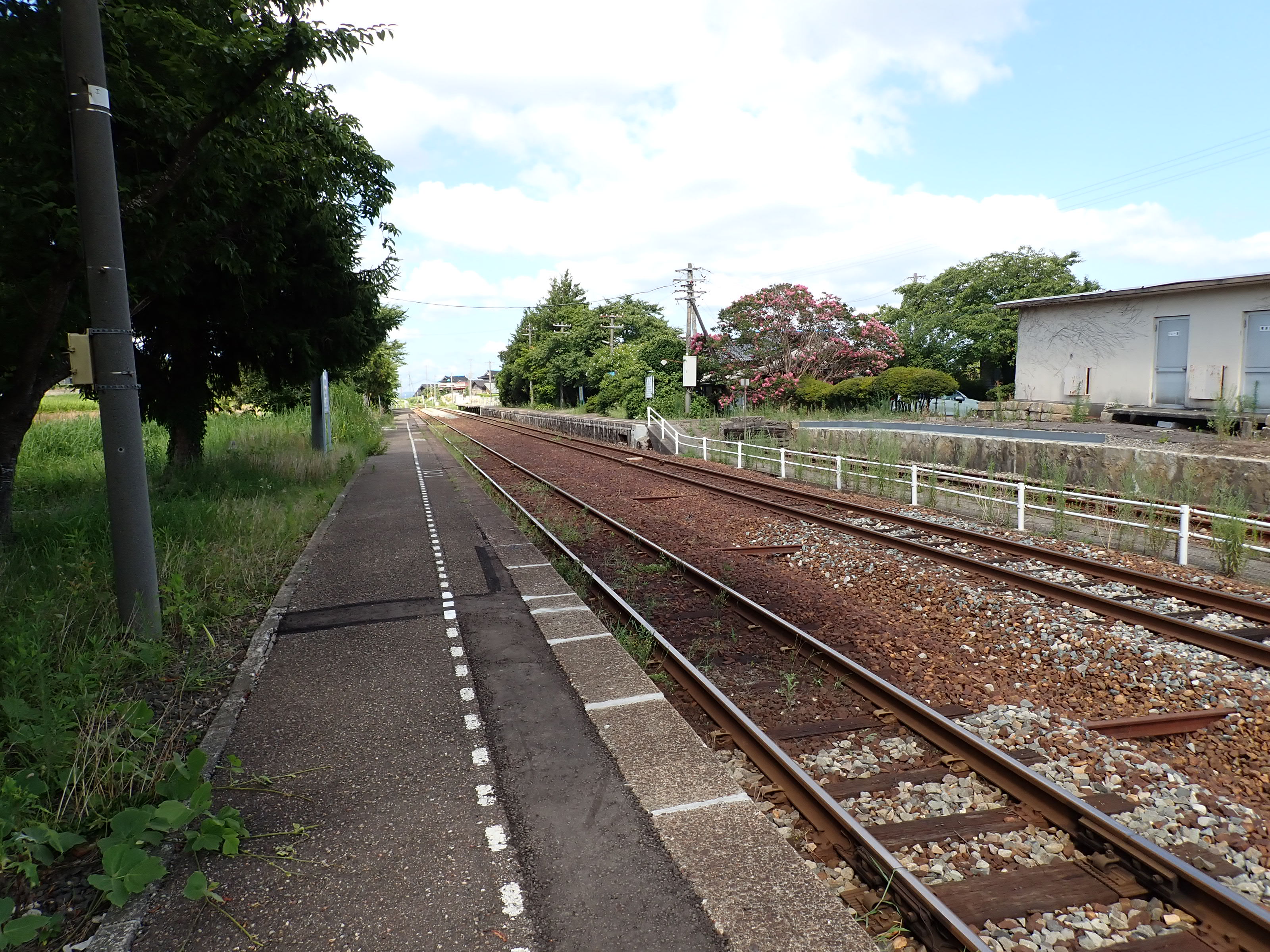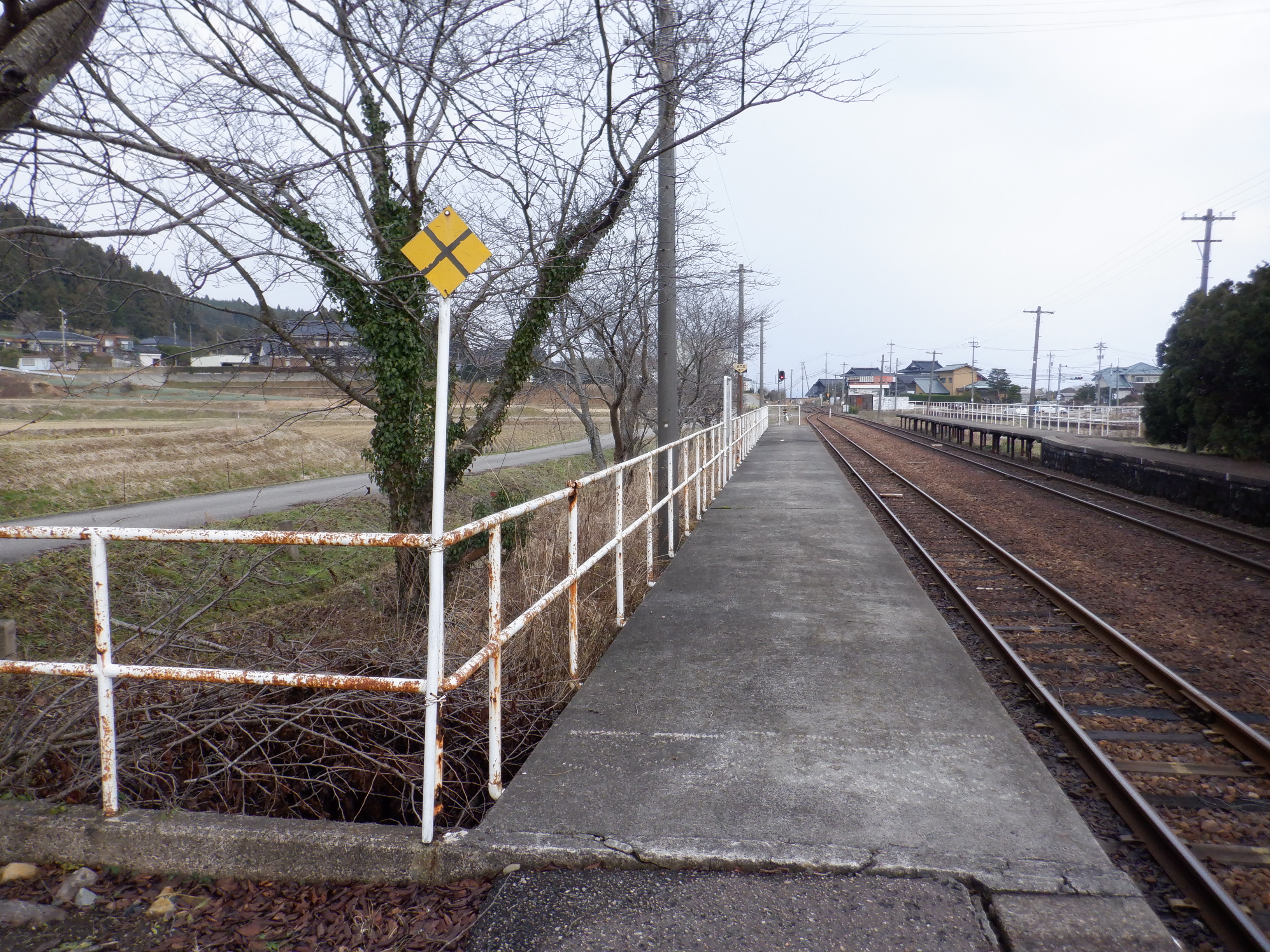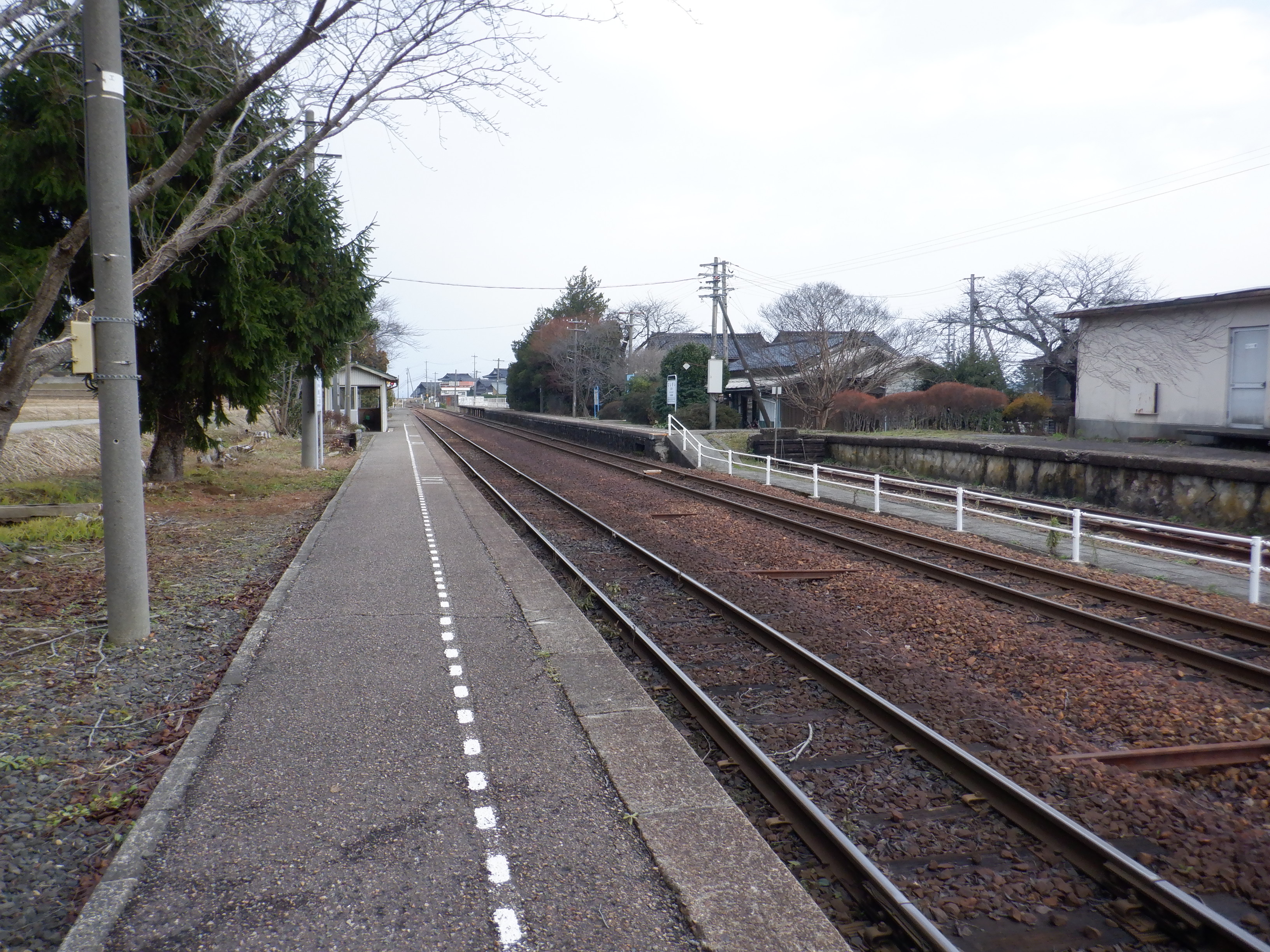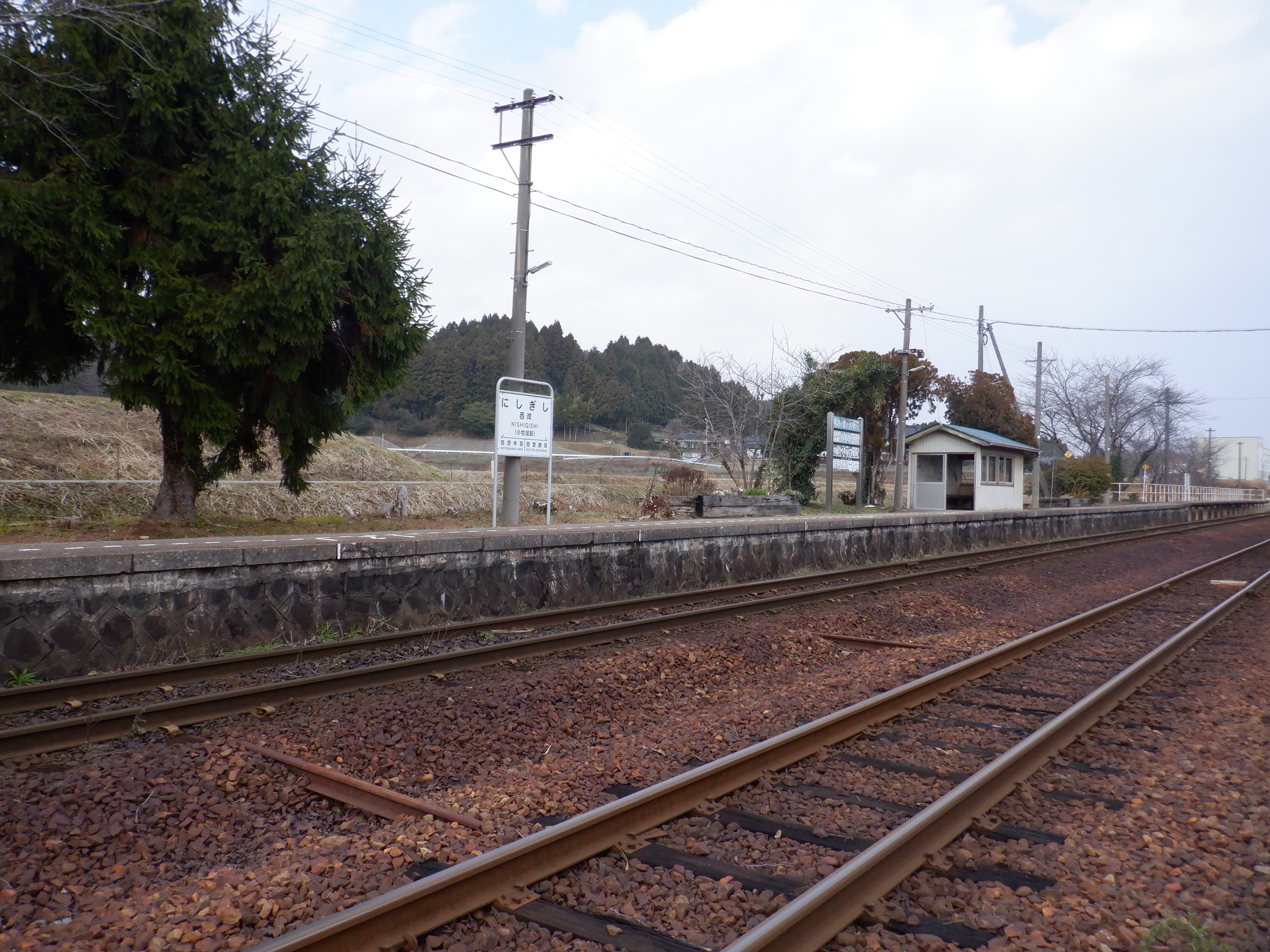 駅舎と反対側のホームの能登中島駅側。