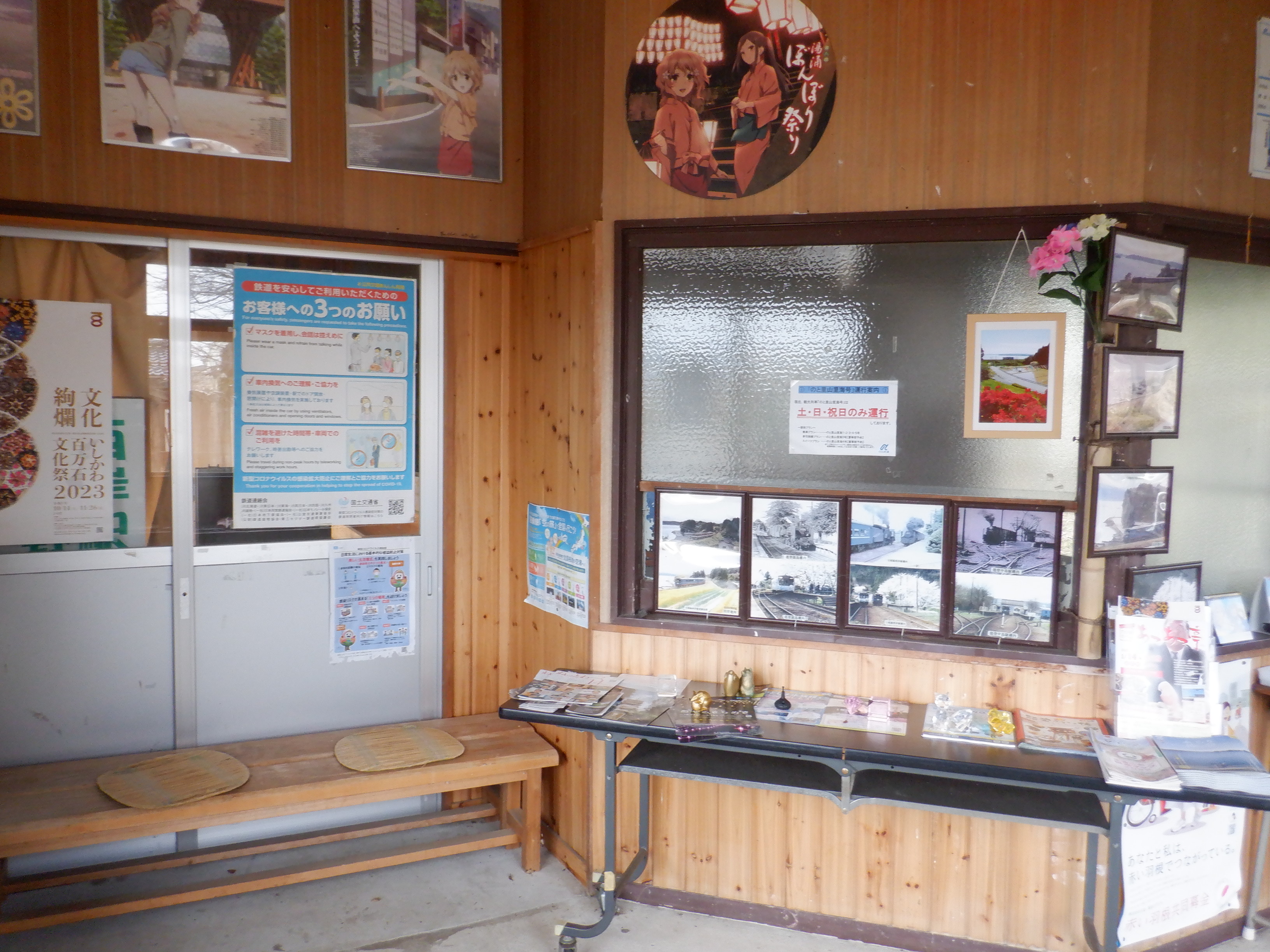 能登半島地震の影響が大きかった駅の一つで、ある程度復旧してから見に行ったものになります。ホームの待合室やトイレが撤去されていました。