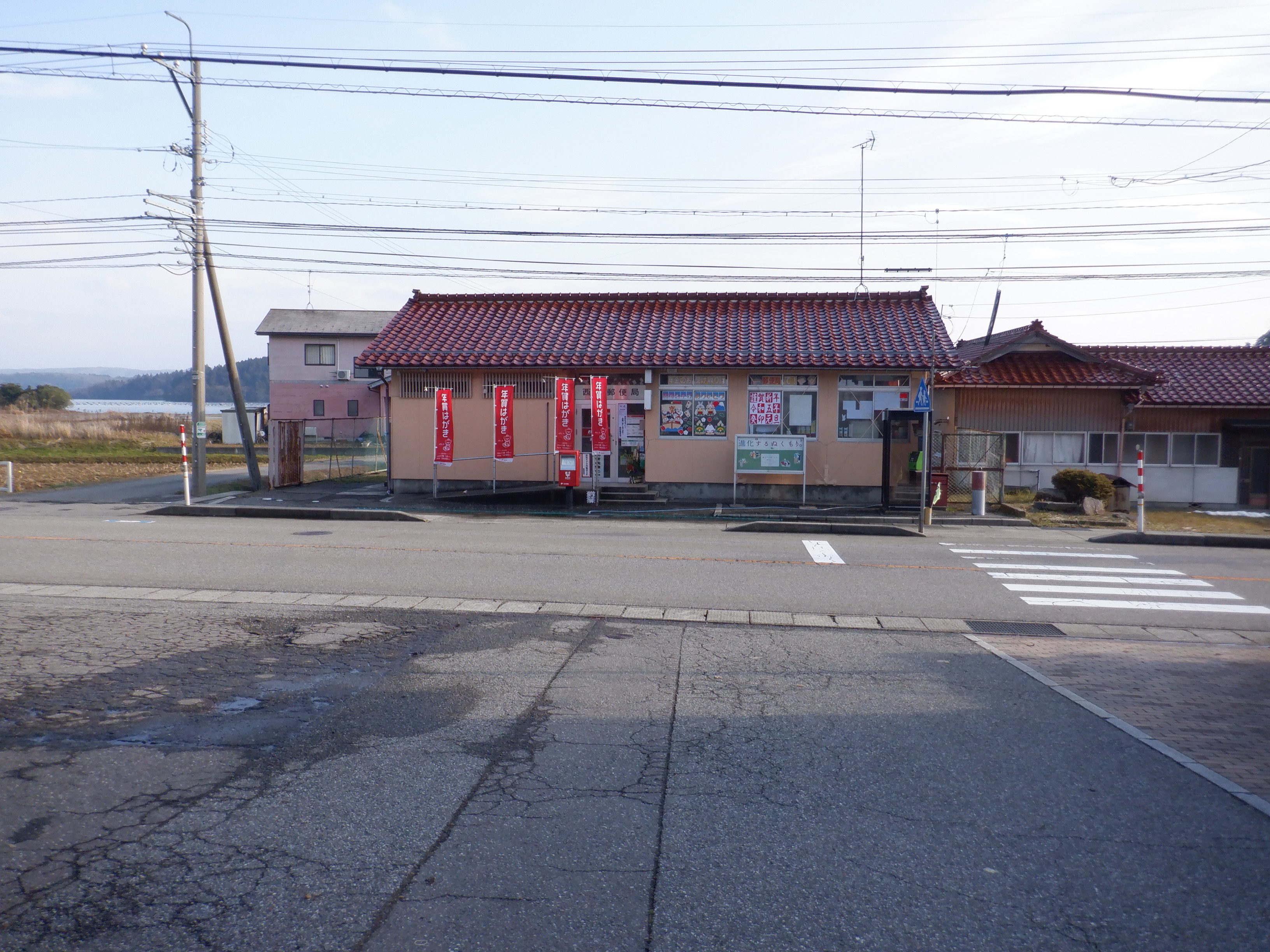 向かいにある西岸郵便局。一時閉鎖中です。