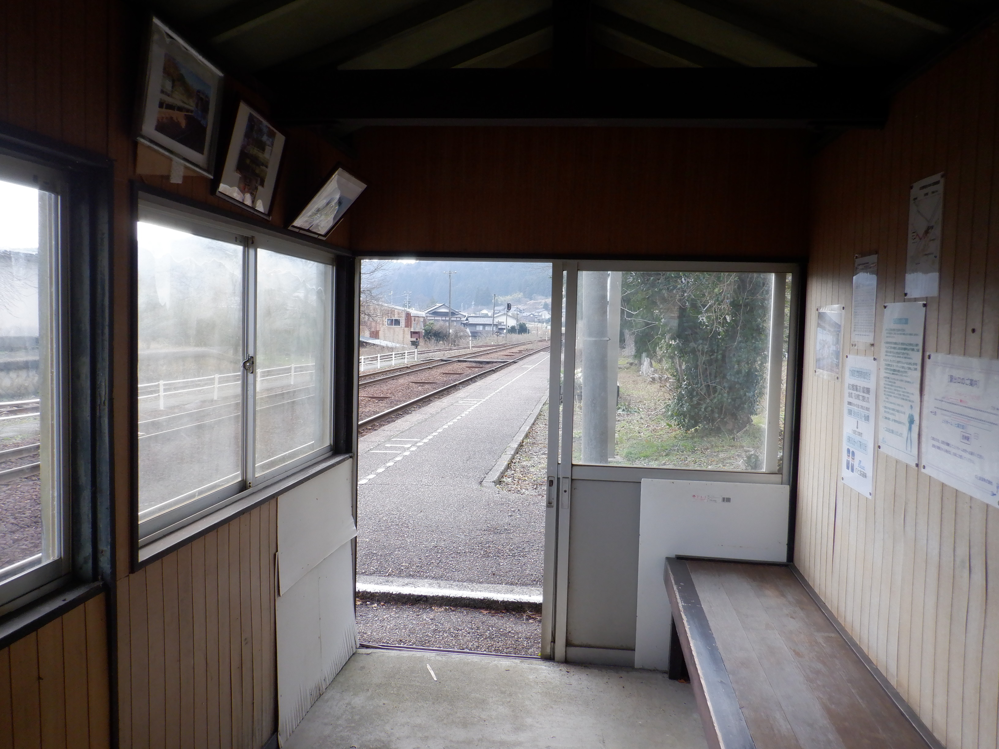 駅舎のホーム側とそこから見た内部。