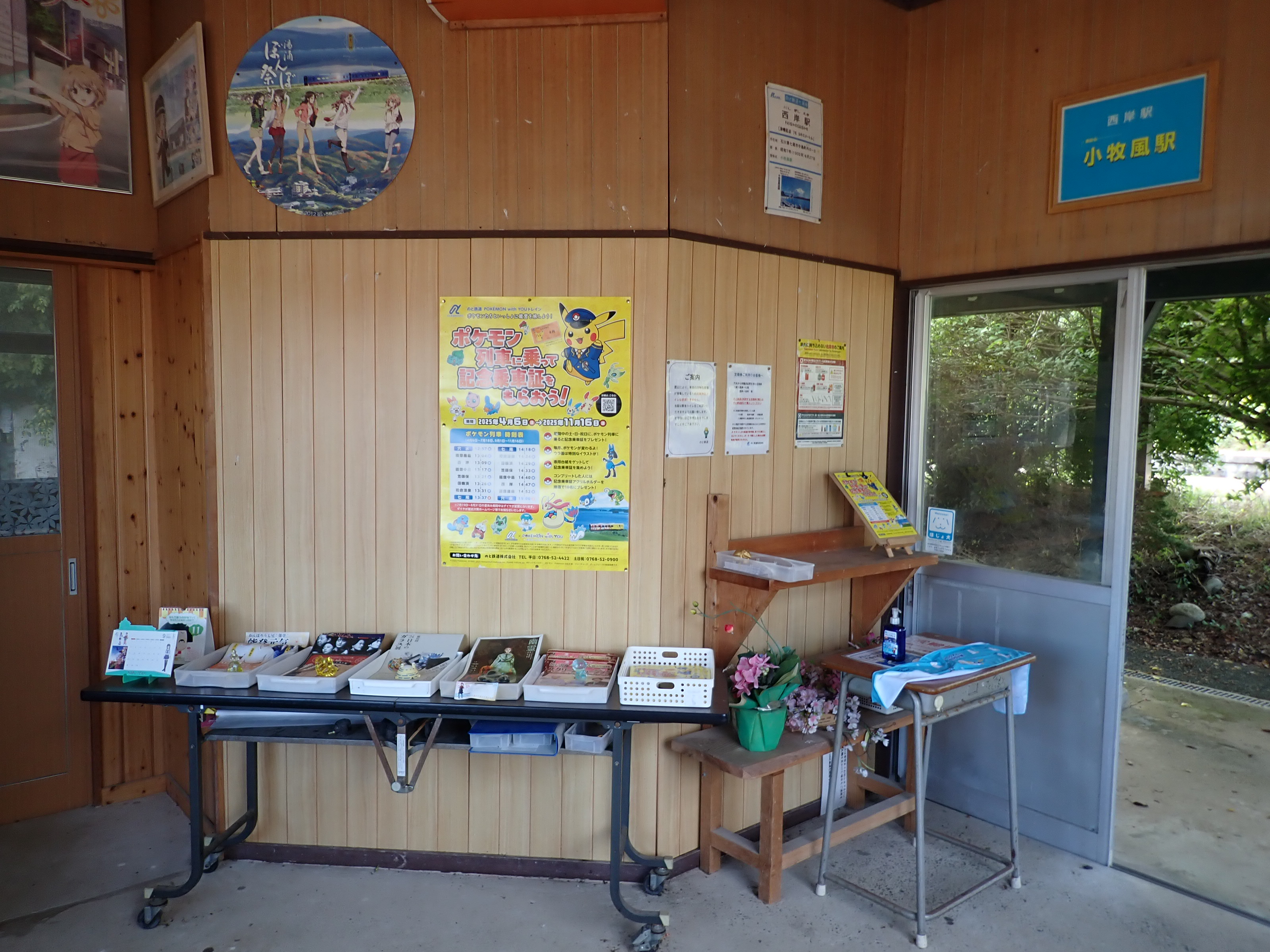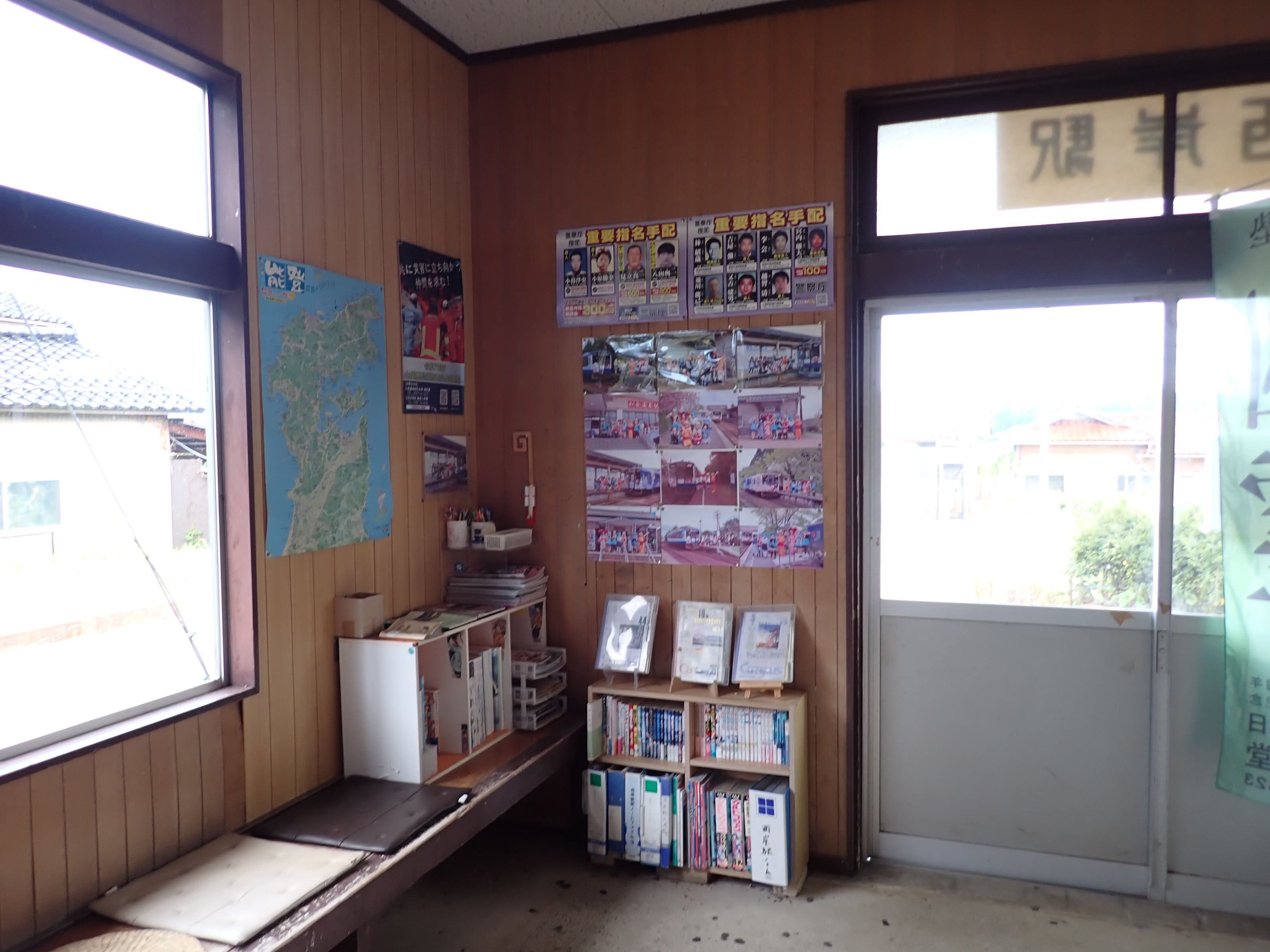 駅舎のホーム側。駅名標は元のところに戻っていませんが、右側に置かれています。