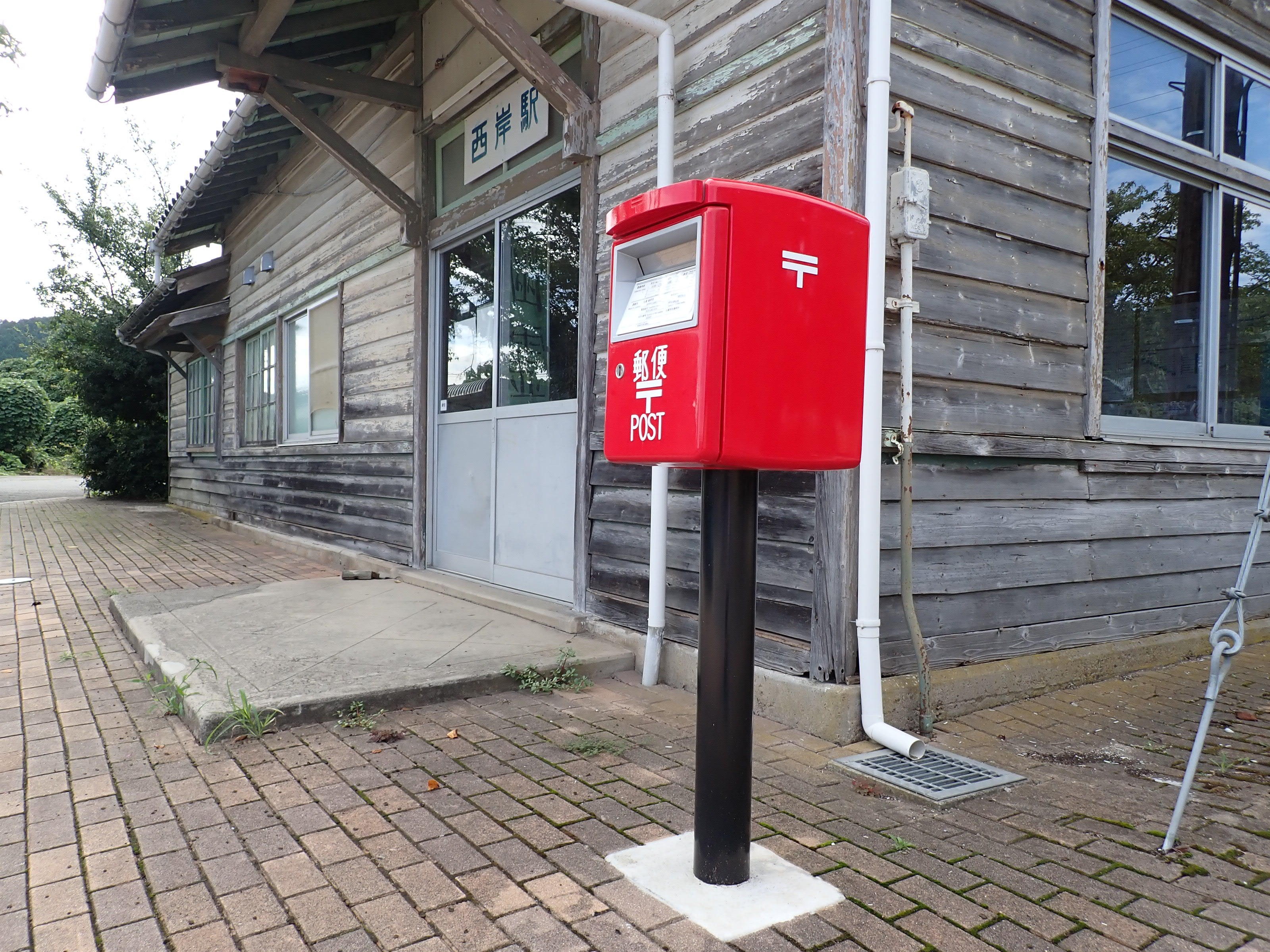 改めて駅前の閉鎖中の西岸郵便局を見ると、ポストが撤去されています。
