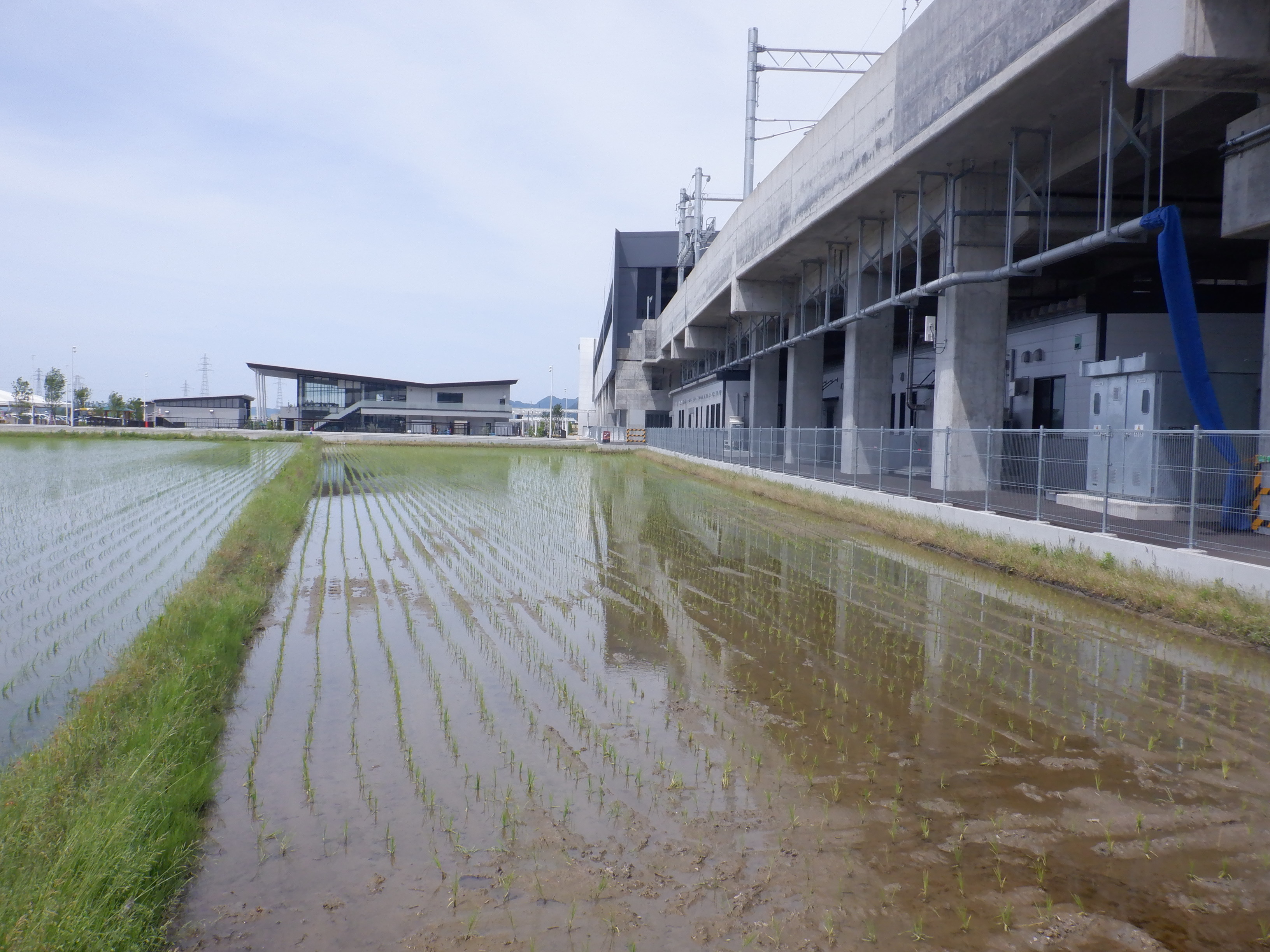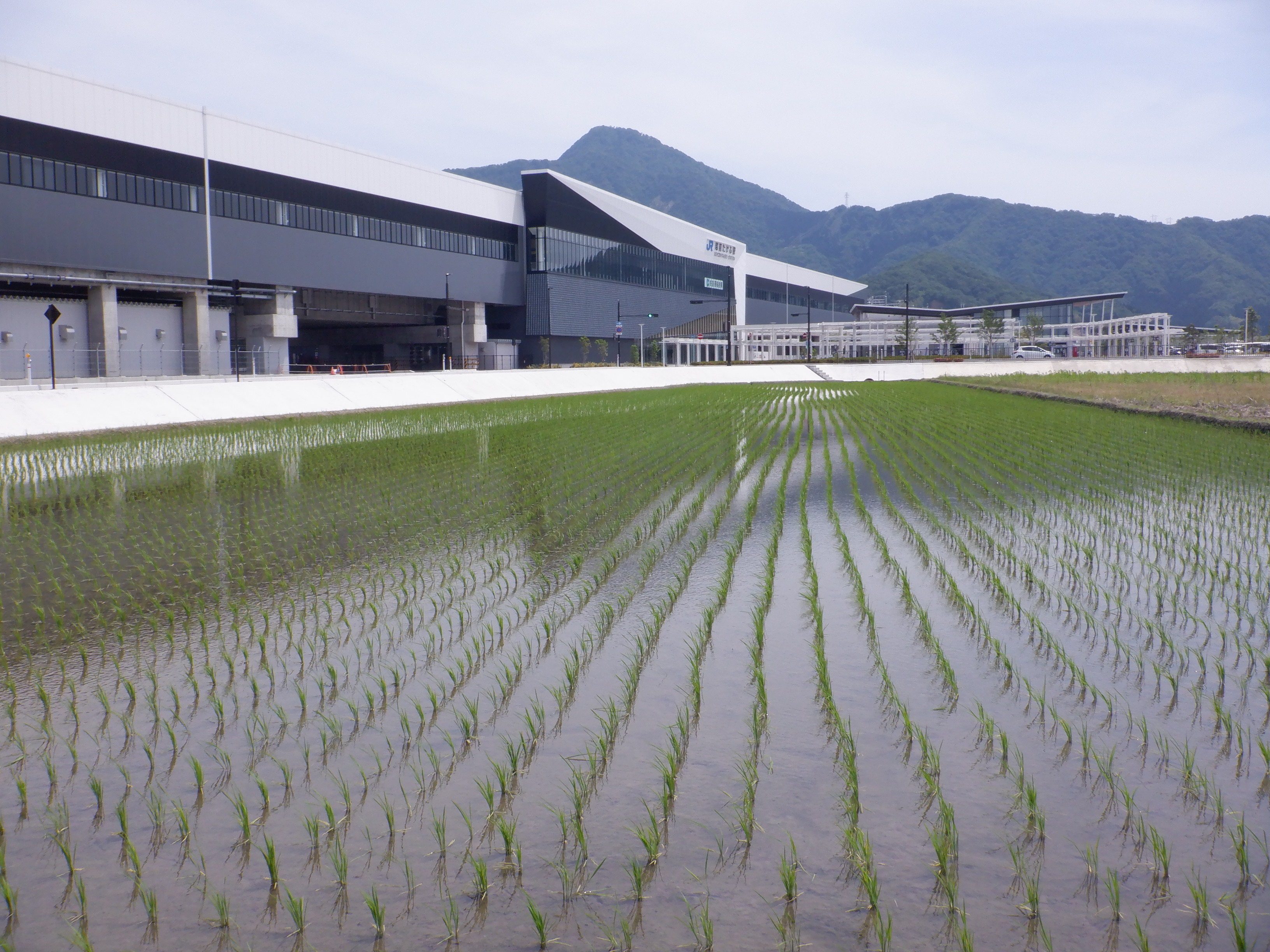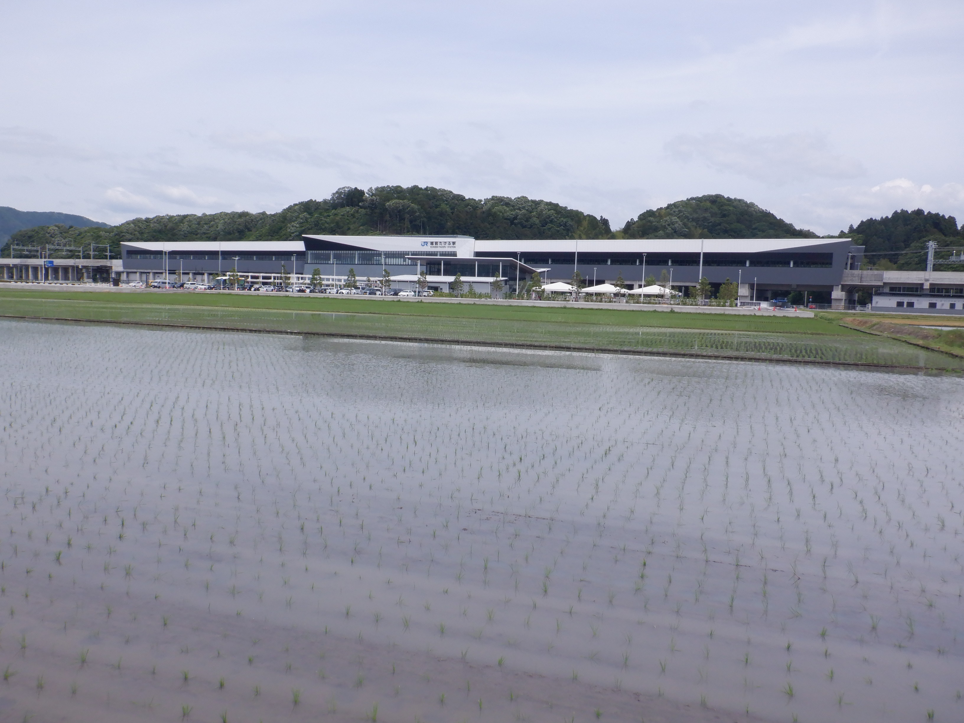 道の駅が開業し、駅の外観としては大きな変化もなさそうなので、その後は田植え直後の様子と稲刈り直前の様子をそれぞれ見に行っています。
