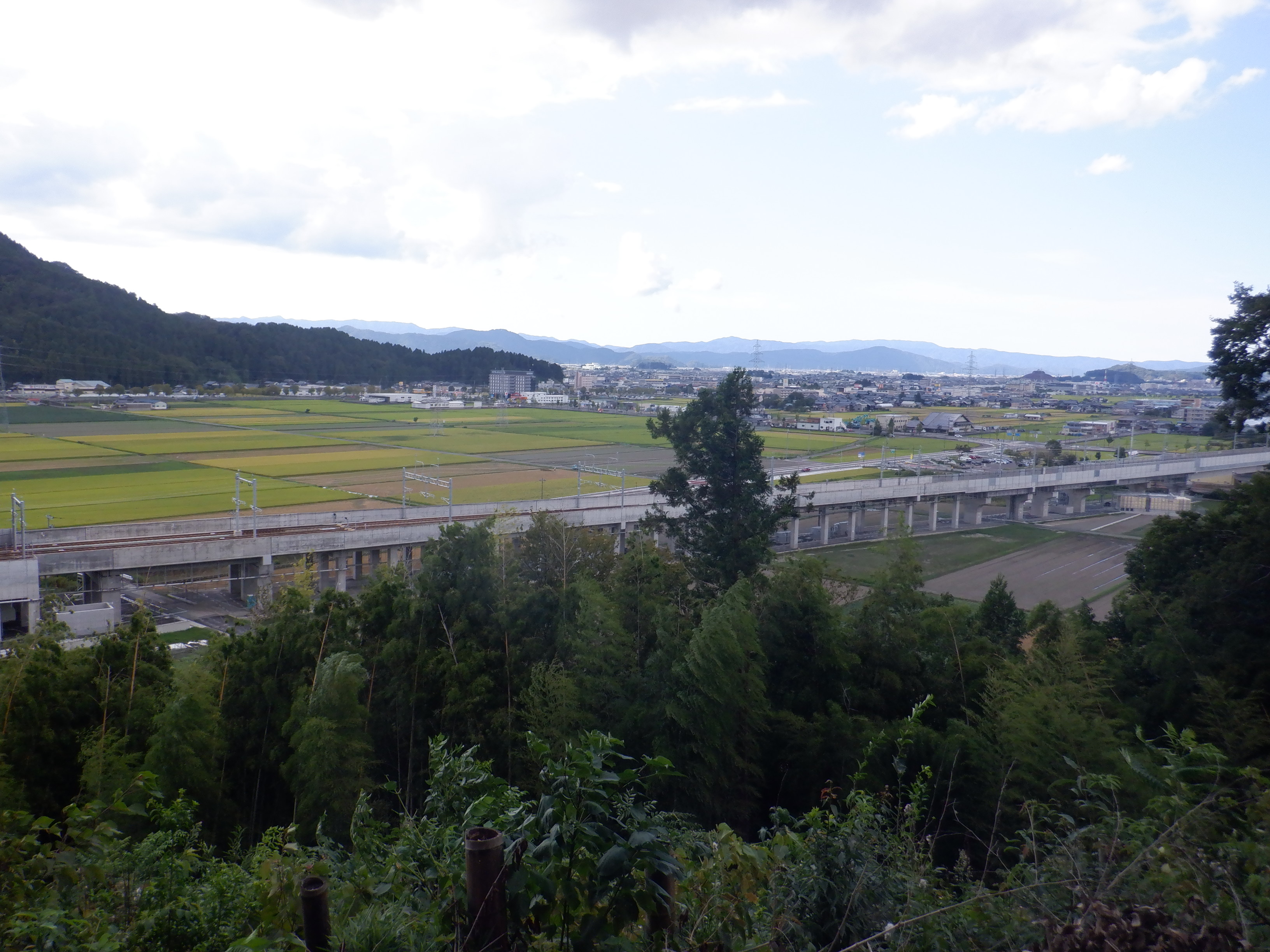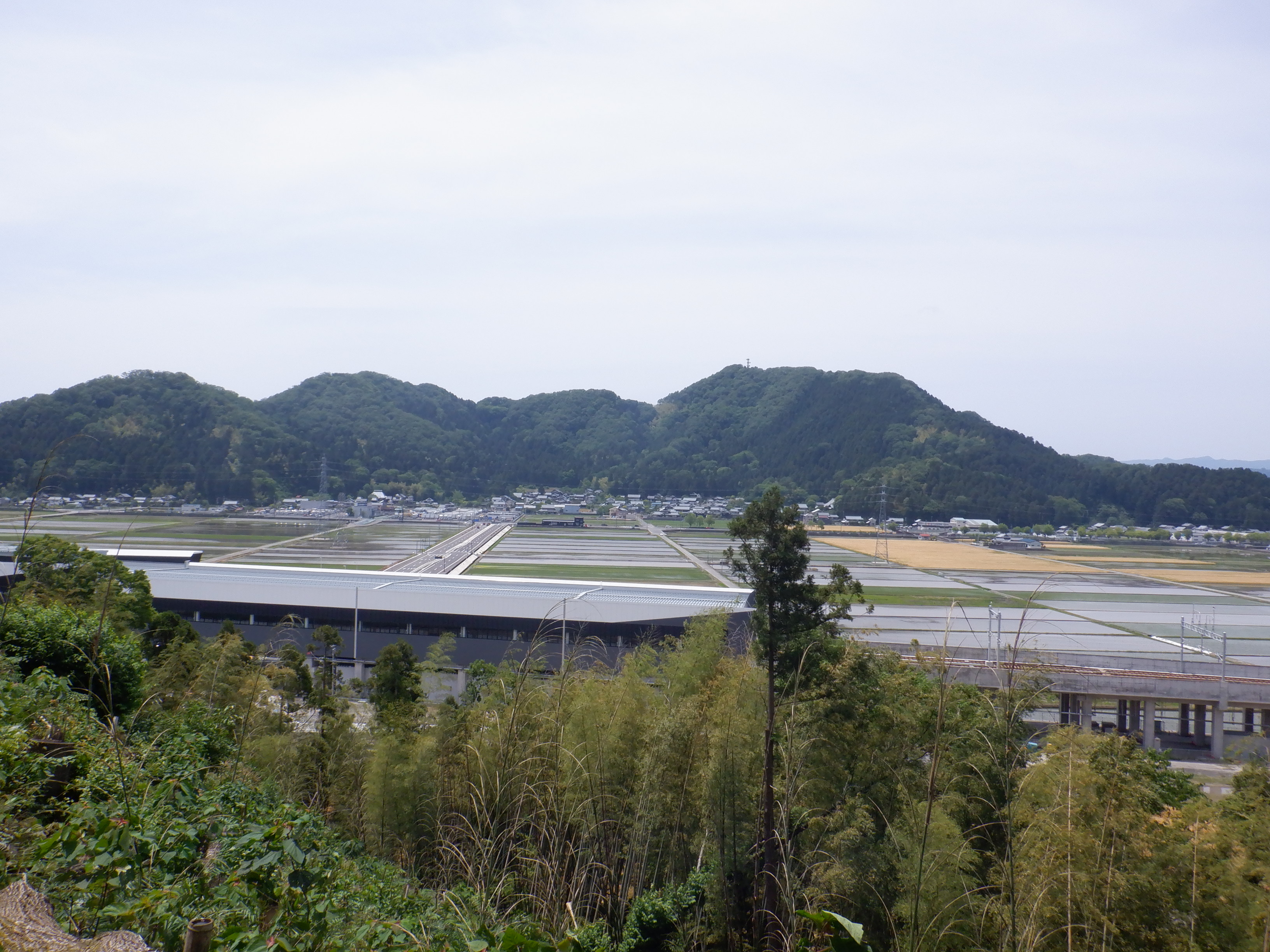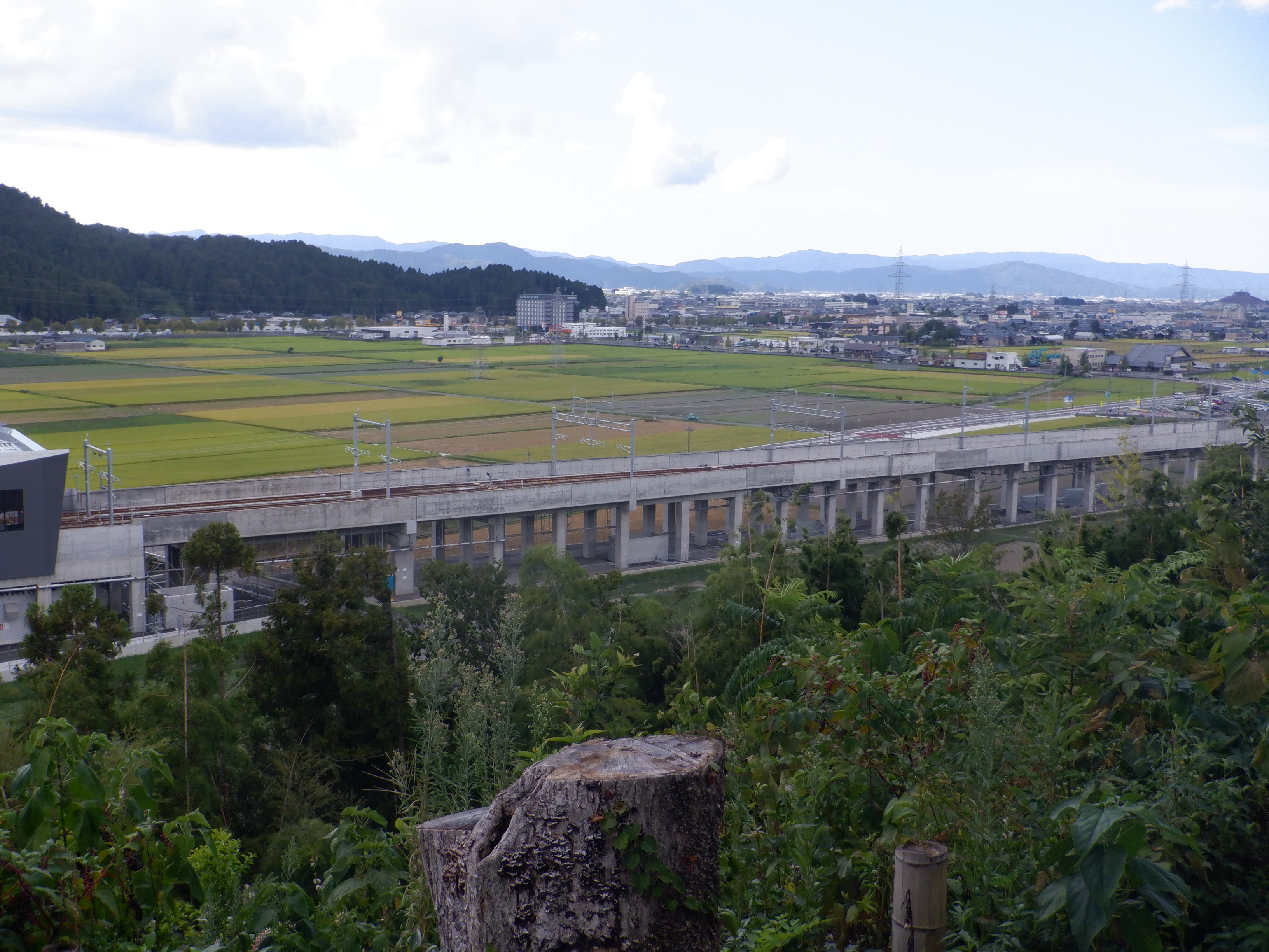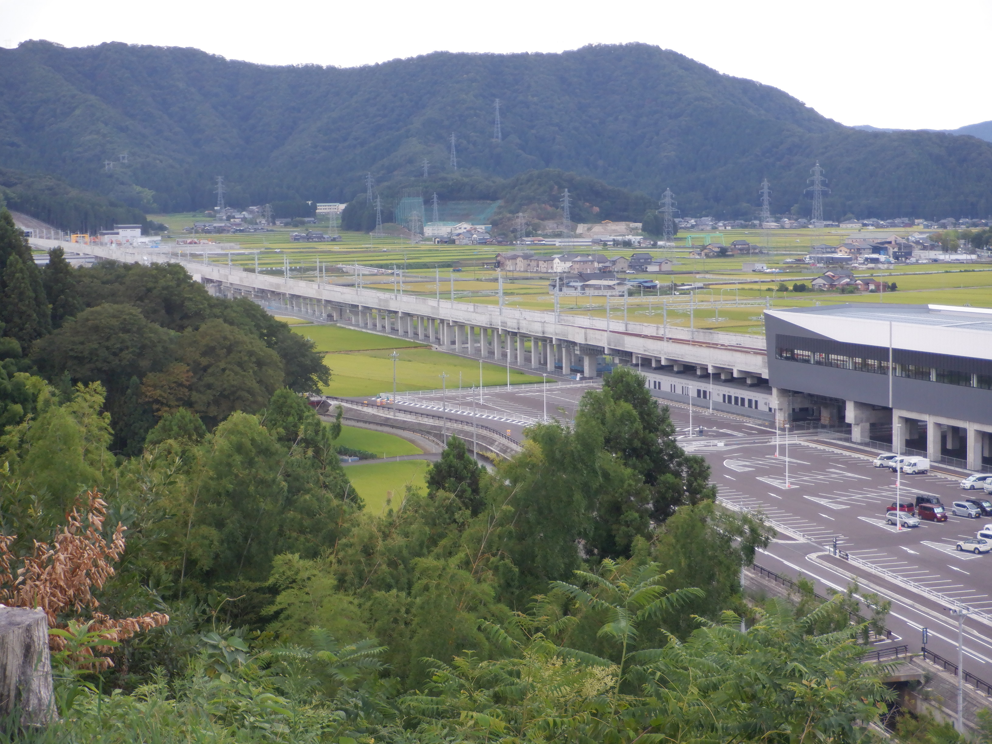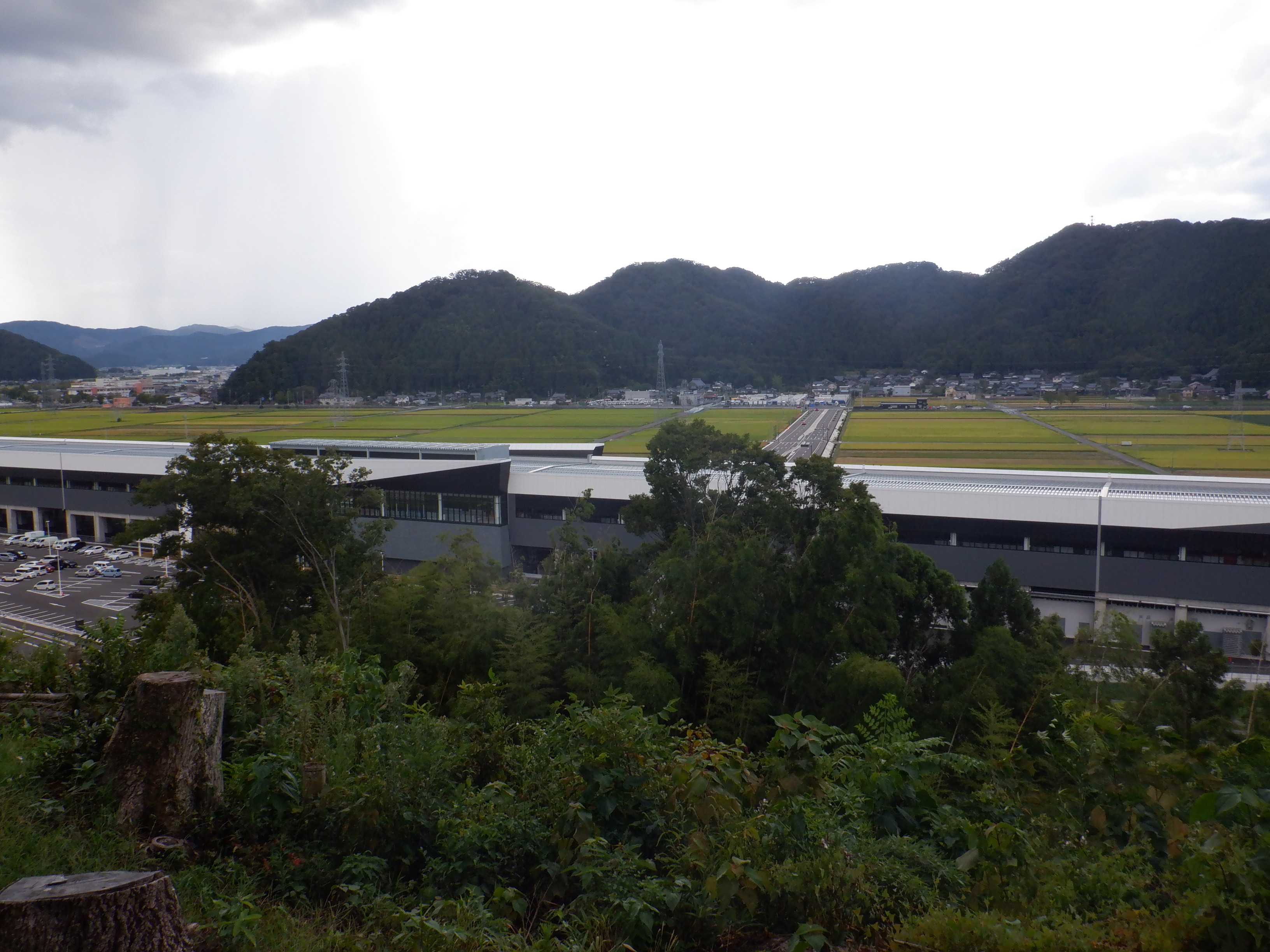 岩内山の展望台から見た越前たけふ駅とその周辺。
