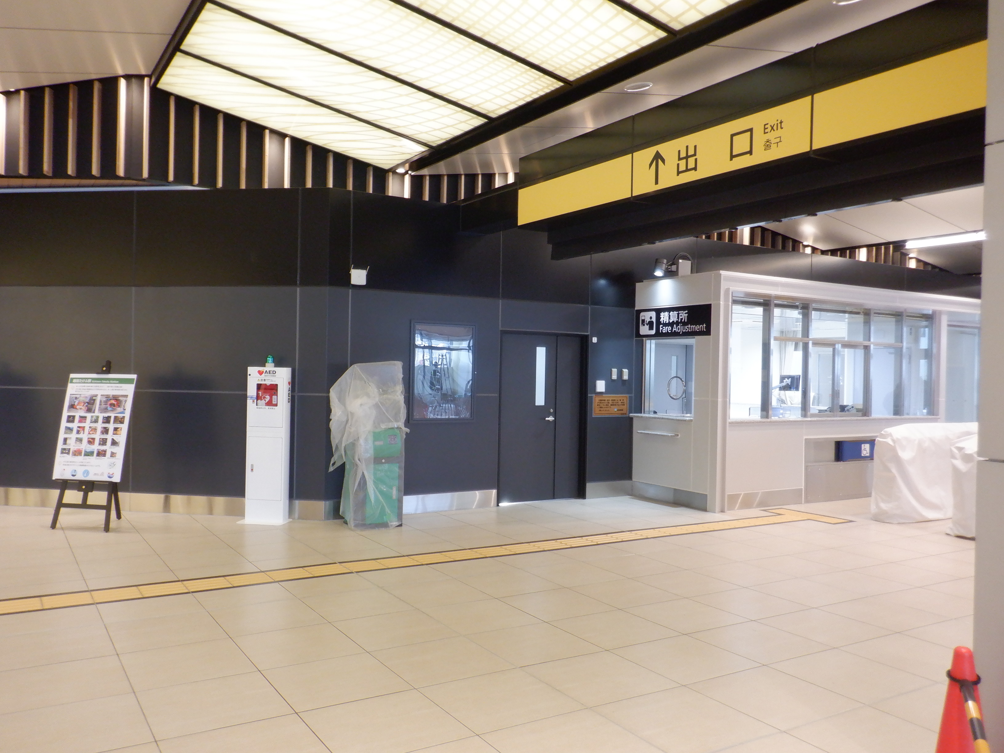 有人改札と精算所。鉄道・運輸機構の挨拶は精算所のところにあります。