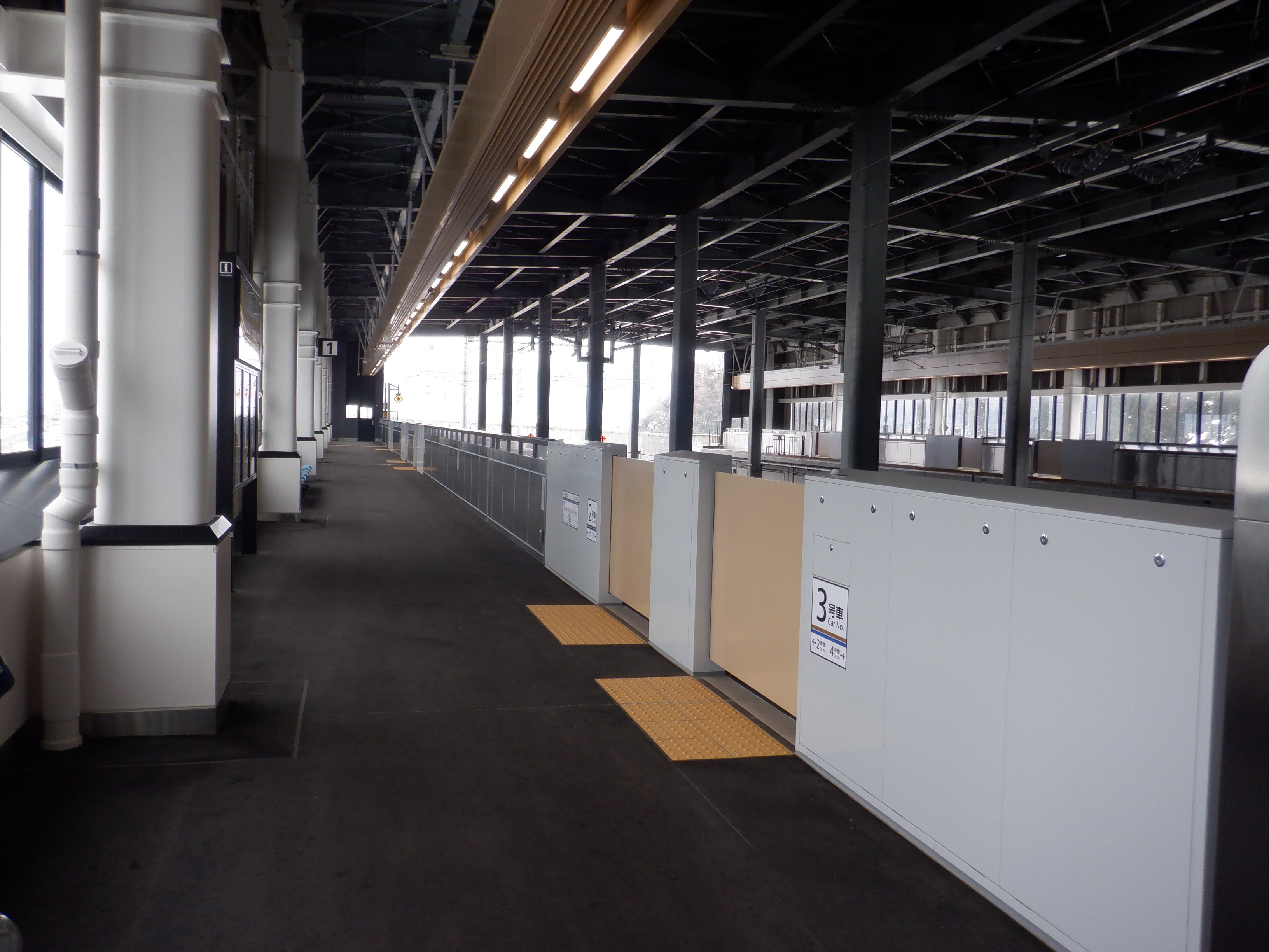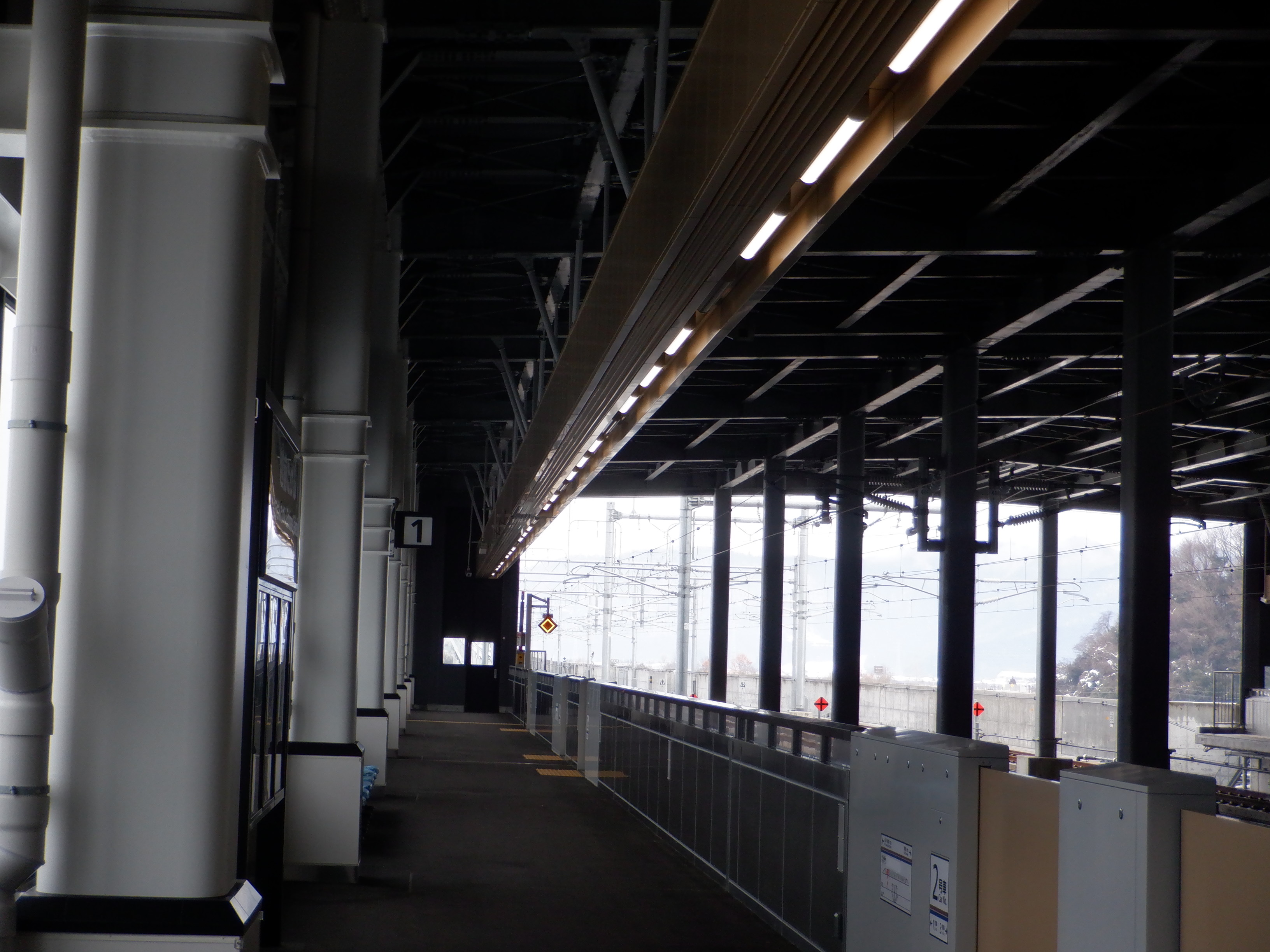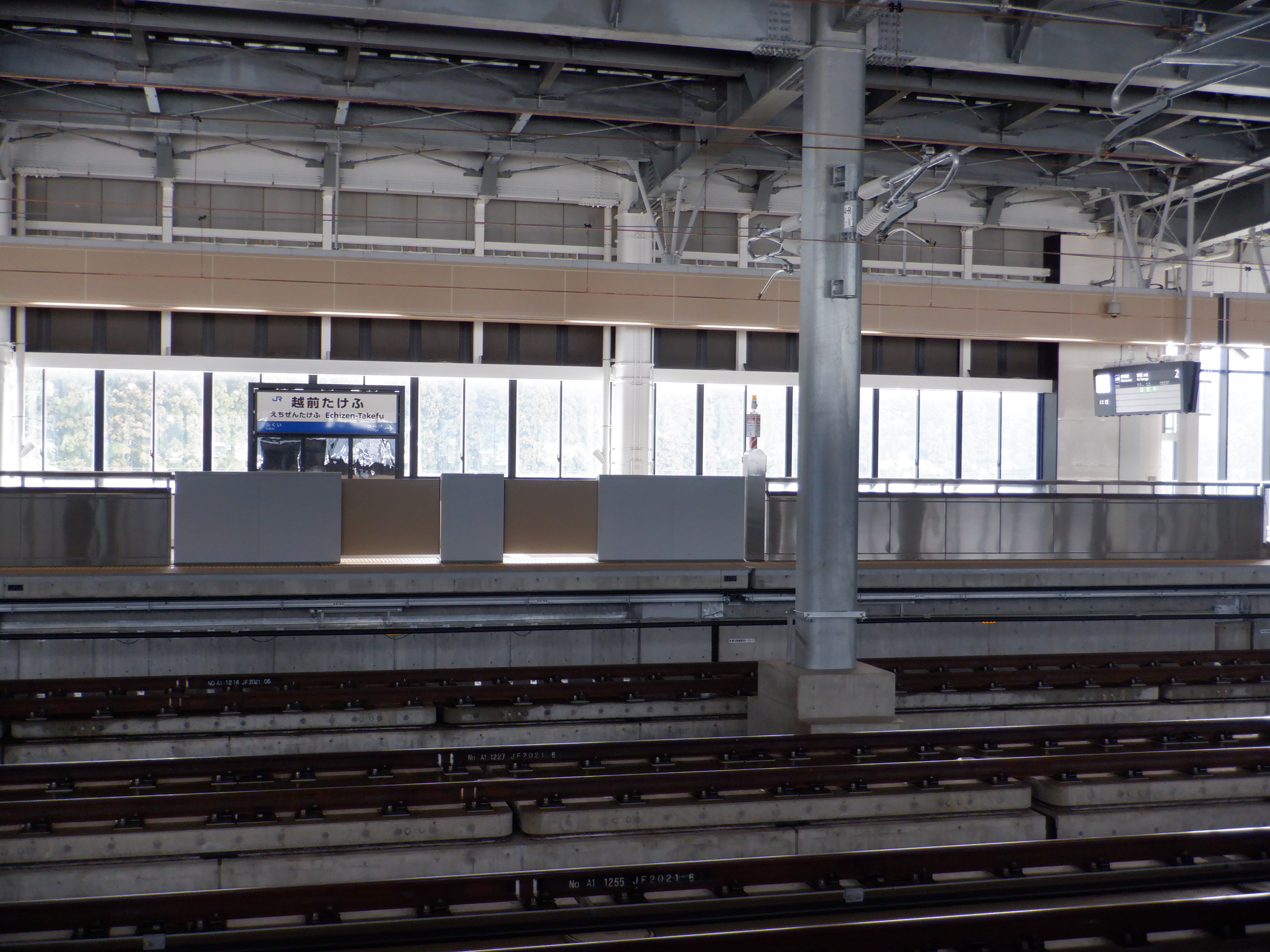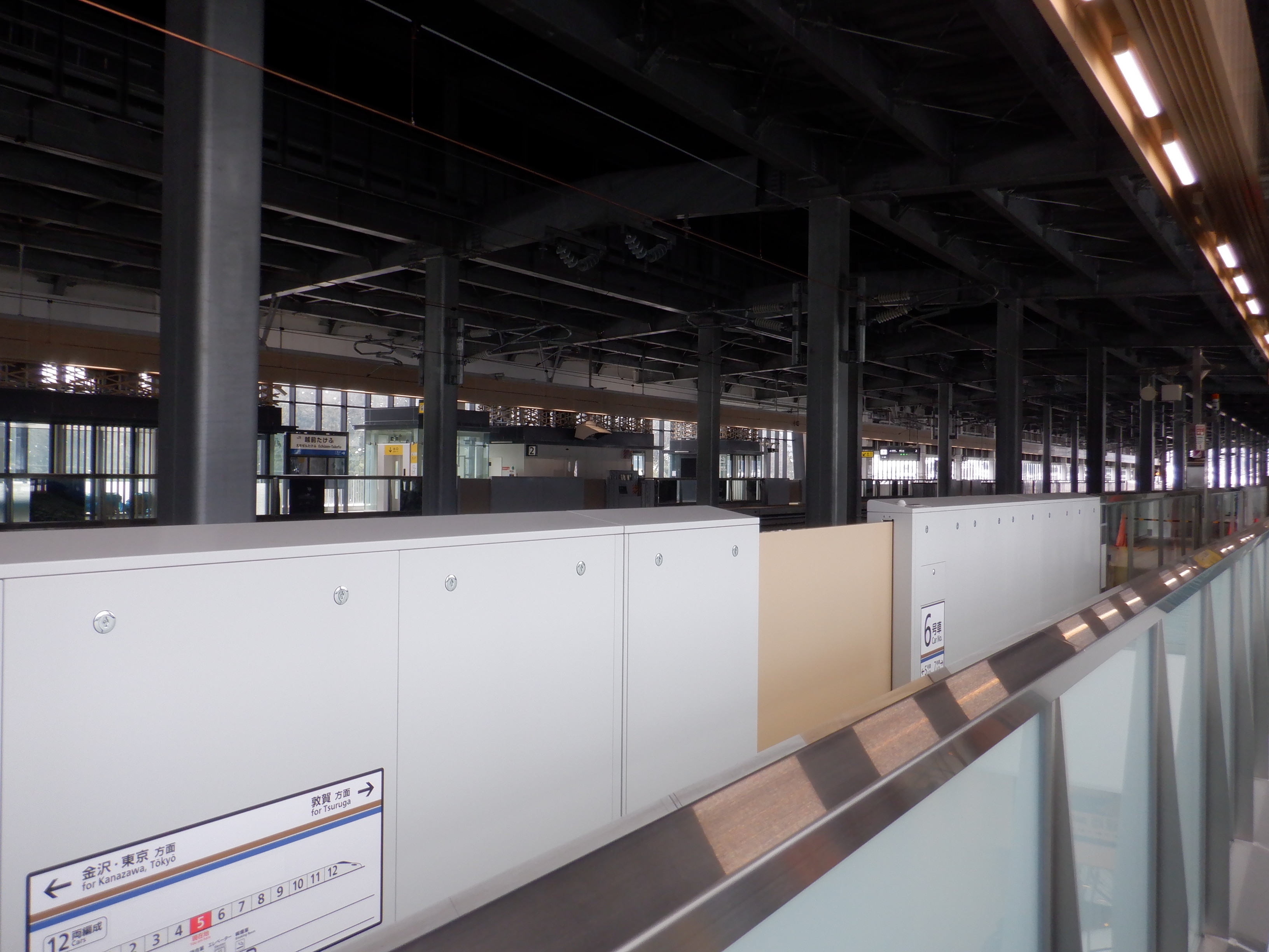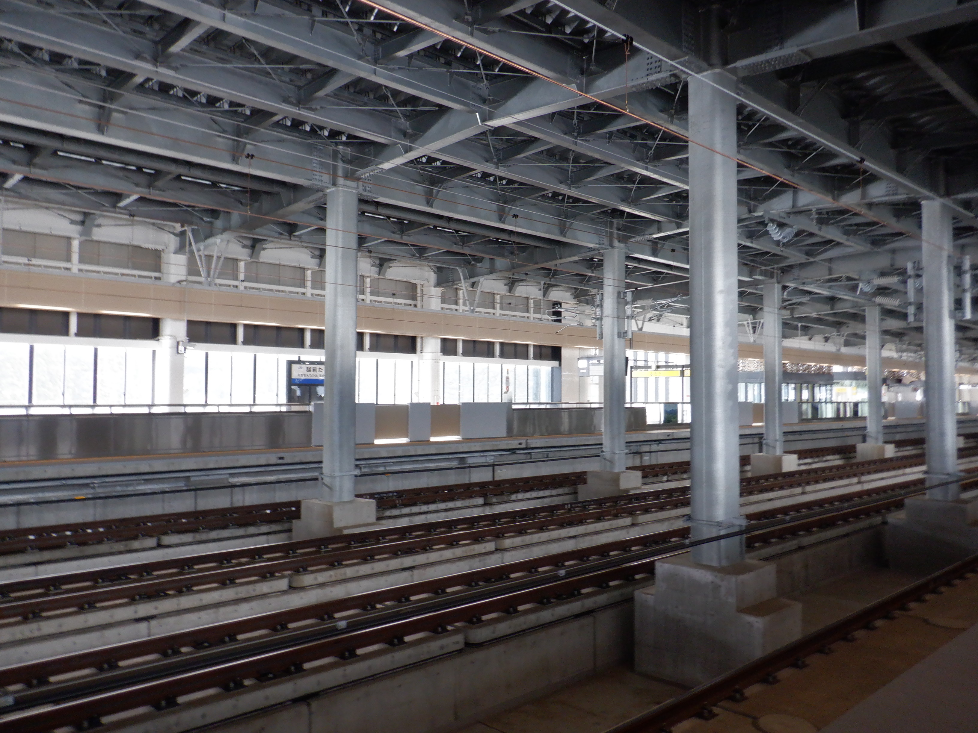 見学範囲の福井側先端から見た1番のりばの福井駅側。