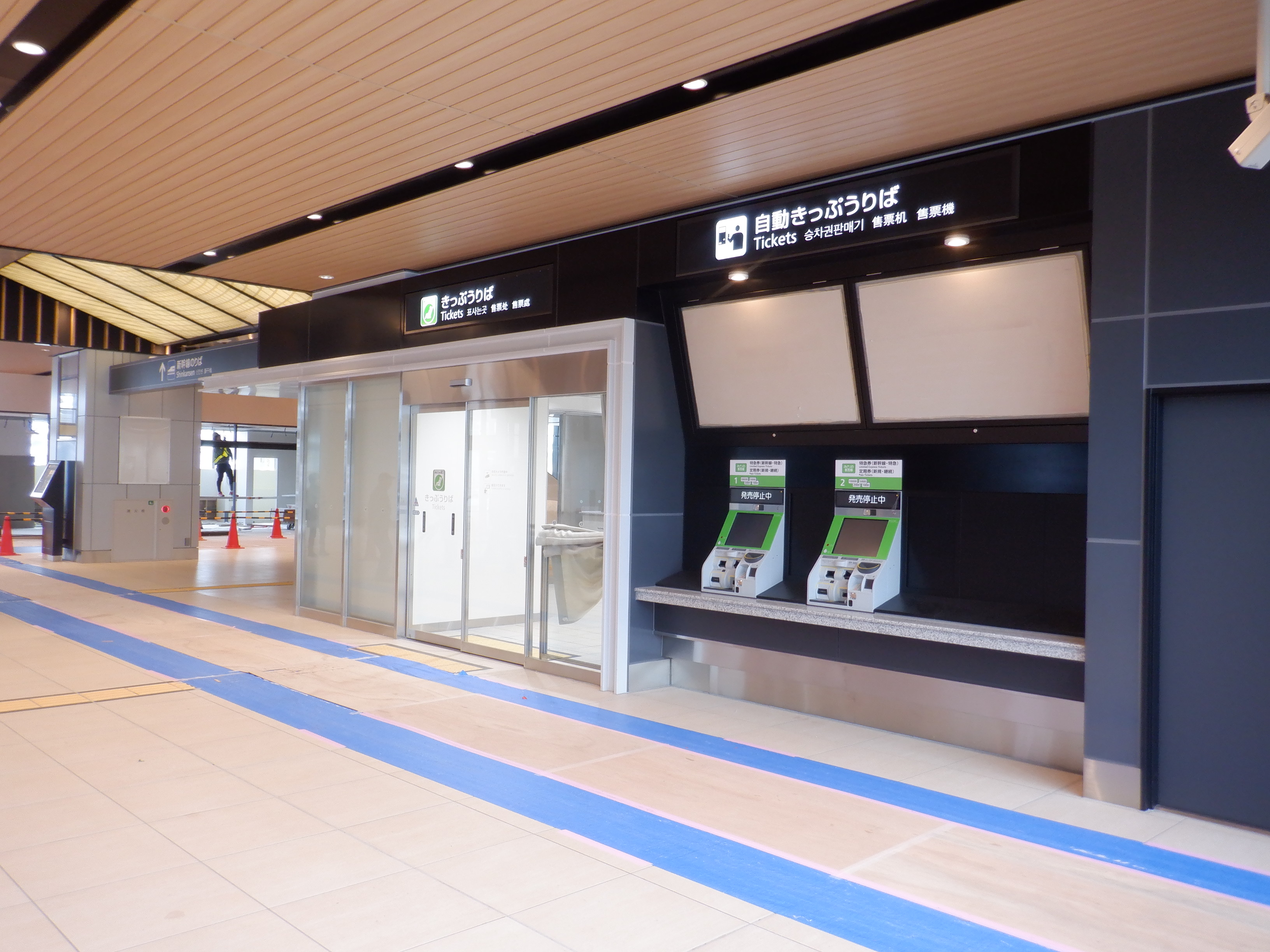 券売機と窓口の様子。