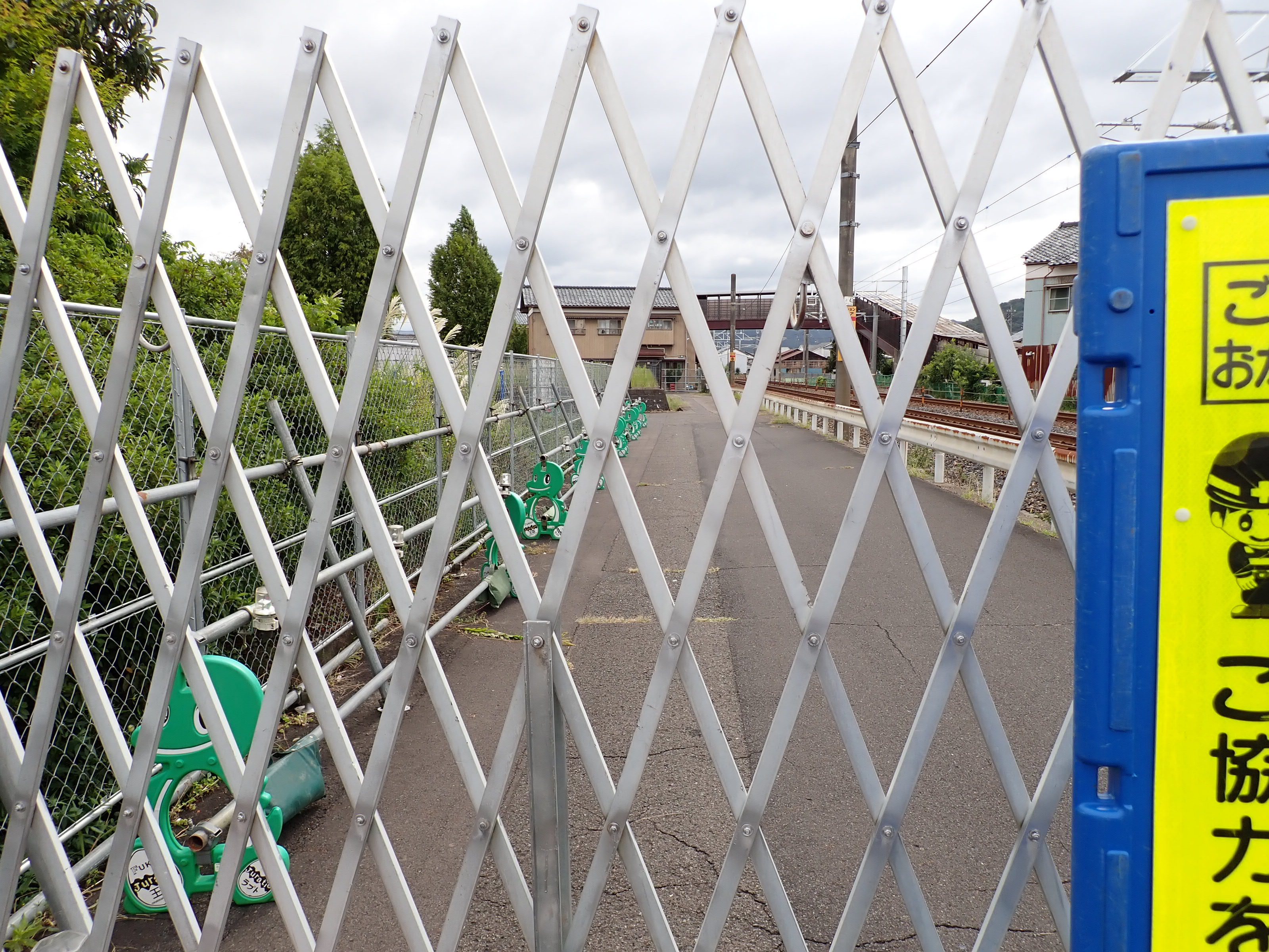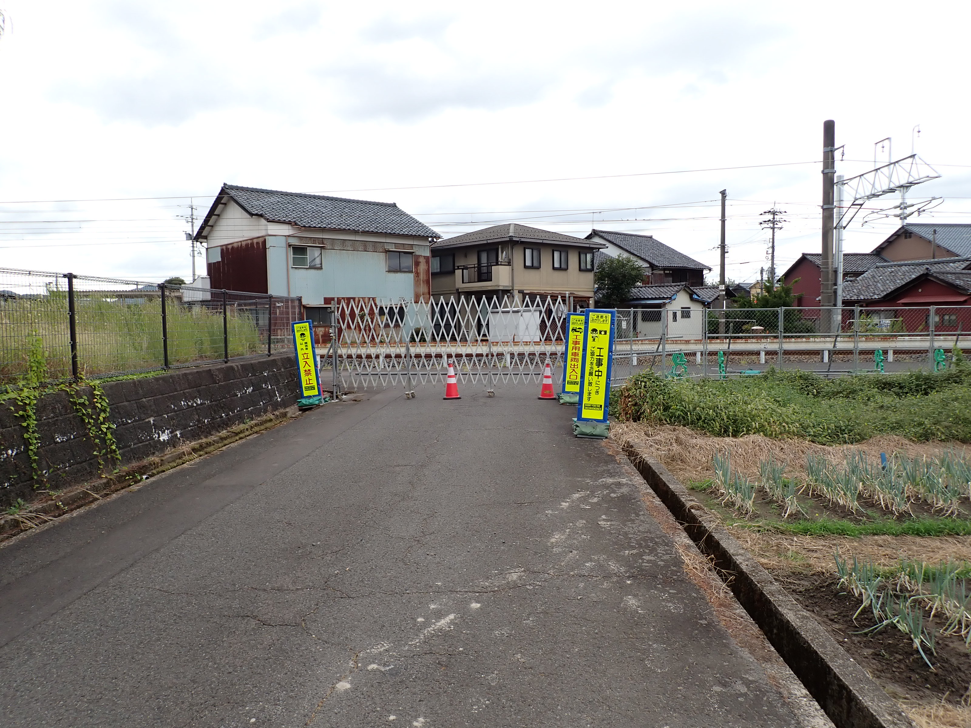 2番のりばができる側の公園のそばの線路沿いの道はバリケードが設置されて入ることができなくなっていました。
