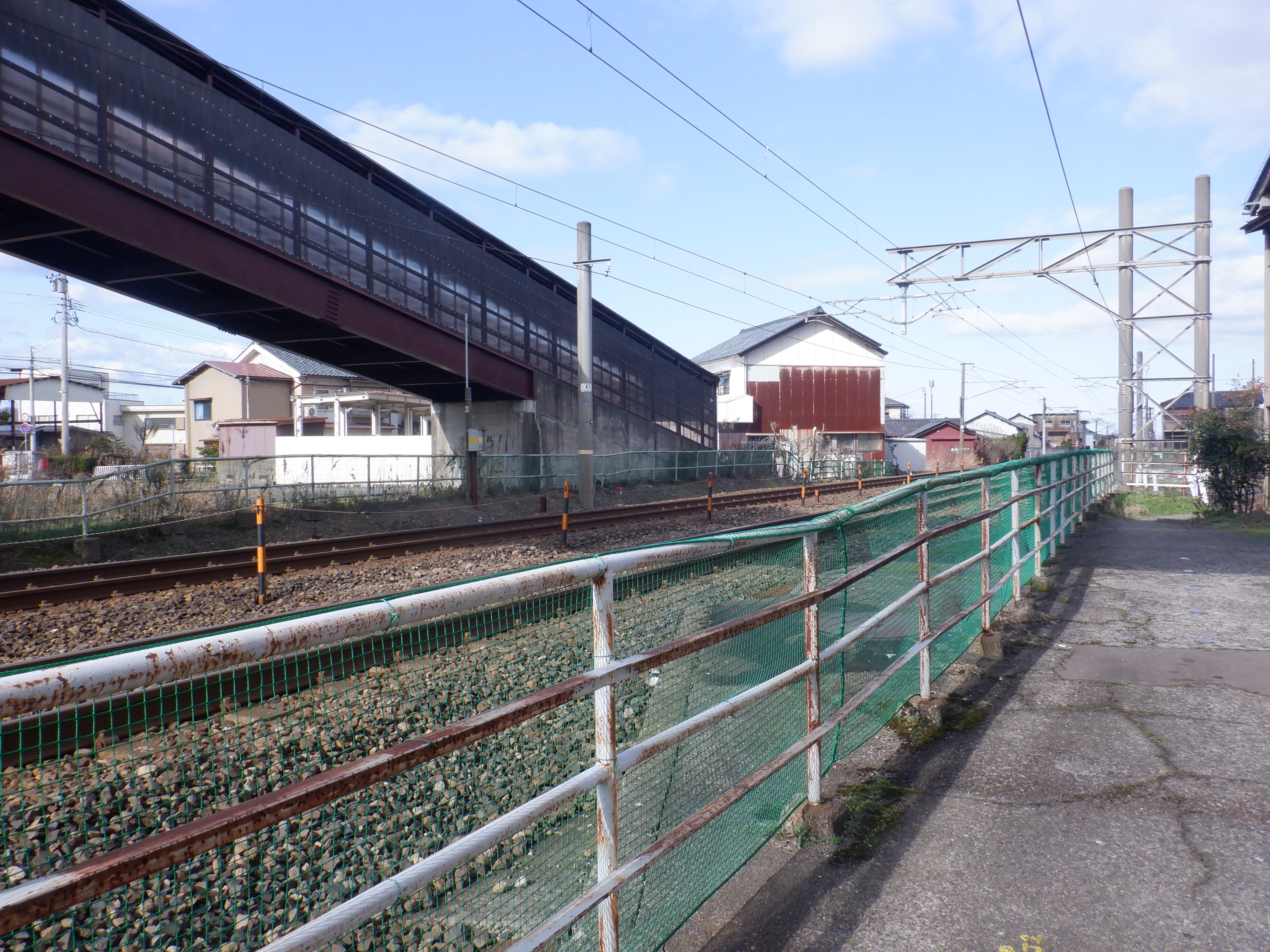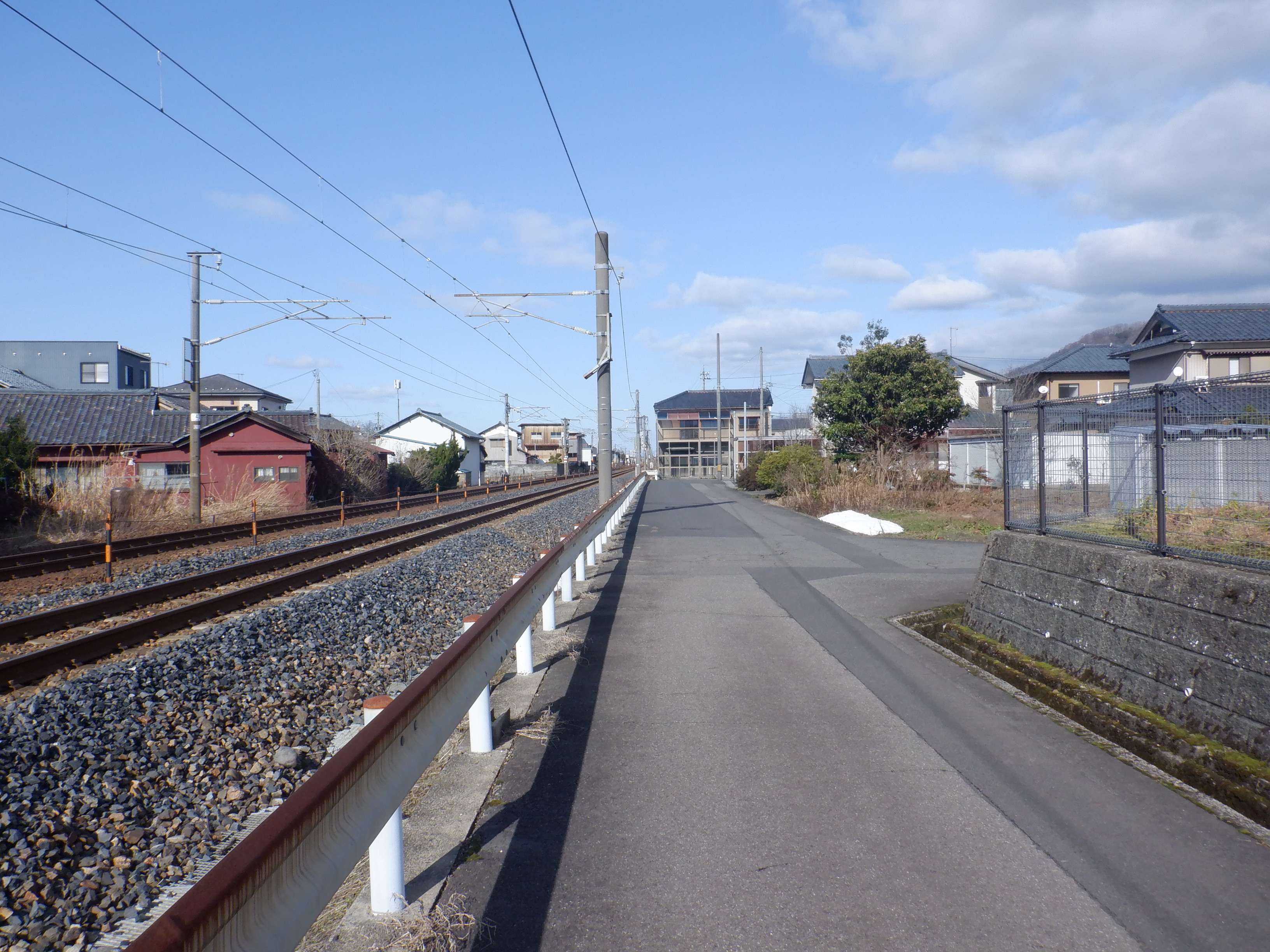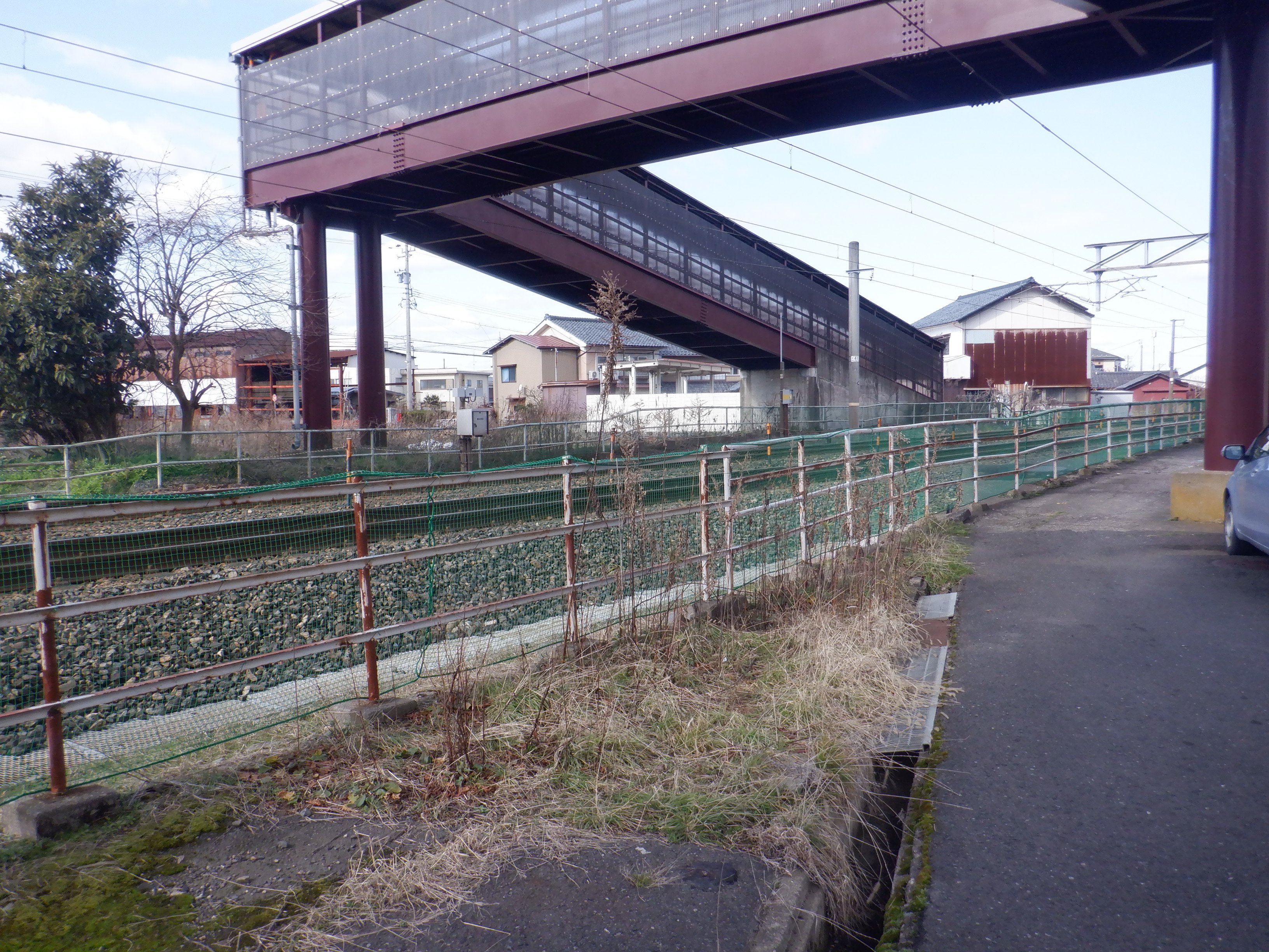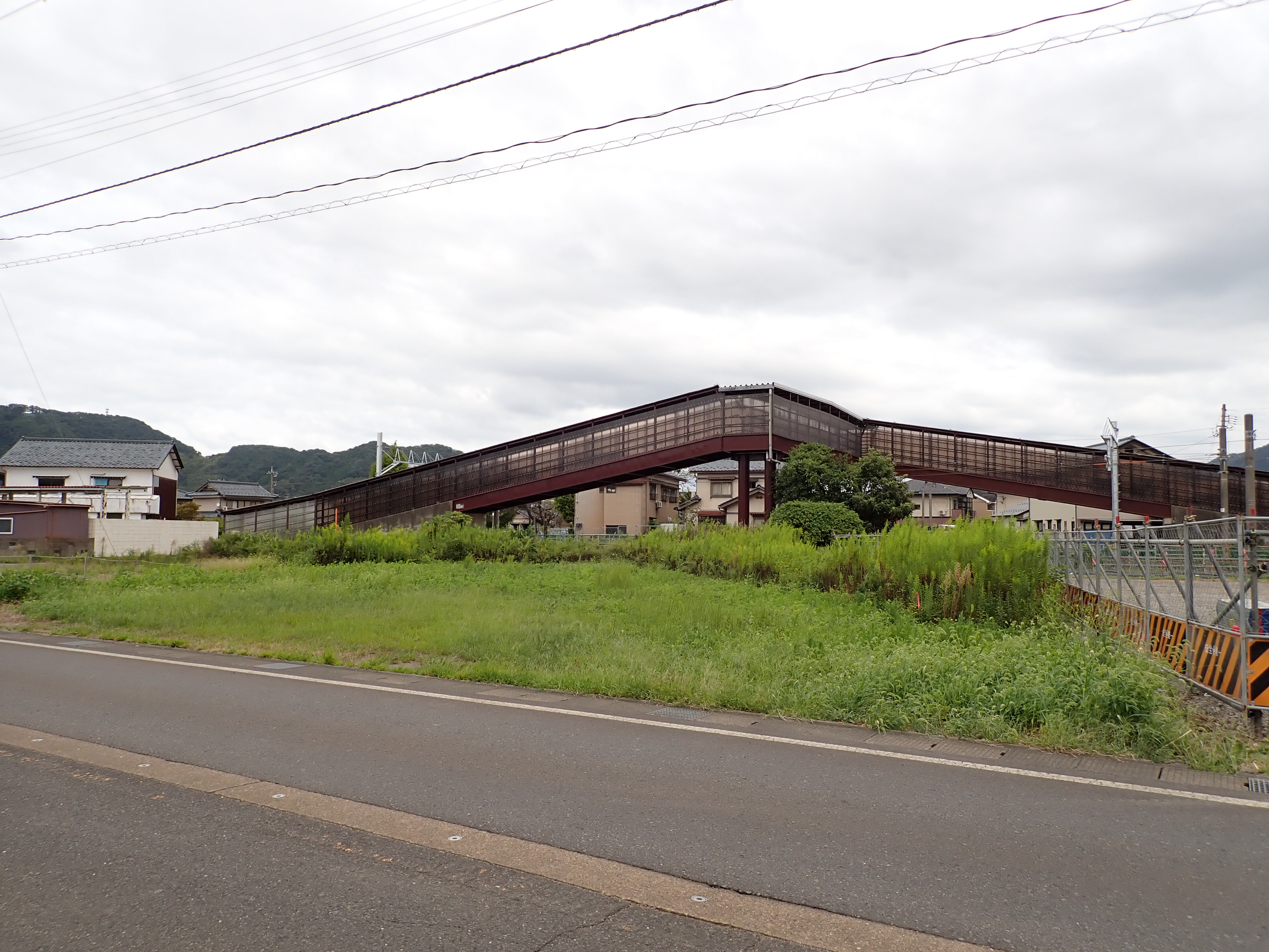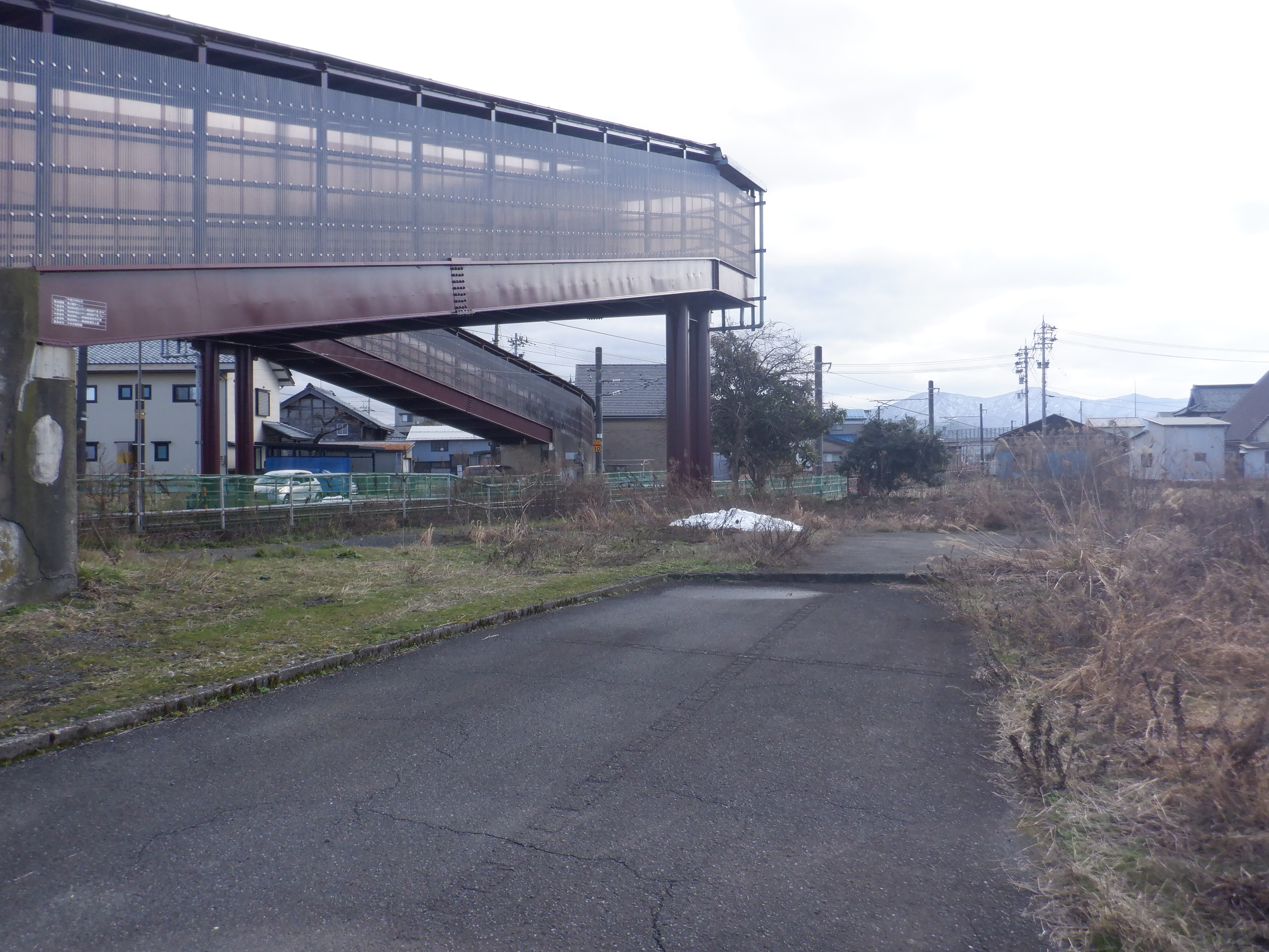 そこからしばらく進むと線路を跨ぐ歩道橋があります。この歩道橋の前後にしきぶ駅が作られることになります。